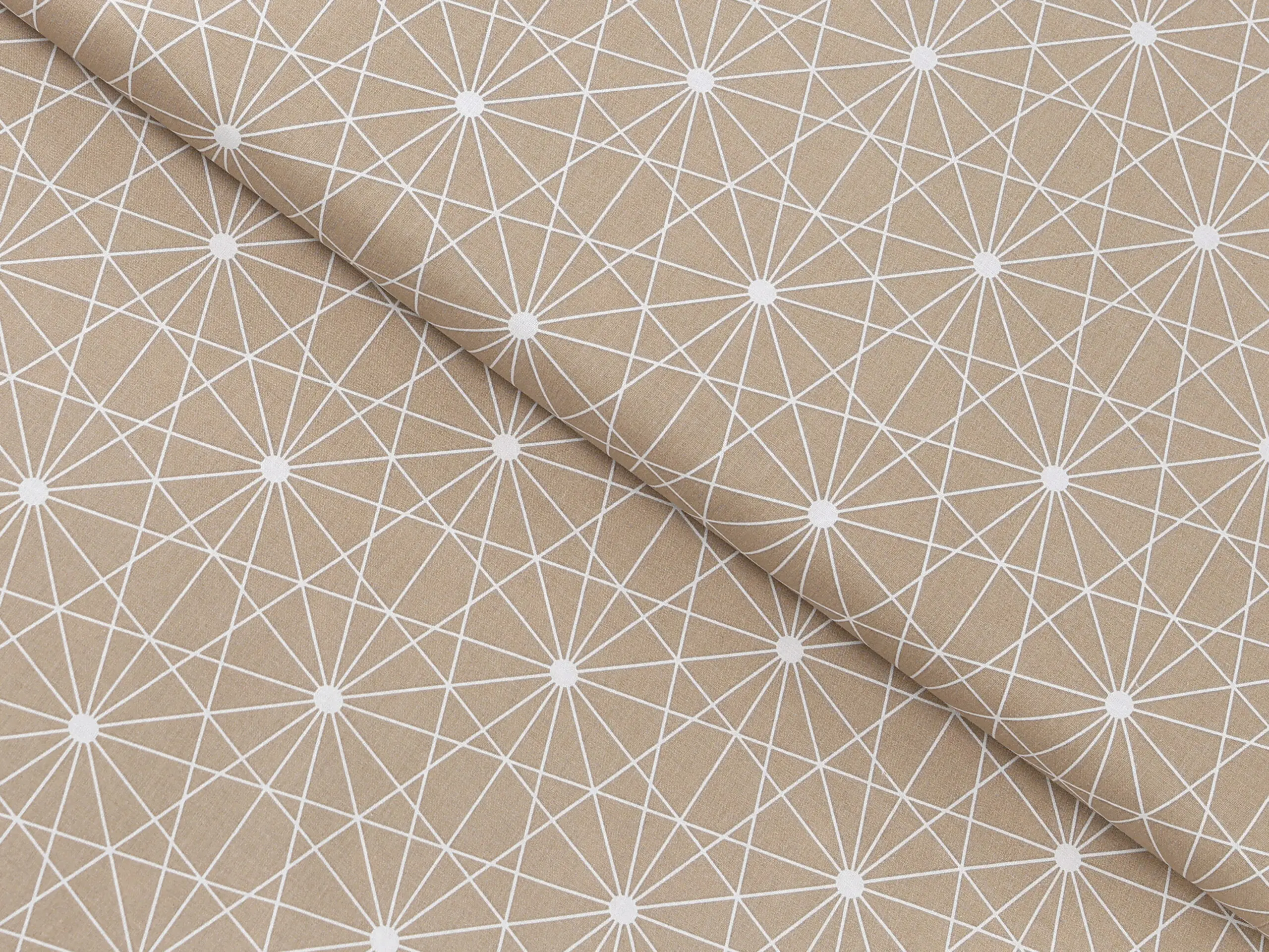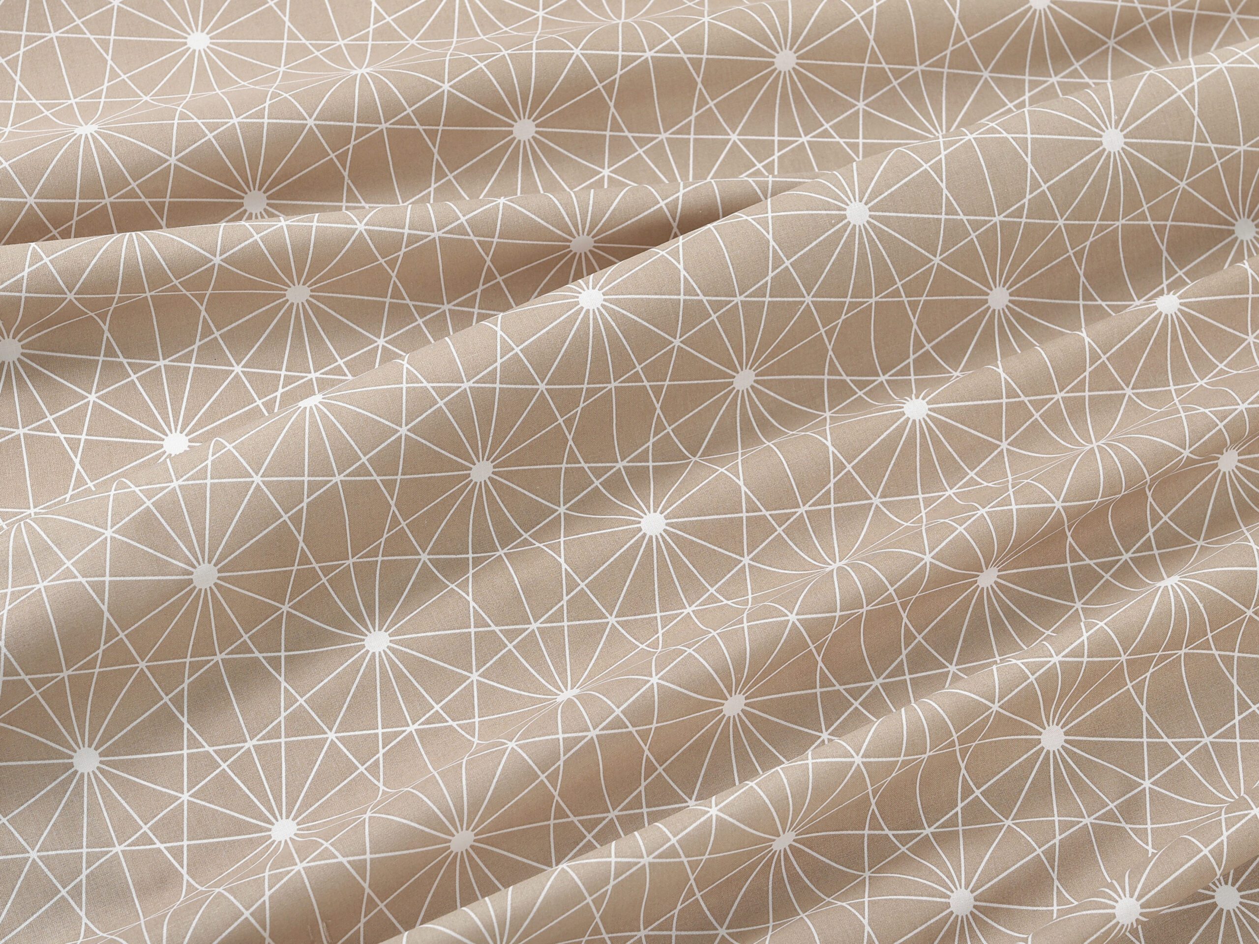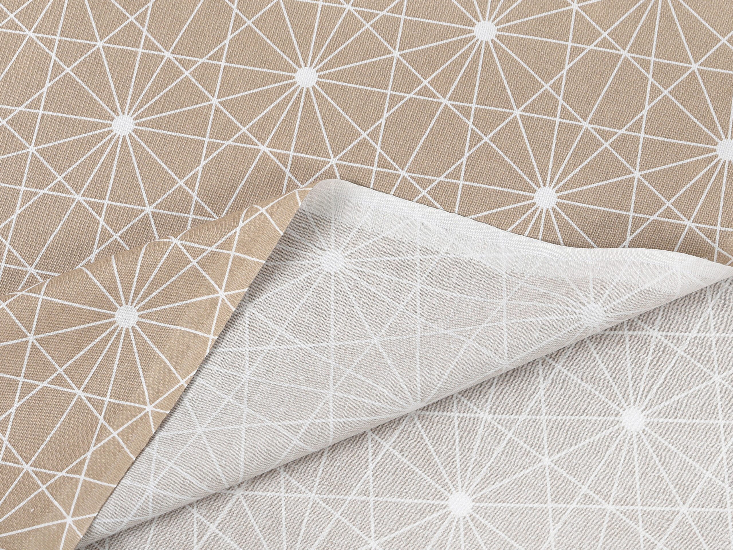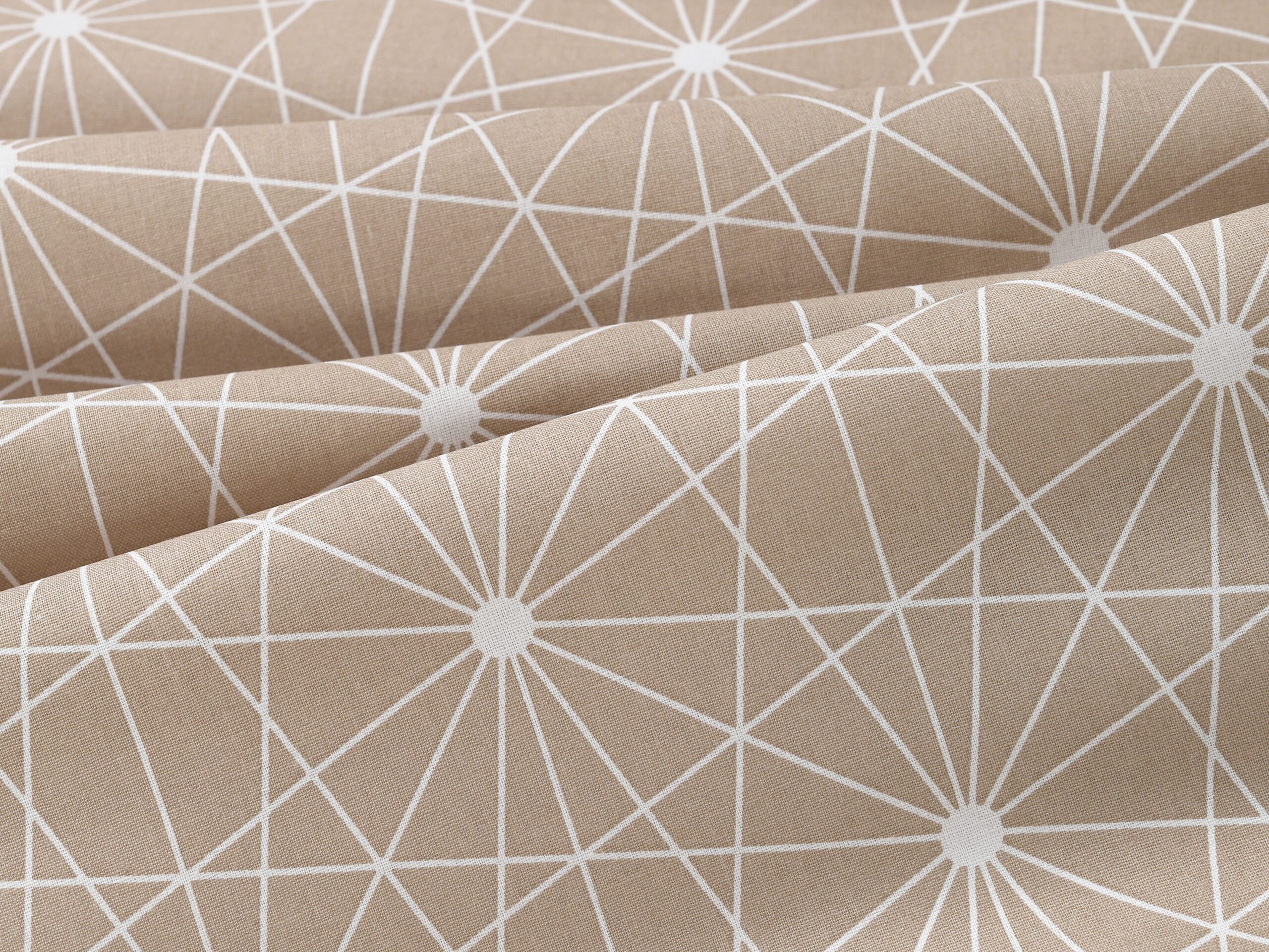 Bavlněná látka bílé čáry na hnědé značky Škodák je vyrobená z hustě tkané 100% bavlny o gramáži 145 g/m².