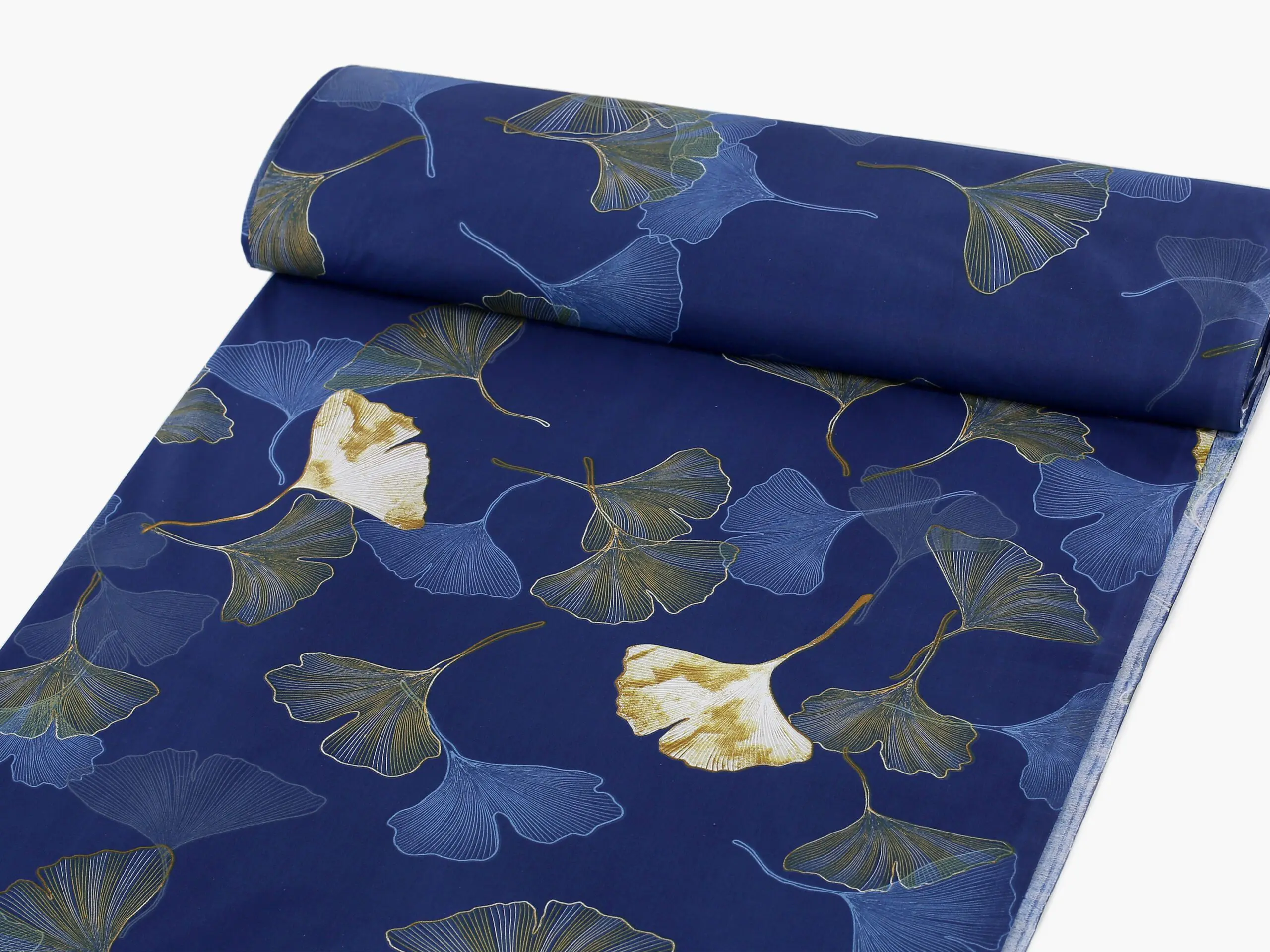 Tato bavlněná látka se vzorem listů ginkgo biloba vytváří moderní a elegantní vzhled.