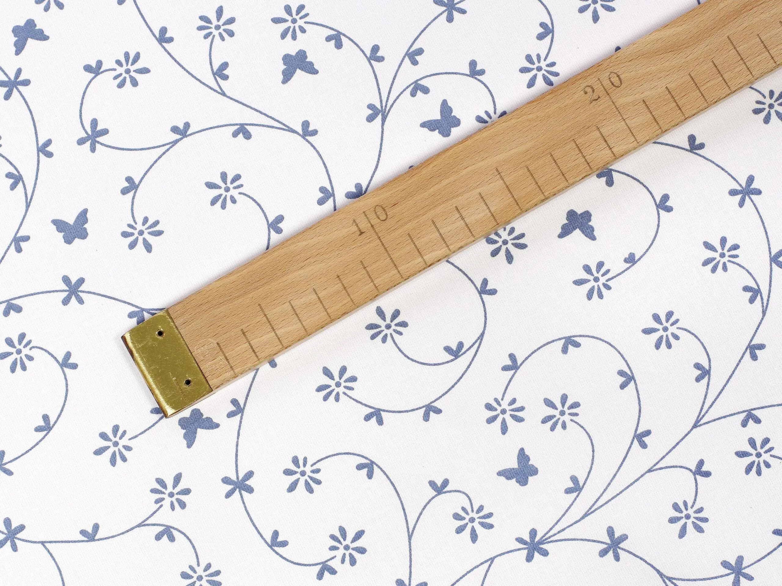 Bavlněná látka modří motýlci značky Škodák je vyrobená z hustě tkané 100% bavlny o gramáži 145 g/m².