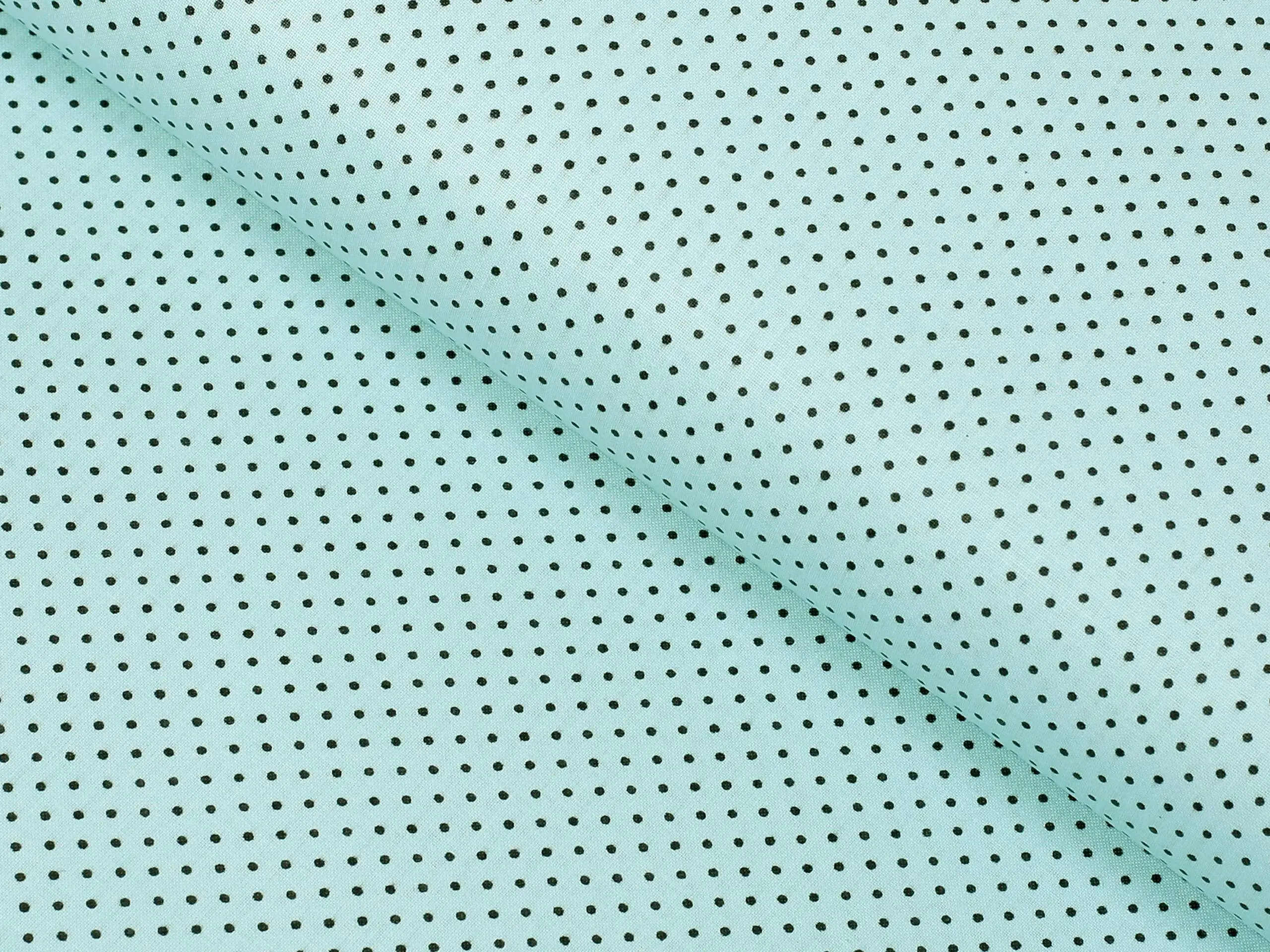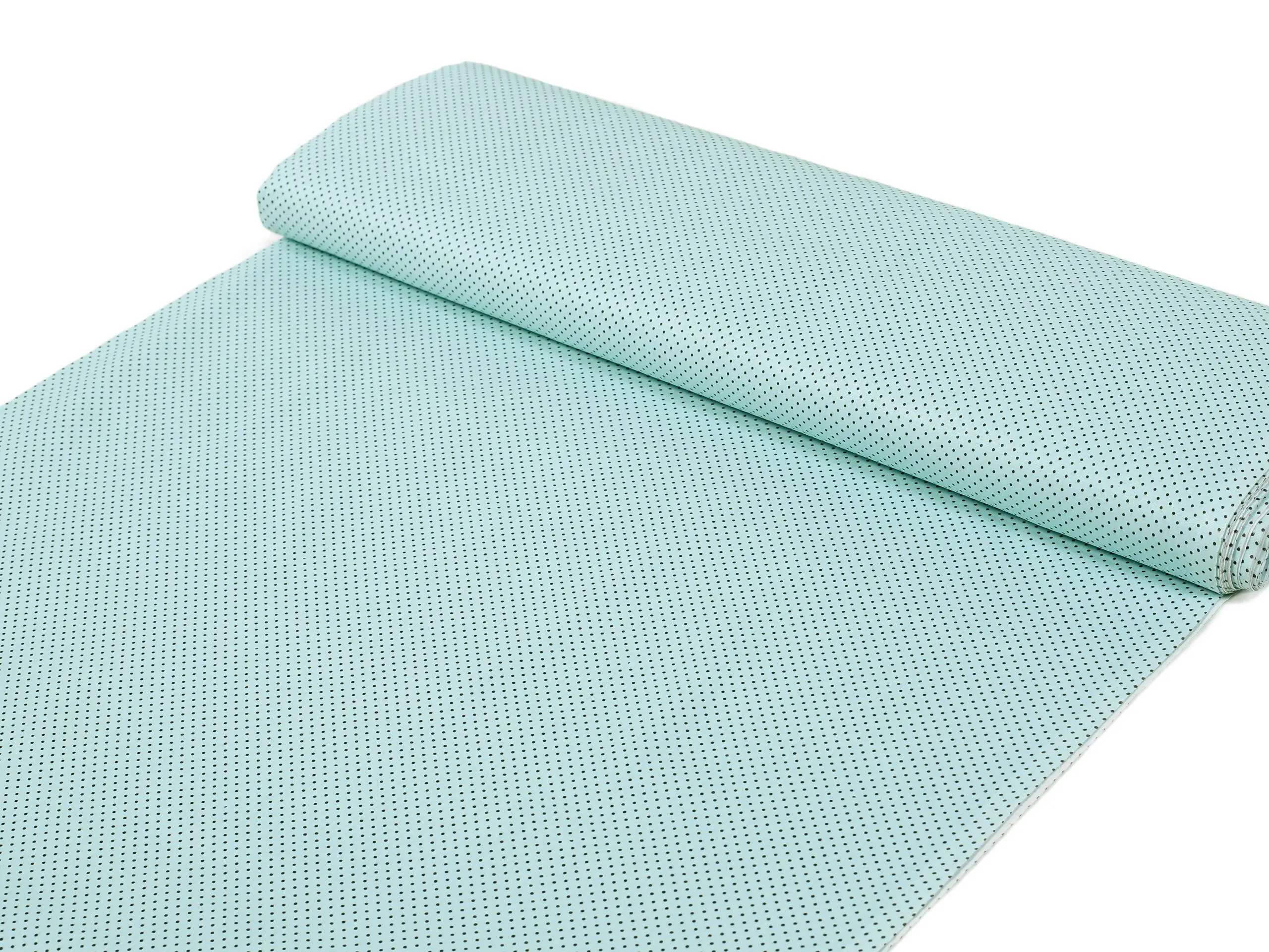 Nabízíme ji v šíři 145 cm a je k dispozici v krásném vzoru puntíků na podkladové mintové barvě.