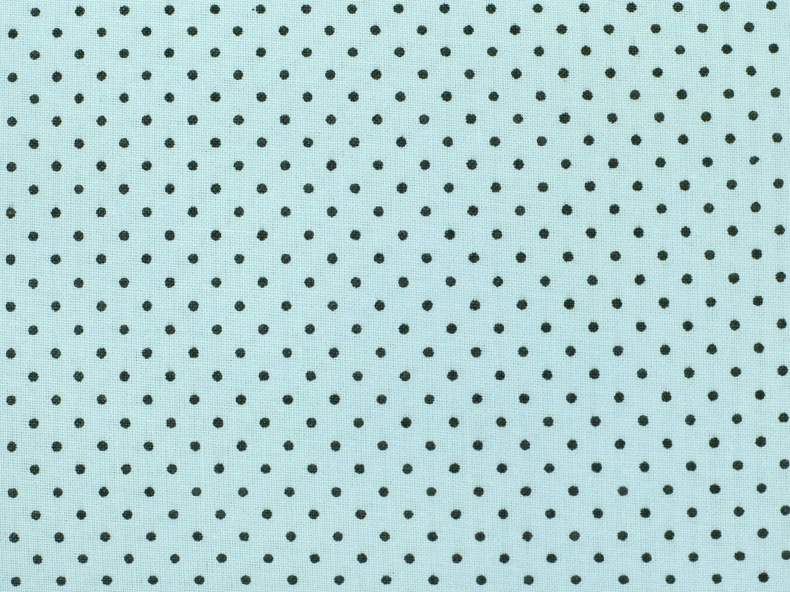 Bavlněná látka šedé puntíky na mintové značky Škodák je vyrobená z hustě tkané 100% bavlny o gramáži 145 g/m².