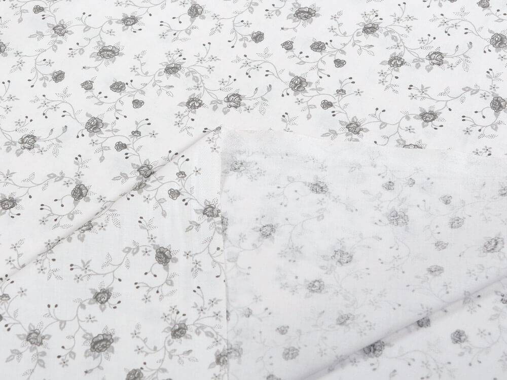 Bavlněná látka – šedé růžičky na bílé – metráž šířka 142 cm