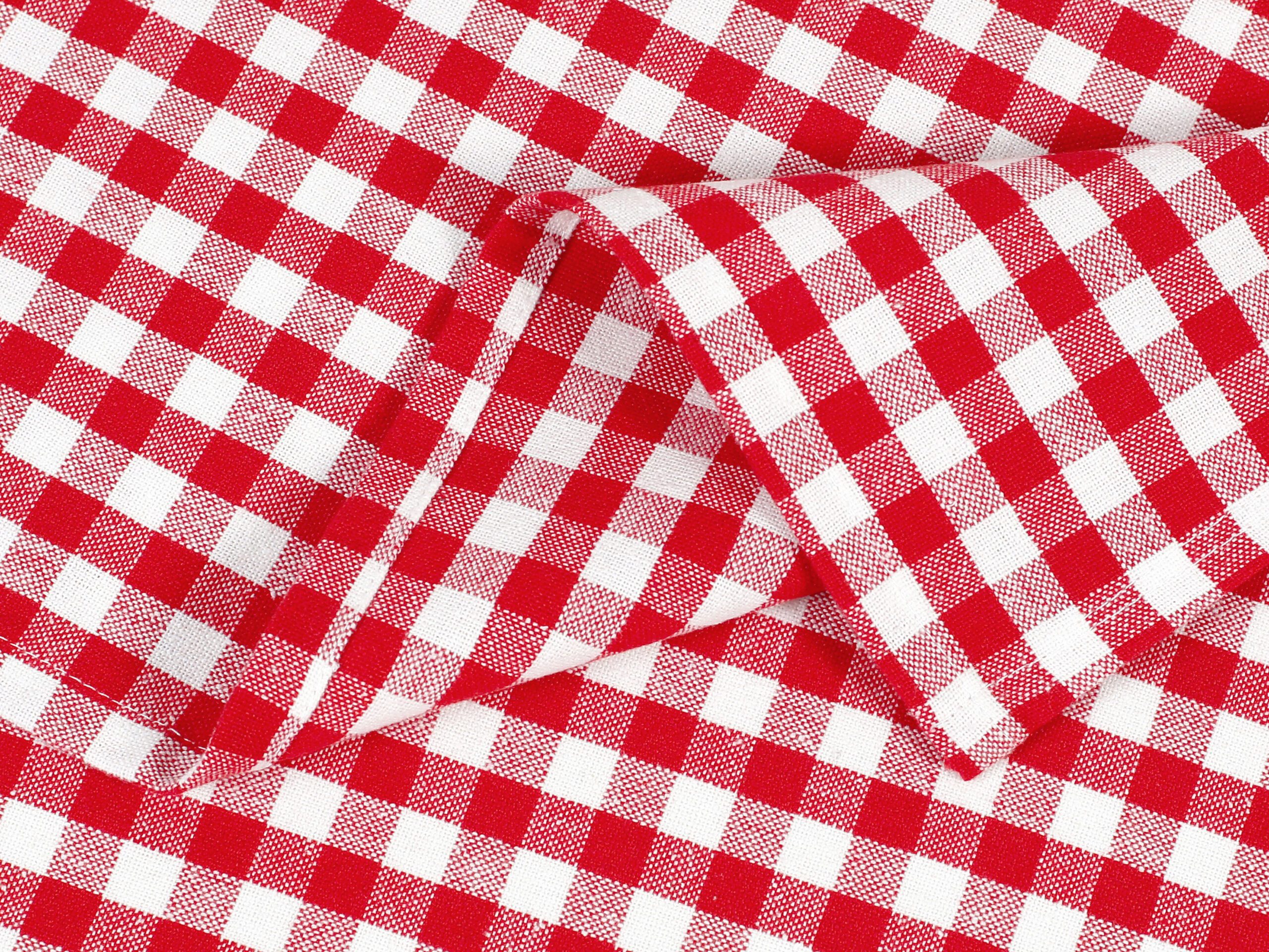 Kvalitní bavlněná utěrka z kanafasu do školky červeno-bílá s malou kostkou o rozměrech 50×70 cm, je ideální volbou do školní kuchyně.