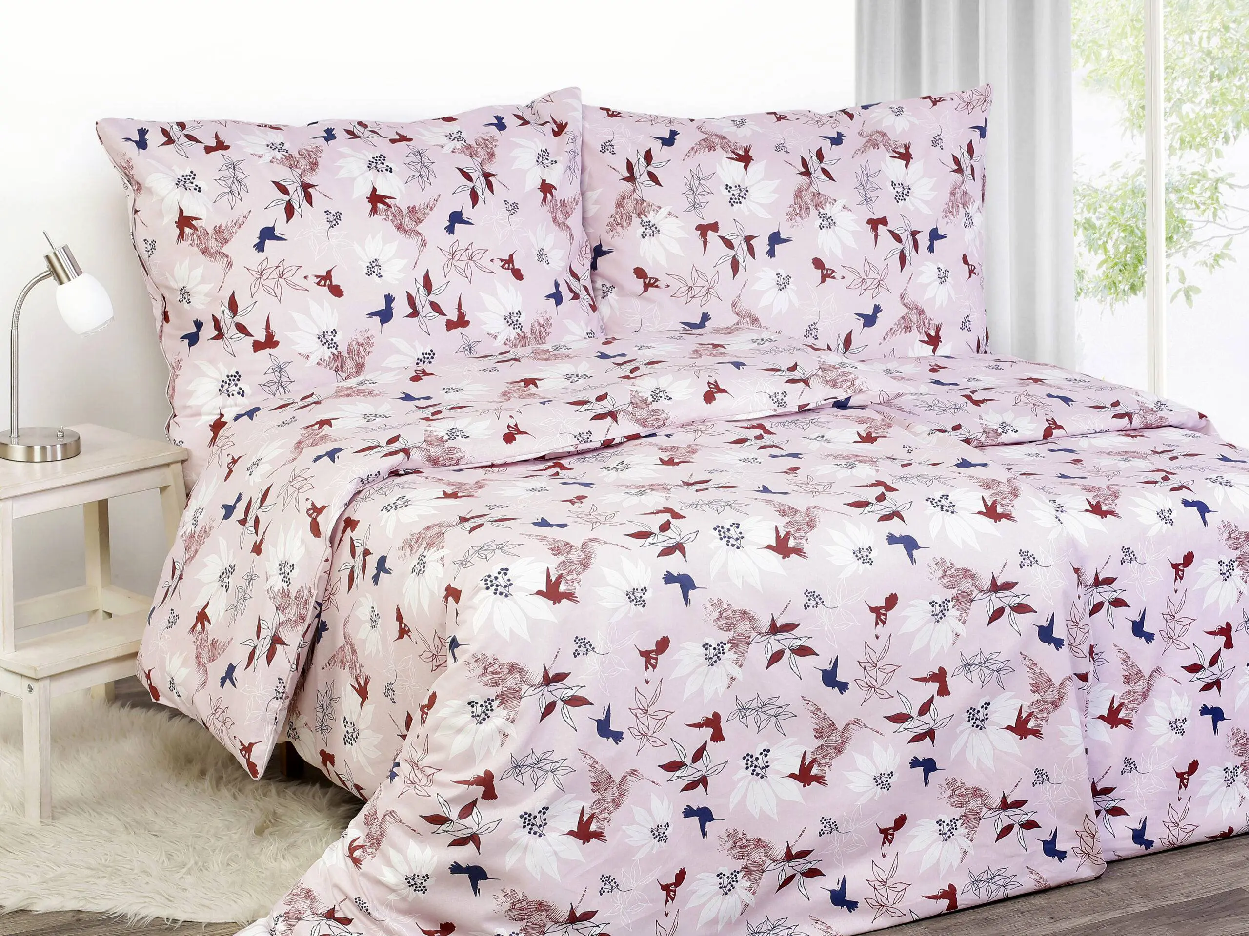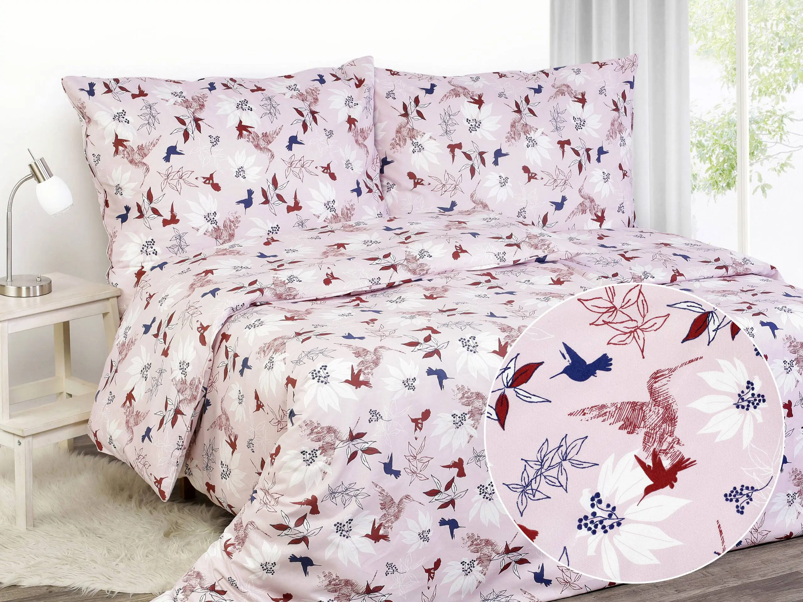 Motiv květů a kolibříků na růžovém pozadí přidává povlečení skvělý šarm.
