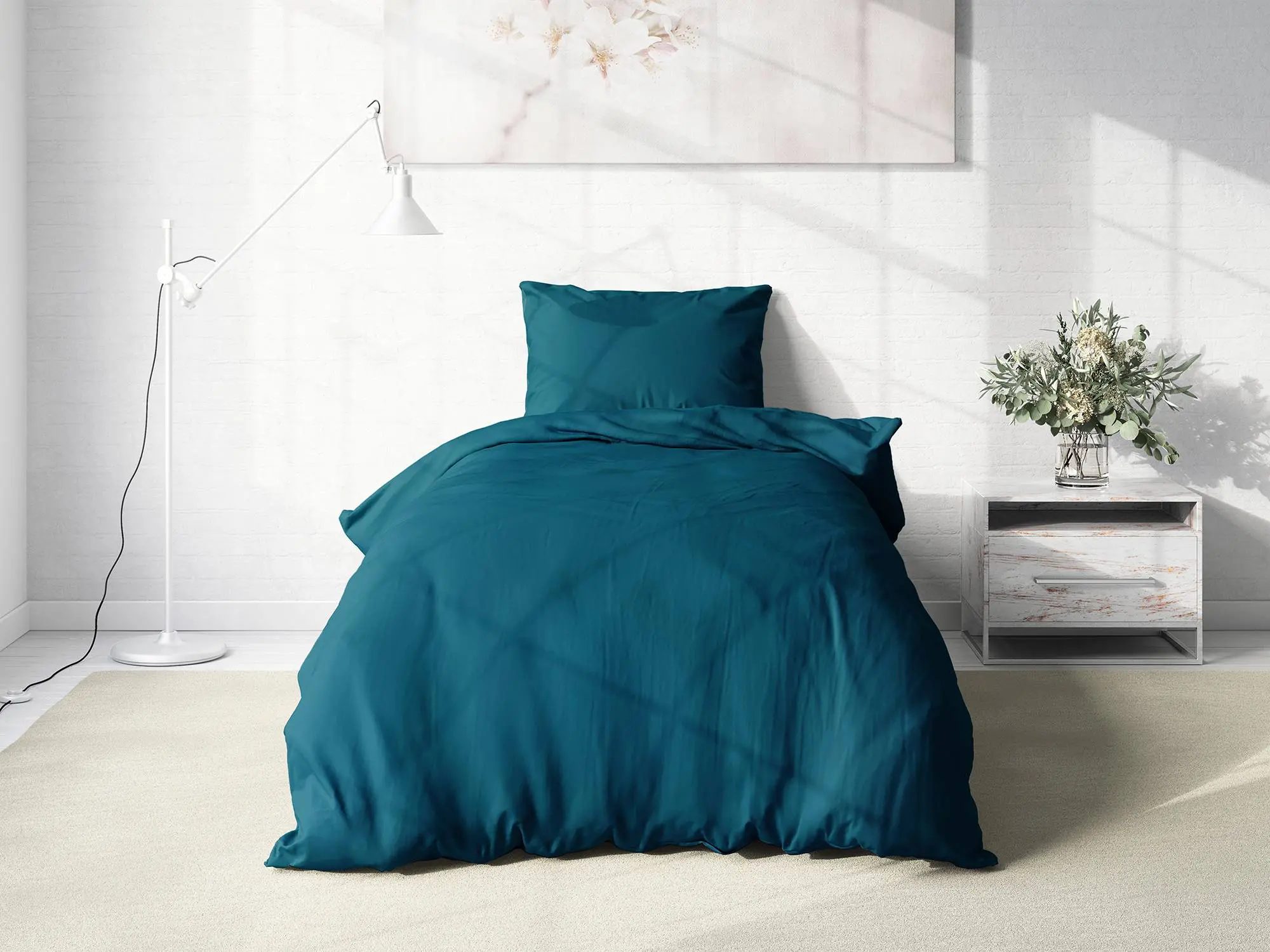 Petrolejová barva přidává povlečení skvělý šarm.