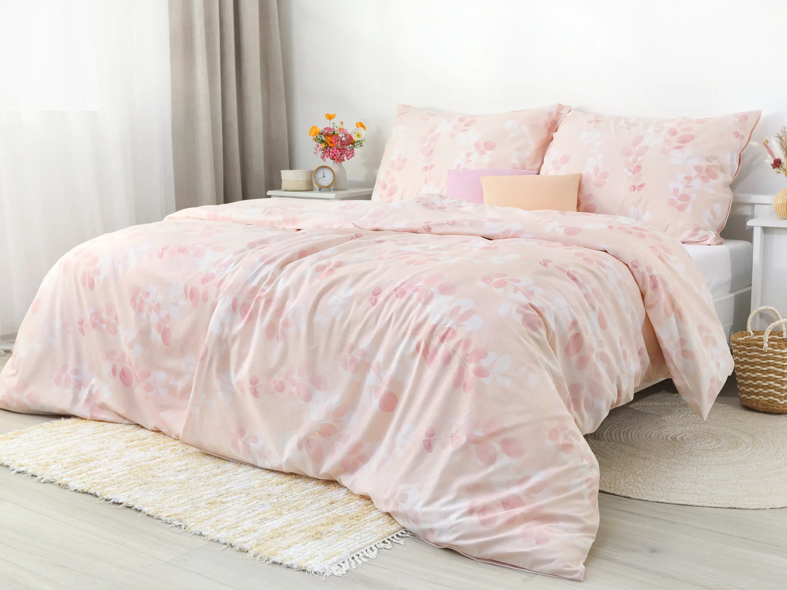 Motiv lístků přidává povlečení skvělý šarm.