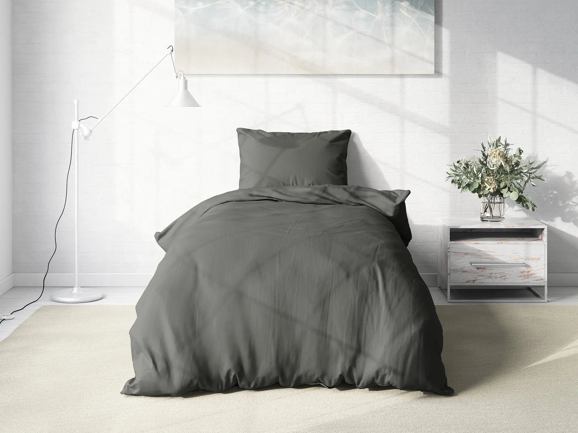Tmavě šedá barva přidává povlečení skvělý šarm.