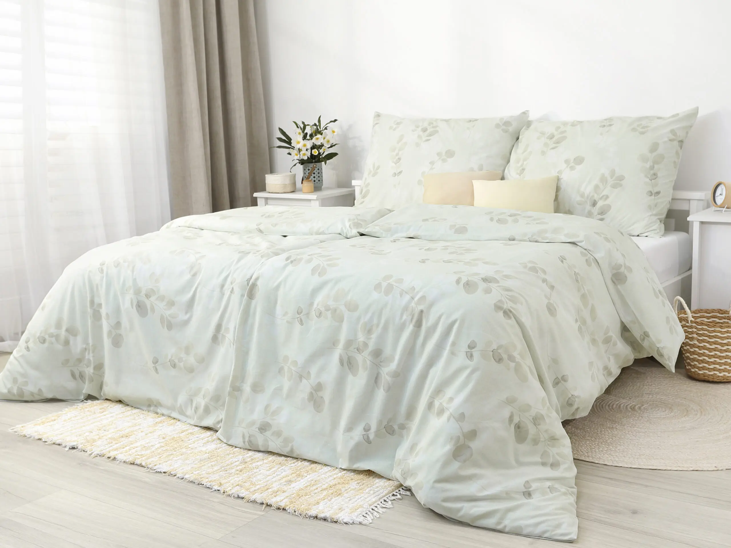 Motiv lístků přidává povlečení skvělý šarm.