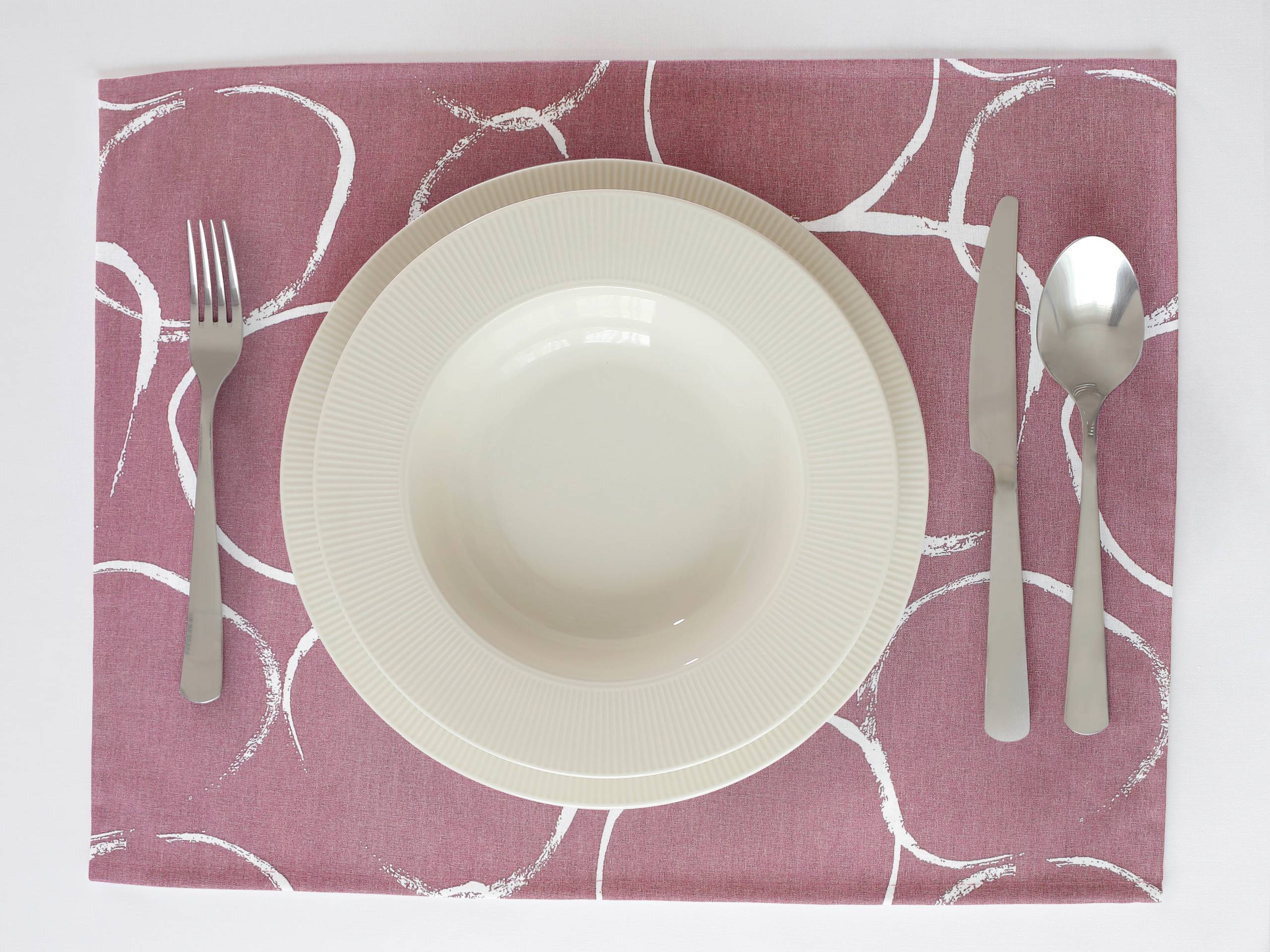 Toto bavlněné prostírání s bílými koly na vínové je skvělou volbou pro každý den nebo pro speciální chvíle. Přidejte ho do svého jídelního setu a ozdobte si s ním váš jídelní stůl.