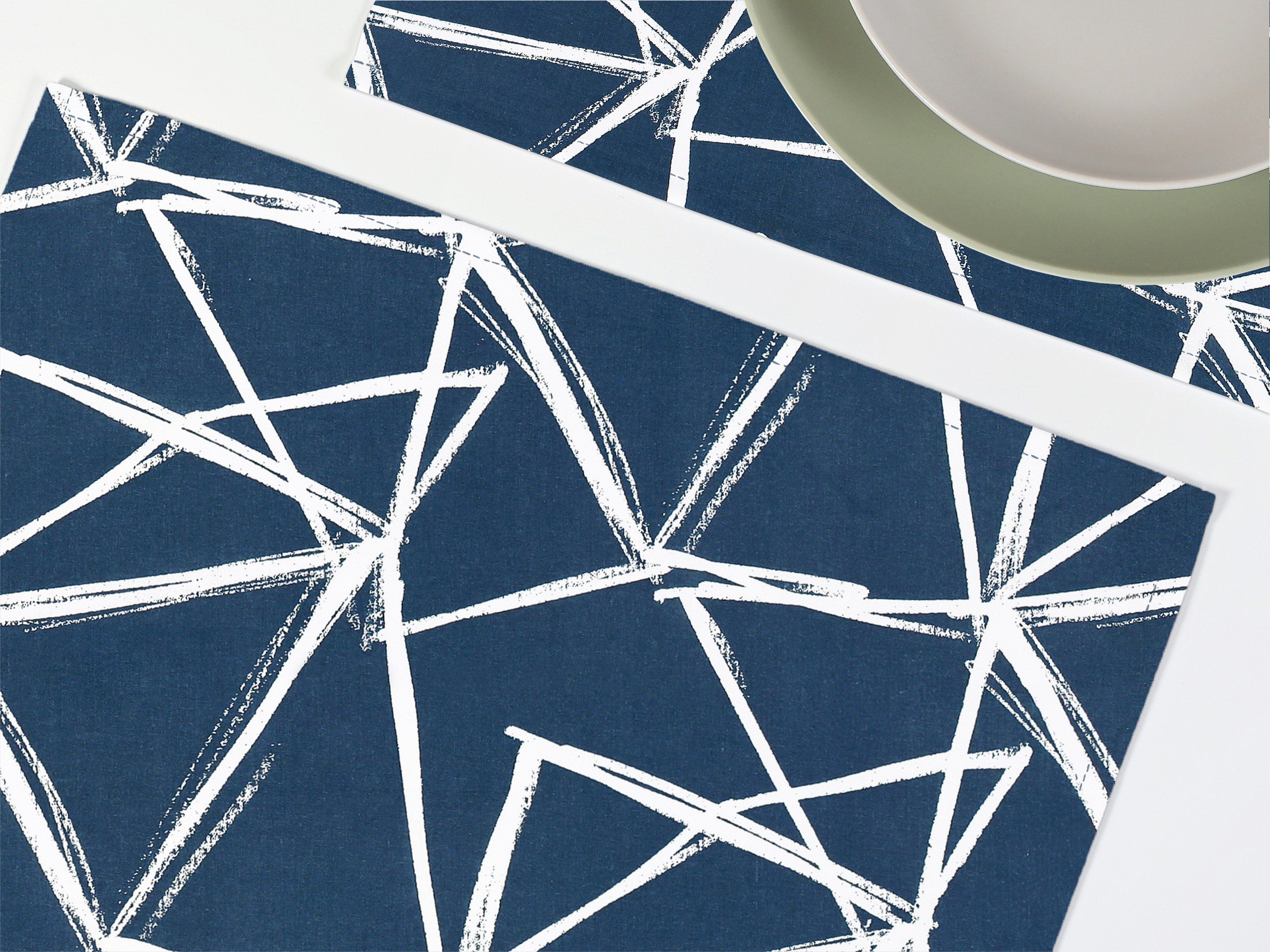 Toto bavlněné prostírání s trojúhelníky na modré je skvělou volbou pro každý den nebo pro speciální chvíle. Přidejte ho do svého jídelního setu a ozdobte si s ním váš jídelní stůl.