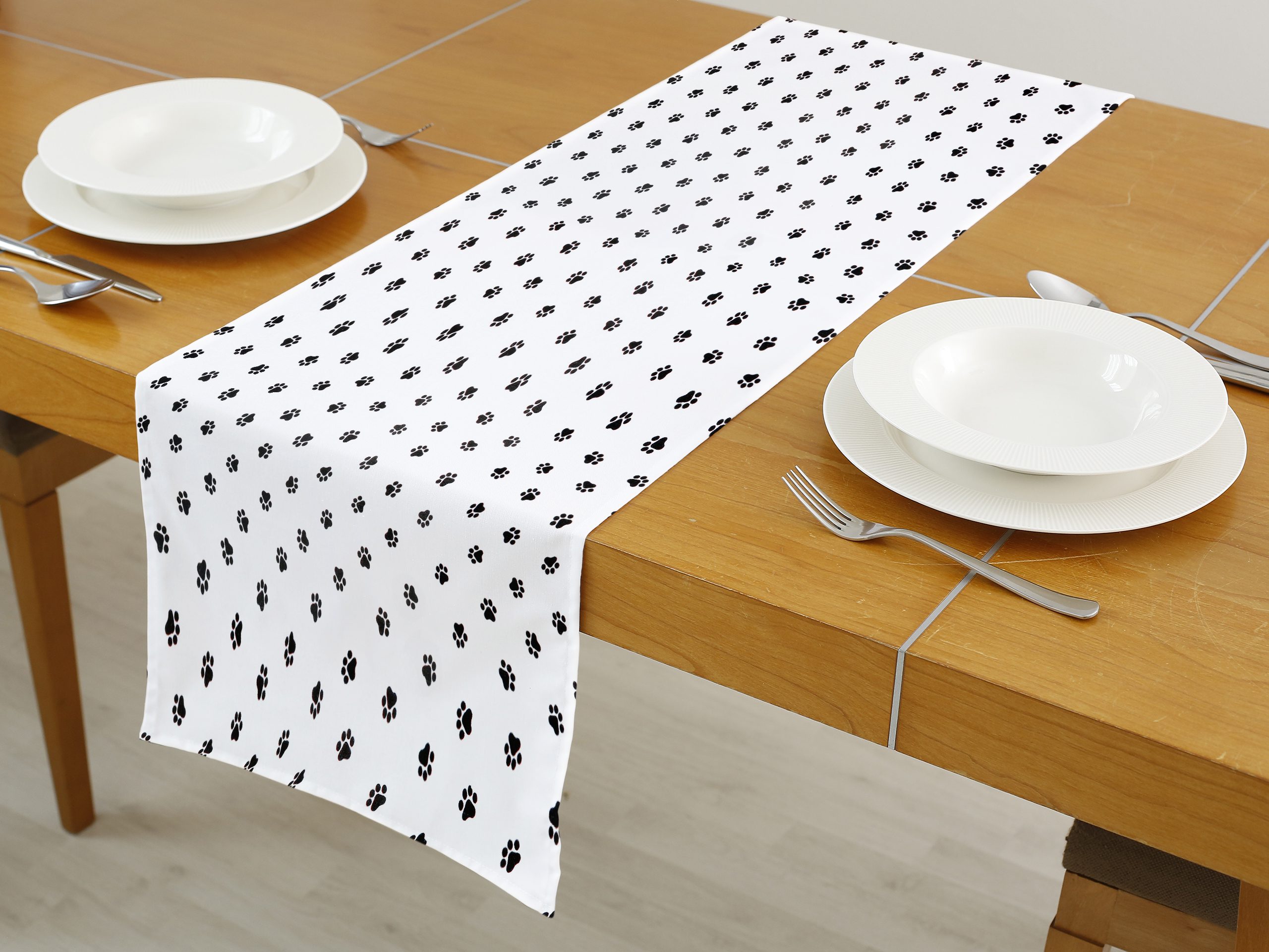 Bavlněný běhoun se vzorem tlapek dodá dětskému stolu šmrnc a je zároveň skvělým doplňkem pro hravý domov.