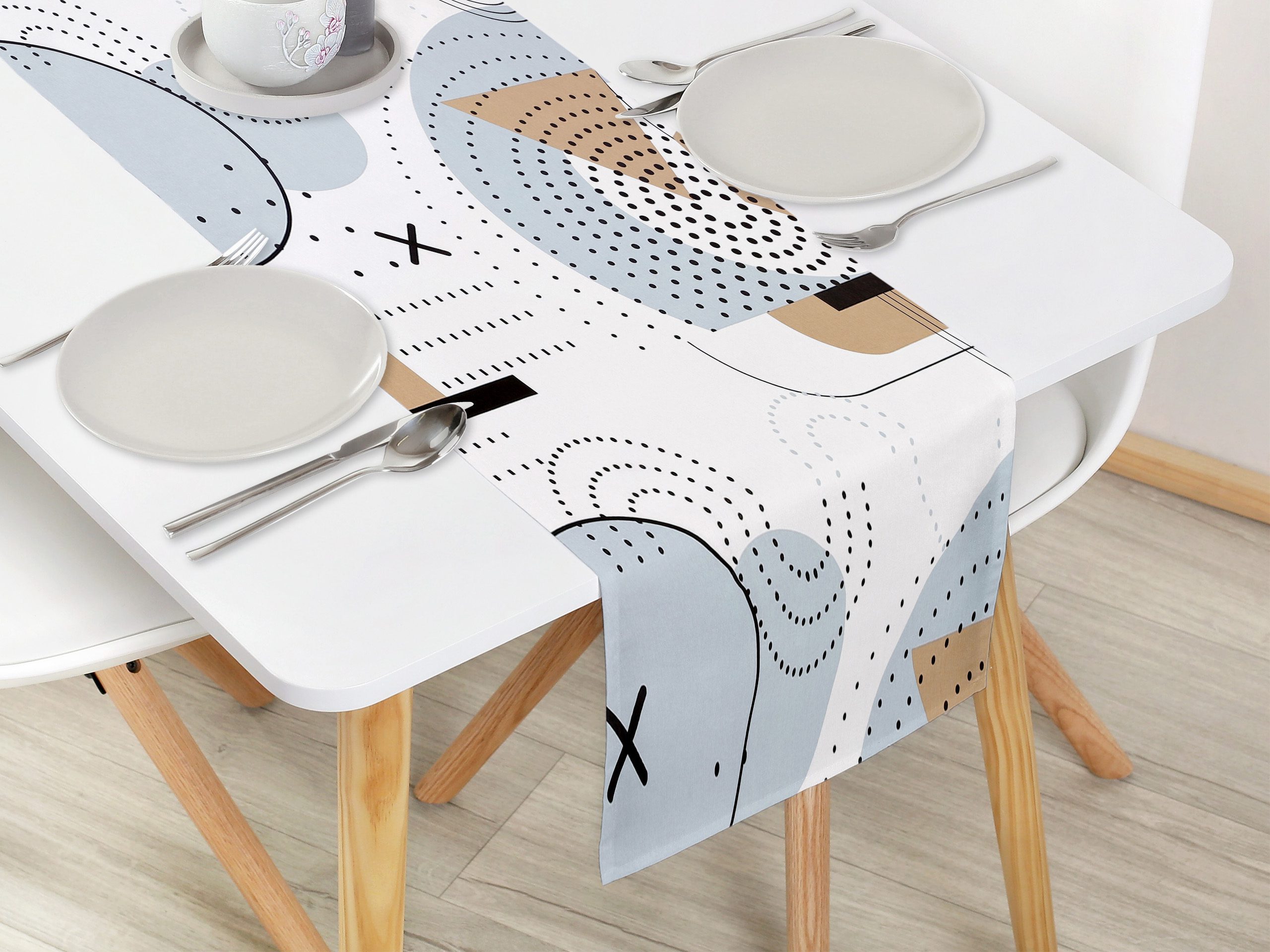 Bavlněný běhoun se vzorem šedých kruhů dodá vašemu stolu šmrnc a je zároveň skvělým doplňkem pro každou příležitost. Skvělá investice pro váš jídelní stůl.