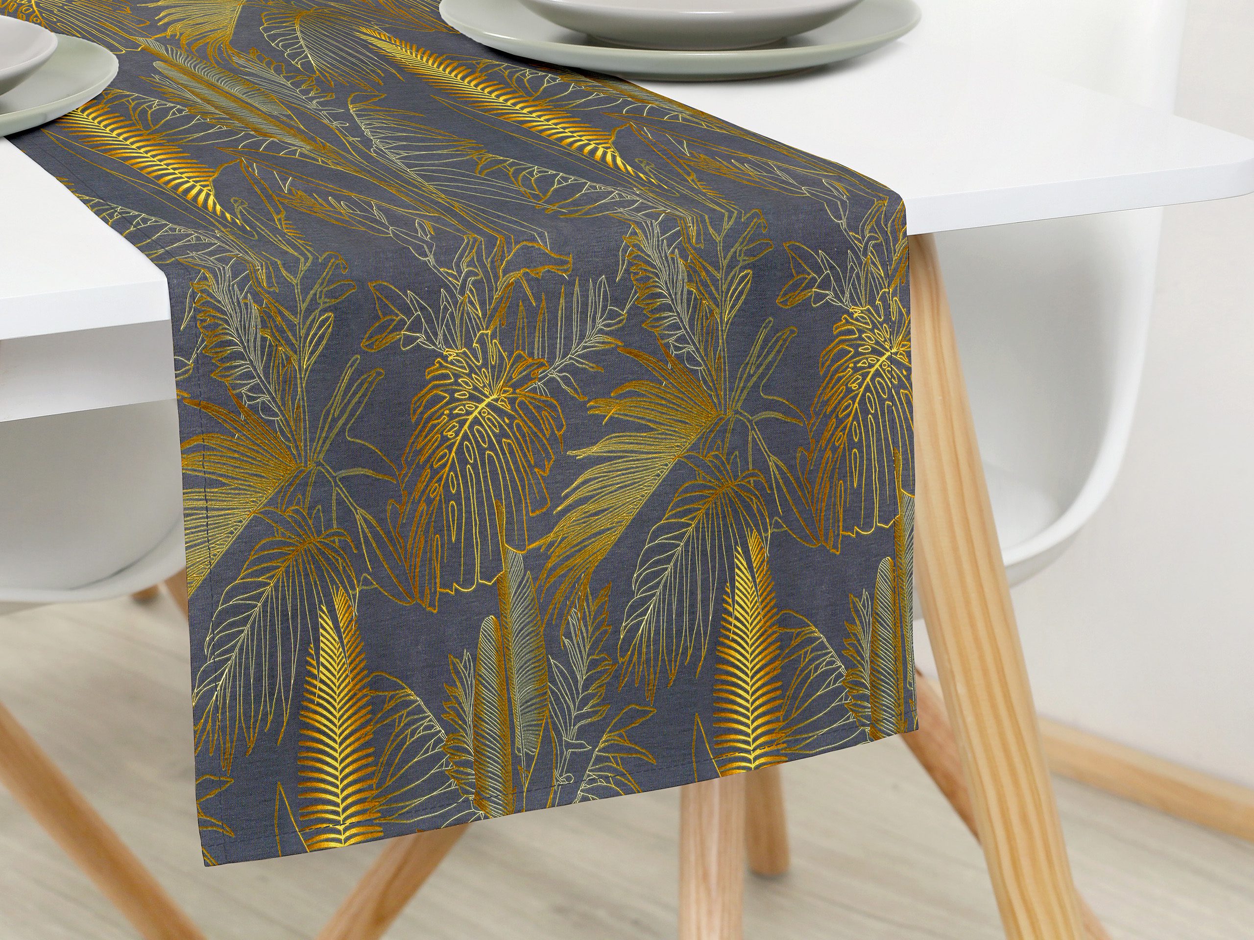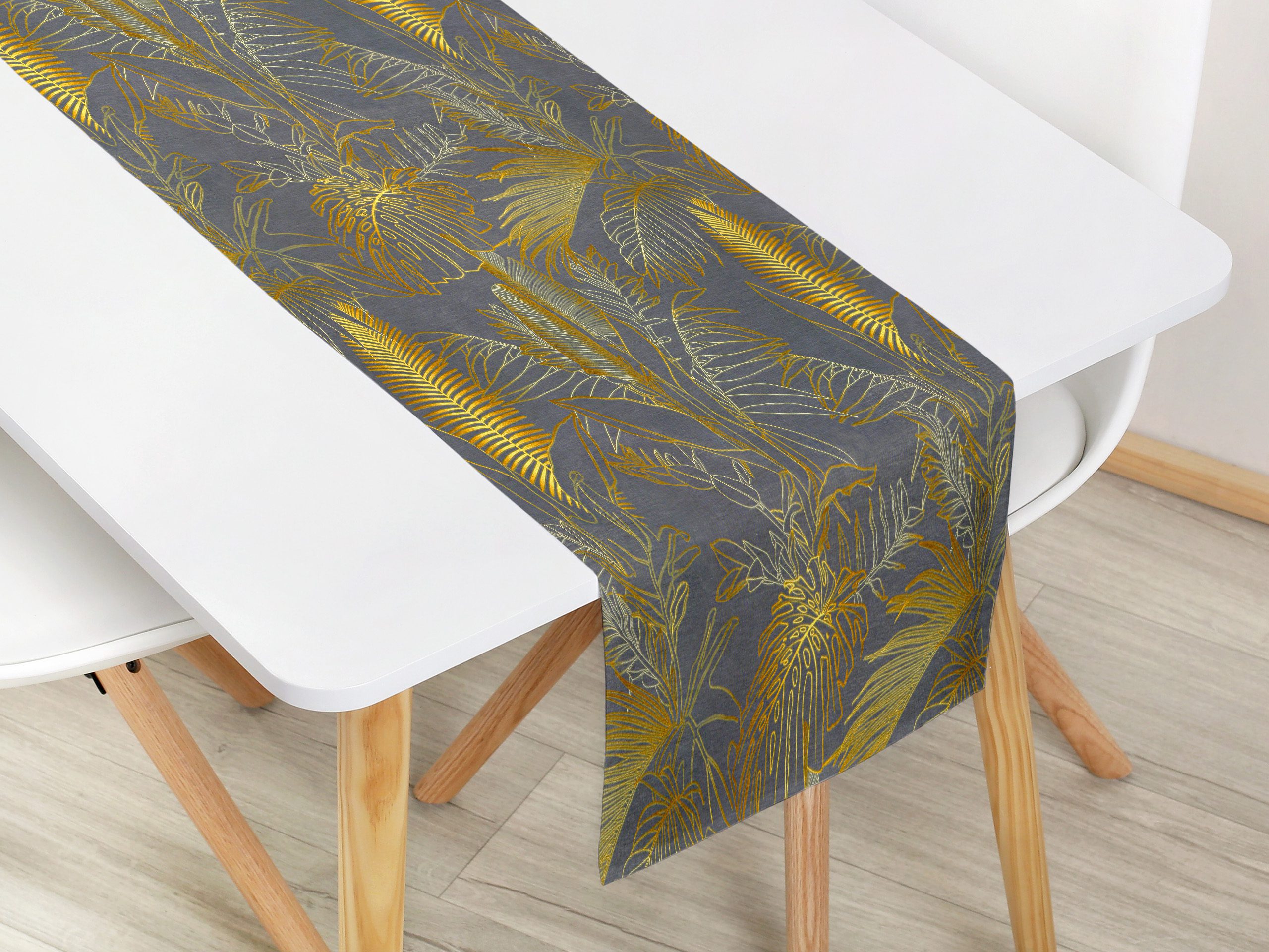 Bavlněný běhoun se vzorem zlatých listů na šedé barvě dodá vašemu stolu šmrnc a je zároveň skvělým doplňkem pro každou příležitost. Skvělá investice pro váš jídelní stůl.