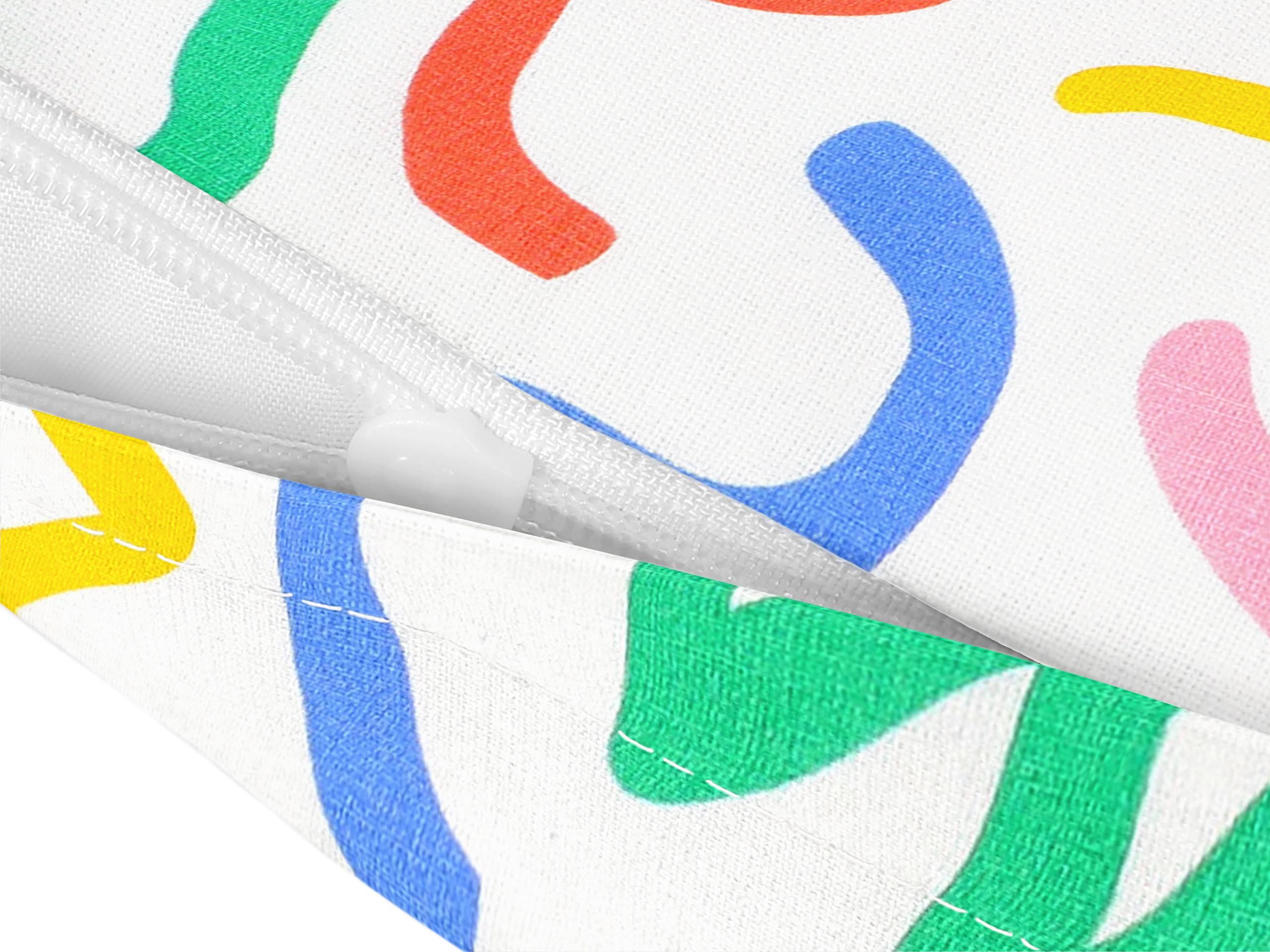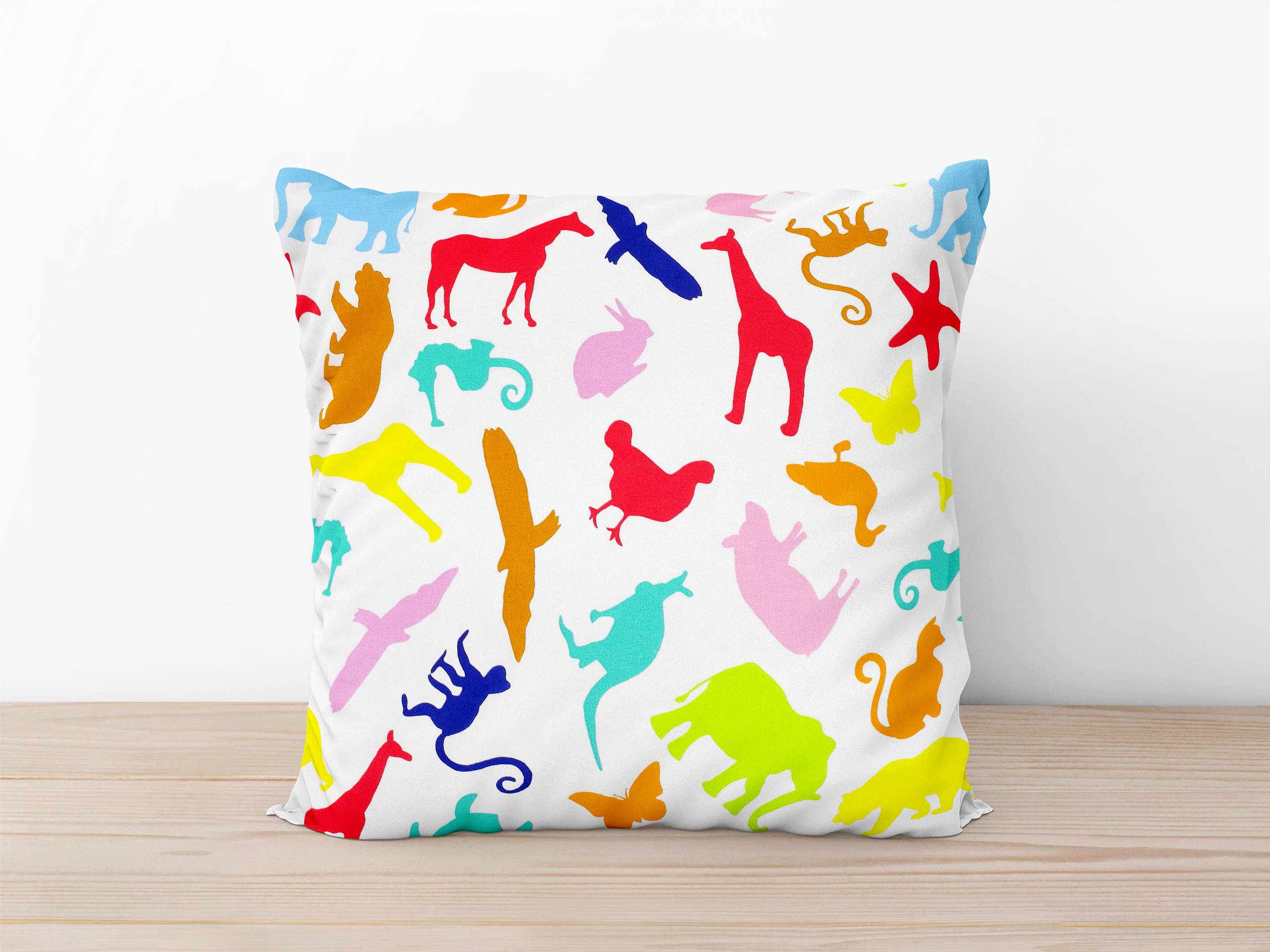 Váš polštář bude zářit díky vzoru s barevnými zvířátky. Povlak má praktické zapínání na zip, který je elegantně skrytý pod látkou.
