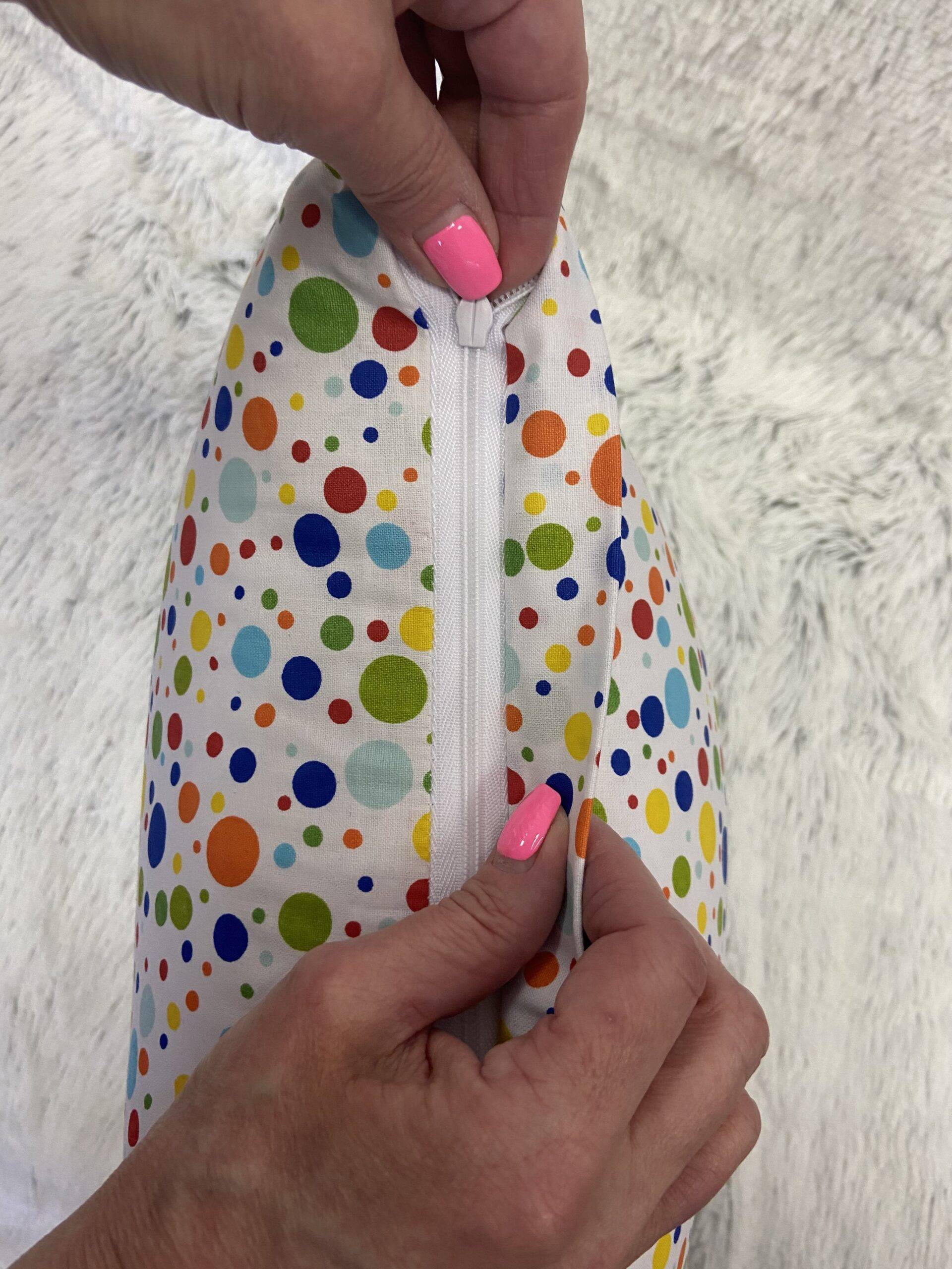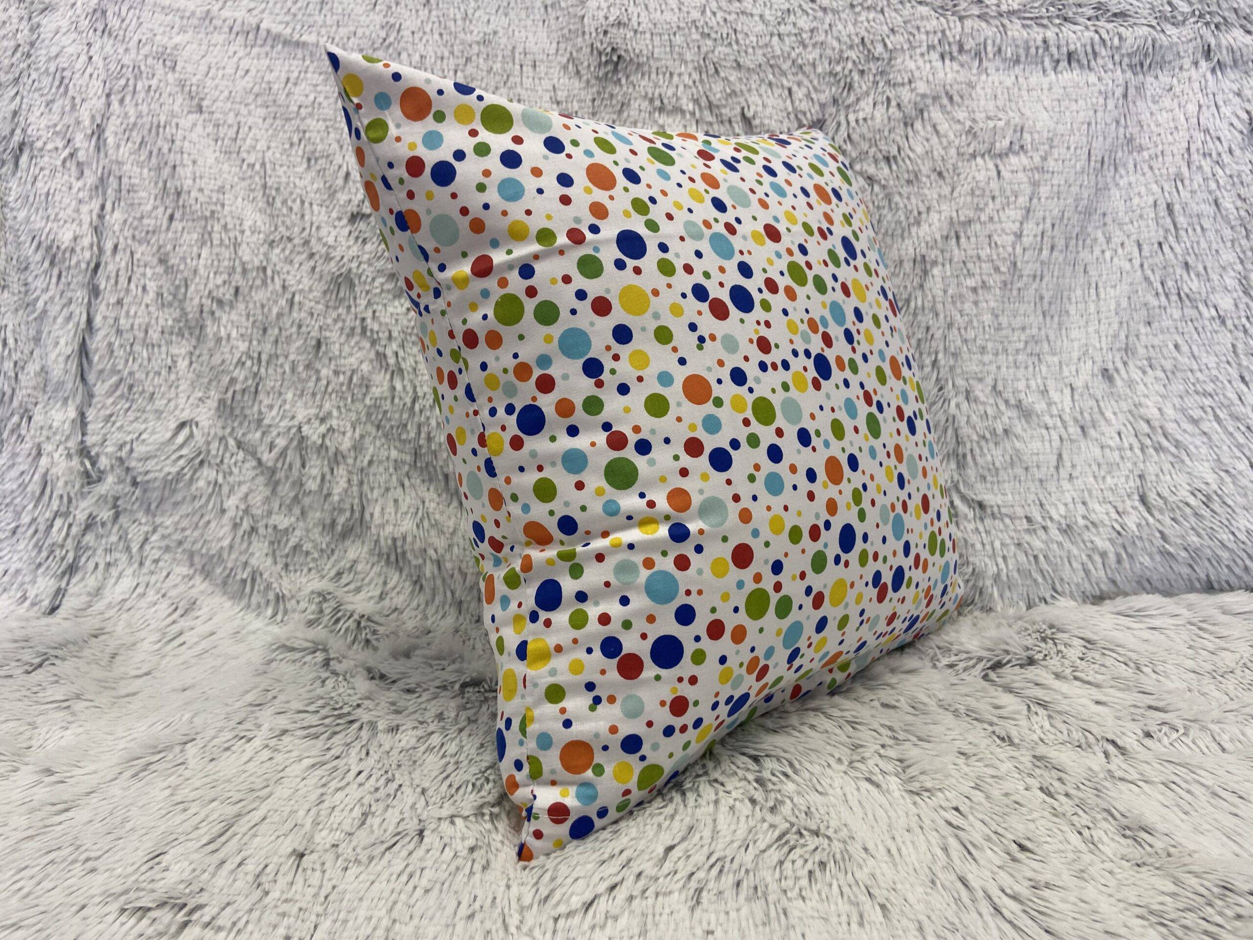 Pro maximální pohodlí vám nabízíme také výplňové polštáře, které jsou ideálním doplňkem k našemu bavlněnému povlaku. Tento povlak má krásný motiv barevných puntíků na bílé podkladové barvě.