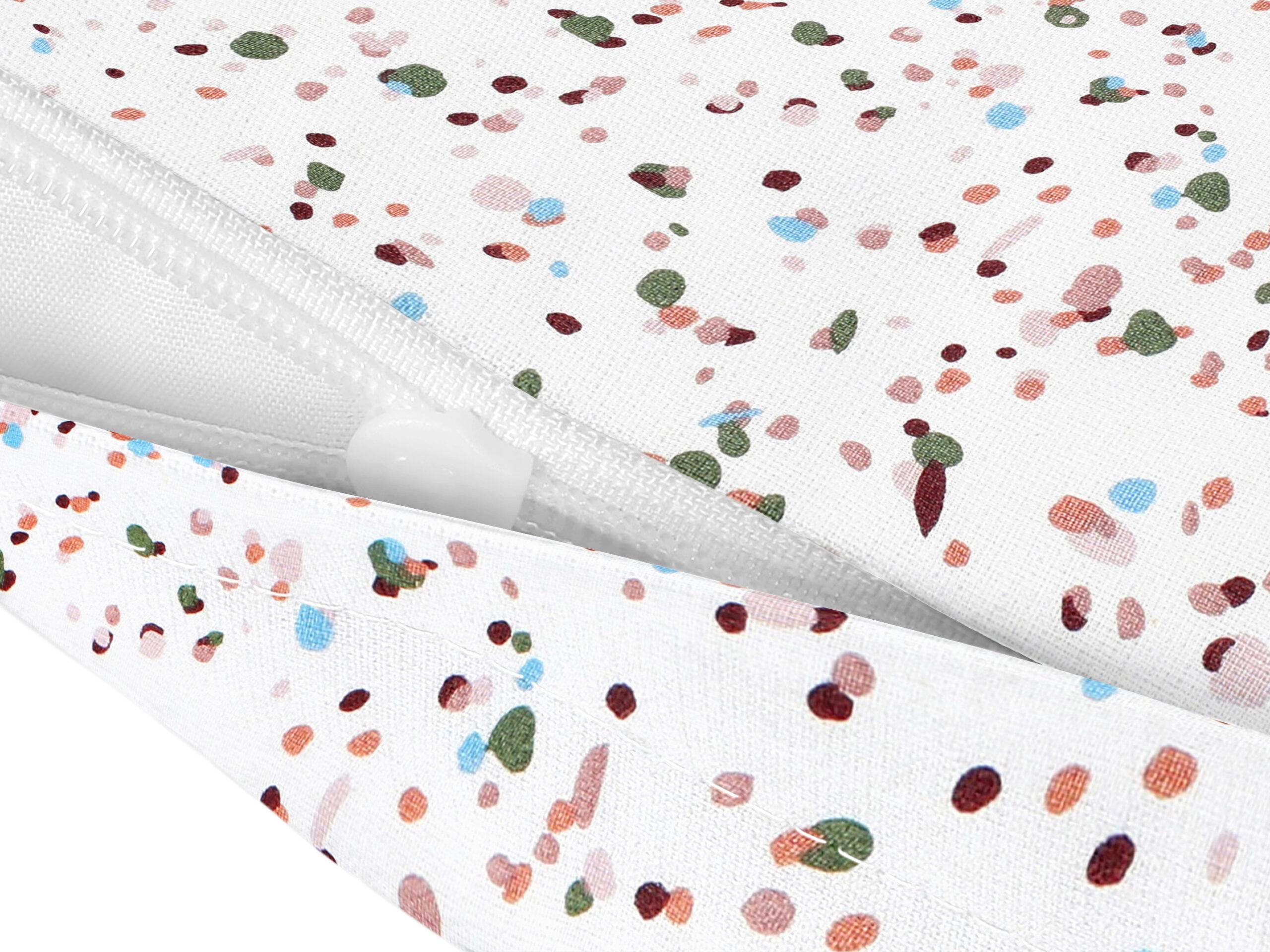 Váš polštář bude přímo zářit díky vzoru s barevným zrní na bílé. Povlak má praktické zapínání na zip, který je elegantně skrytý pod látkou.