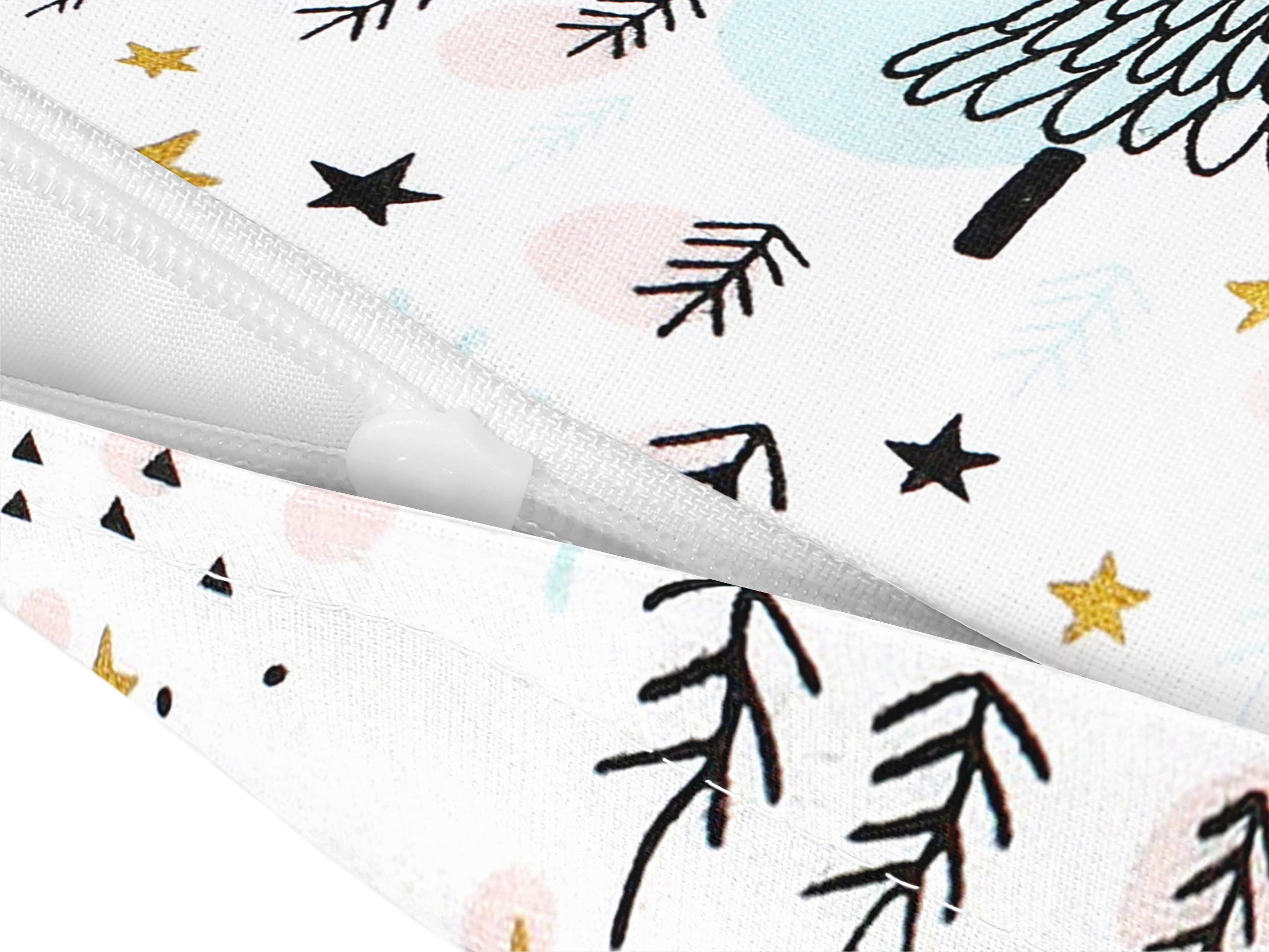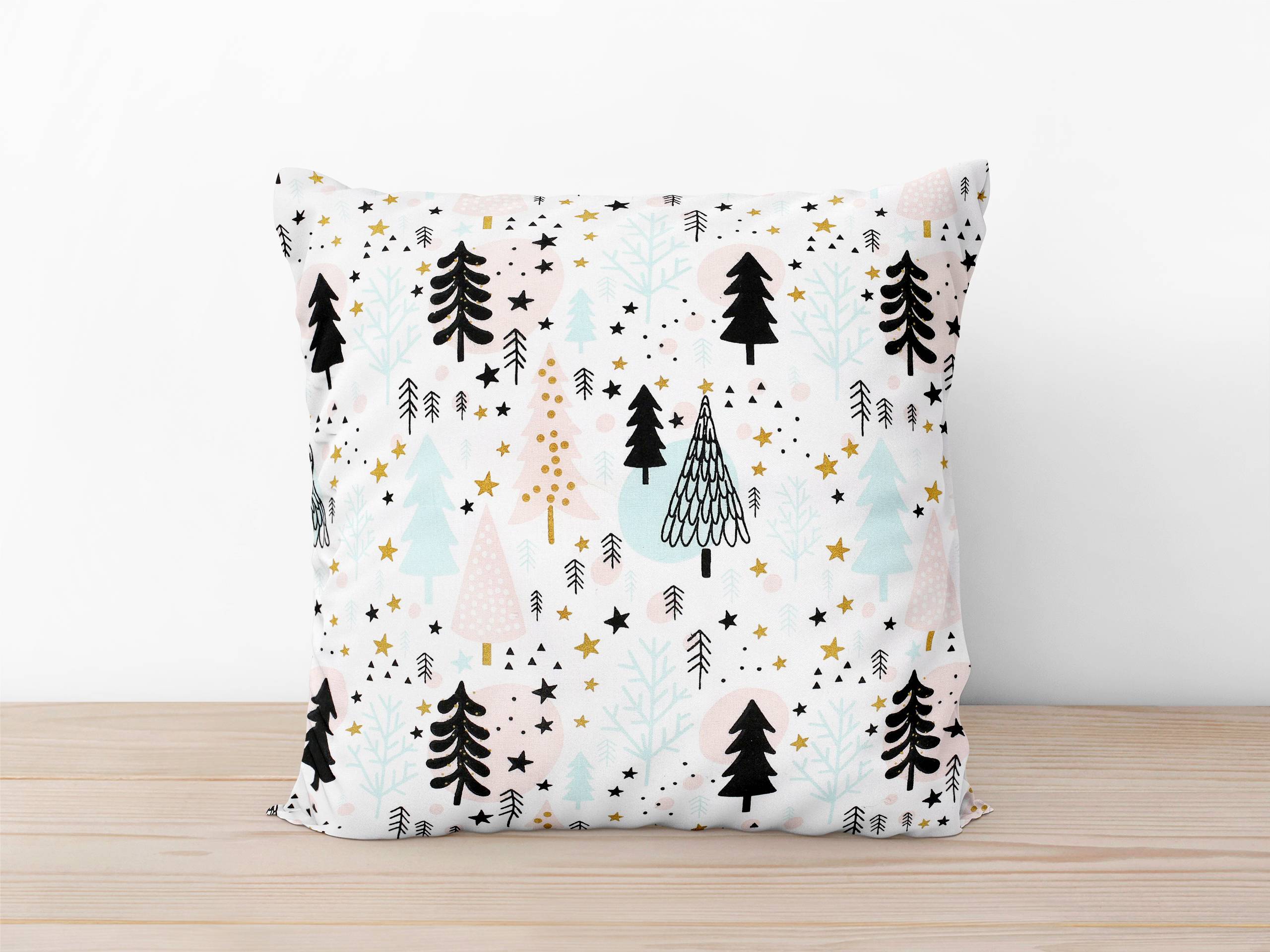Váš polštář bude zářit díky vzoru s pastelovými vánočními stromečky. Povlak má praktické zapínání na zip, který je elegantně skrytý pod látkou.