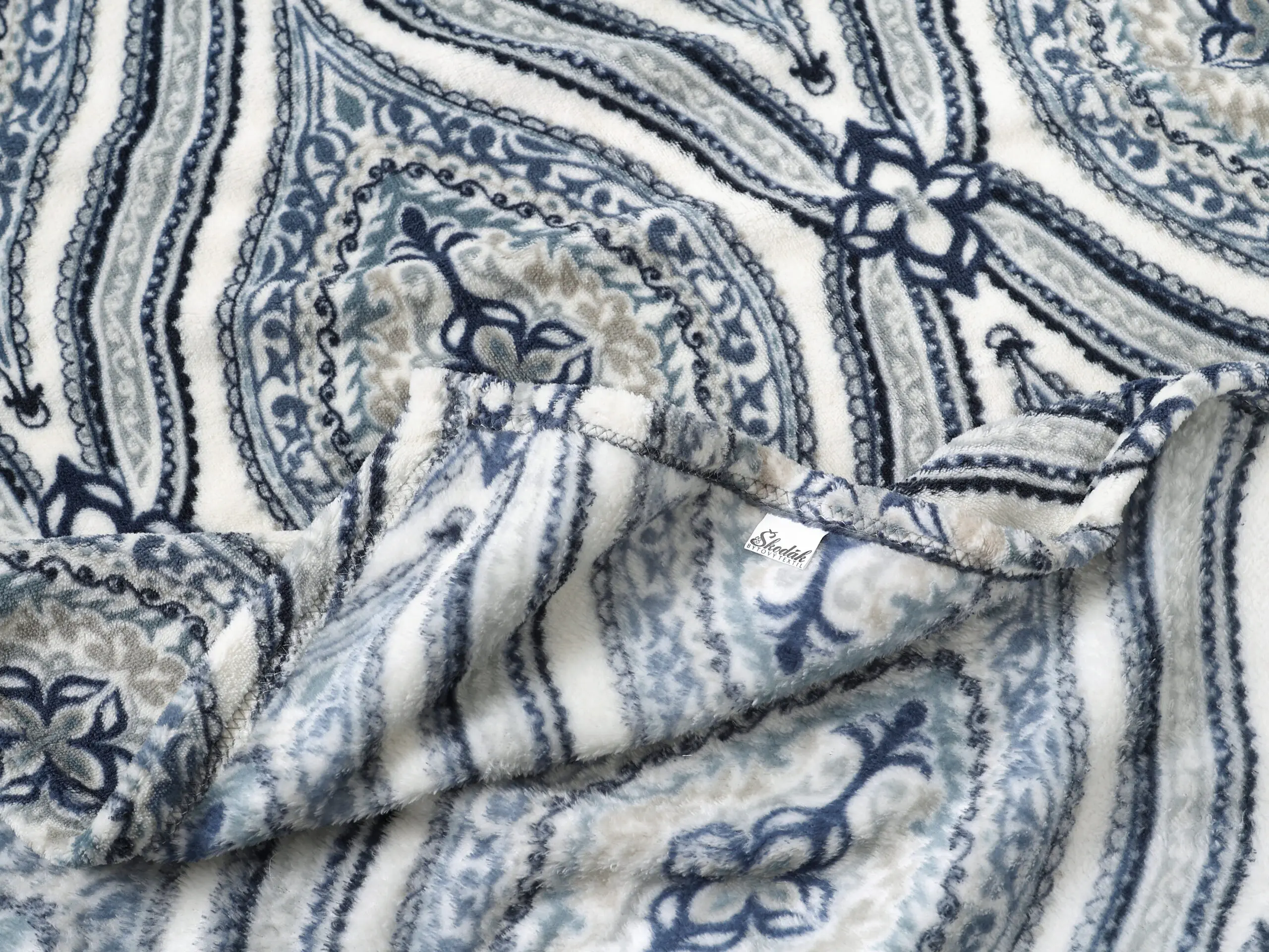 Naše kvalitní deka Mikroflanel modrý porcelán s rozměry 150×200 cm a gramáží 350 g/m2 je vyrobena z vysoce kvalitního mikrovlákna ze 100% polyesteru.