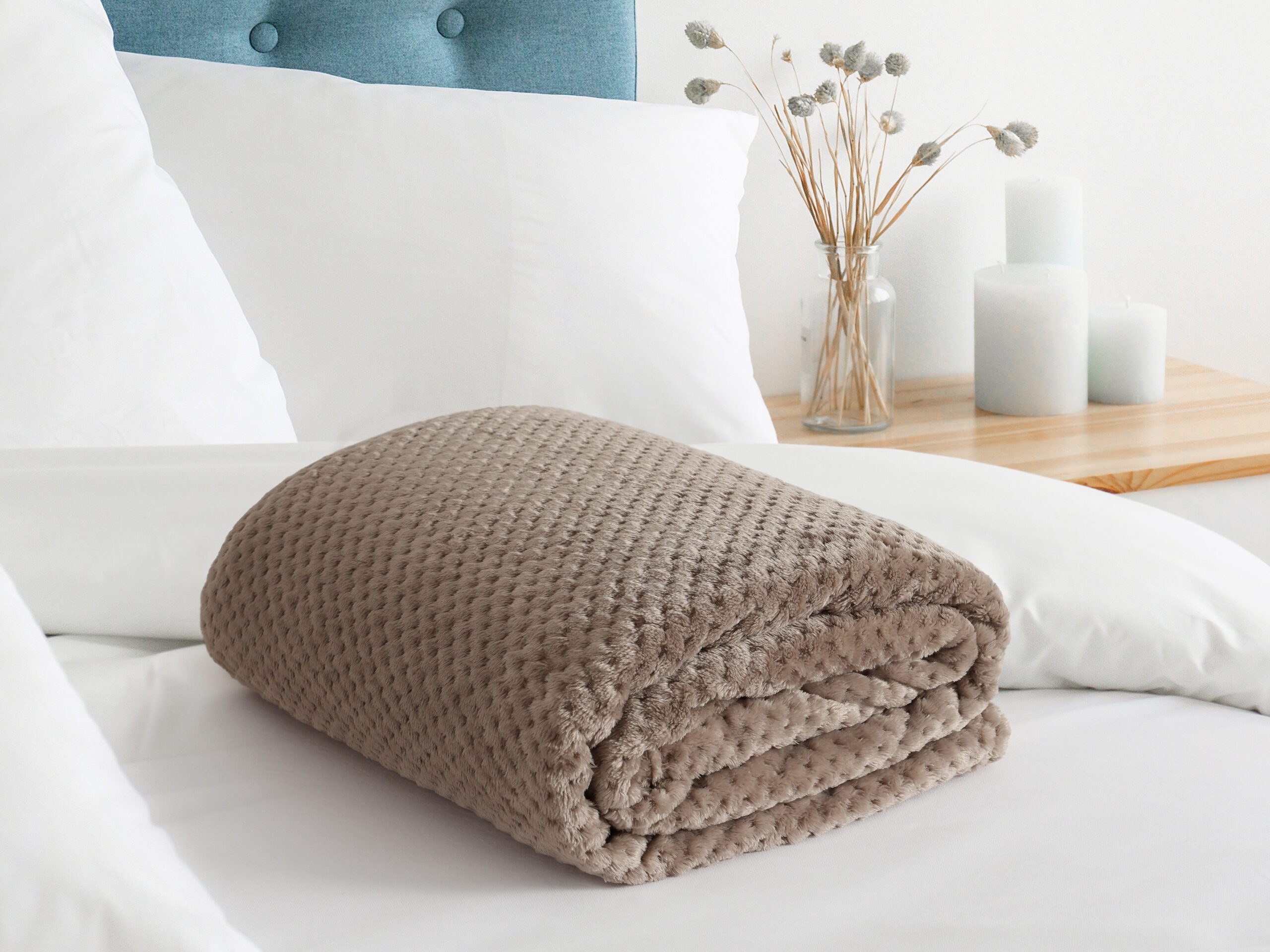 Tmavě béžová deka vám poskytne neuvěřitelné pohodlí a pohodu při každodenním používání. Tato deka má příjemnou 3D strukturu teček.