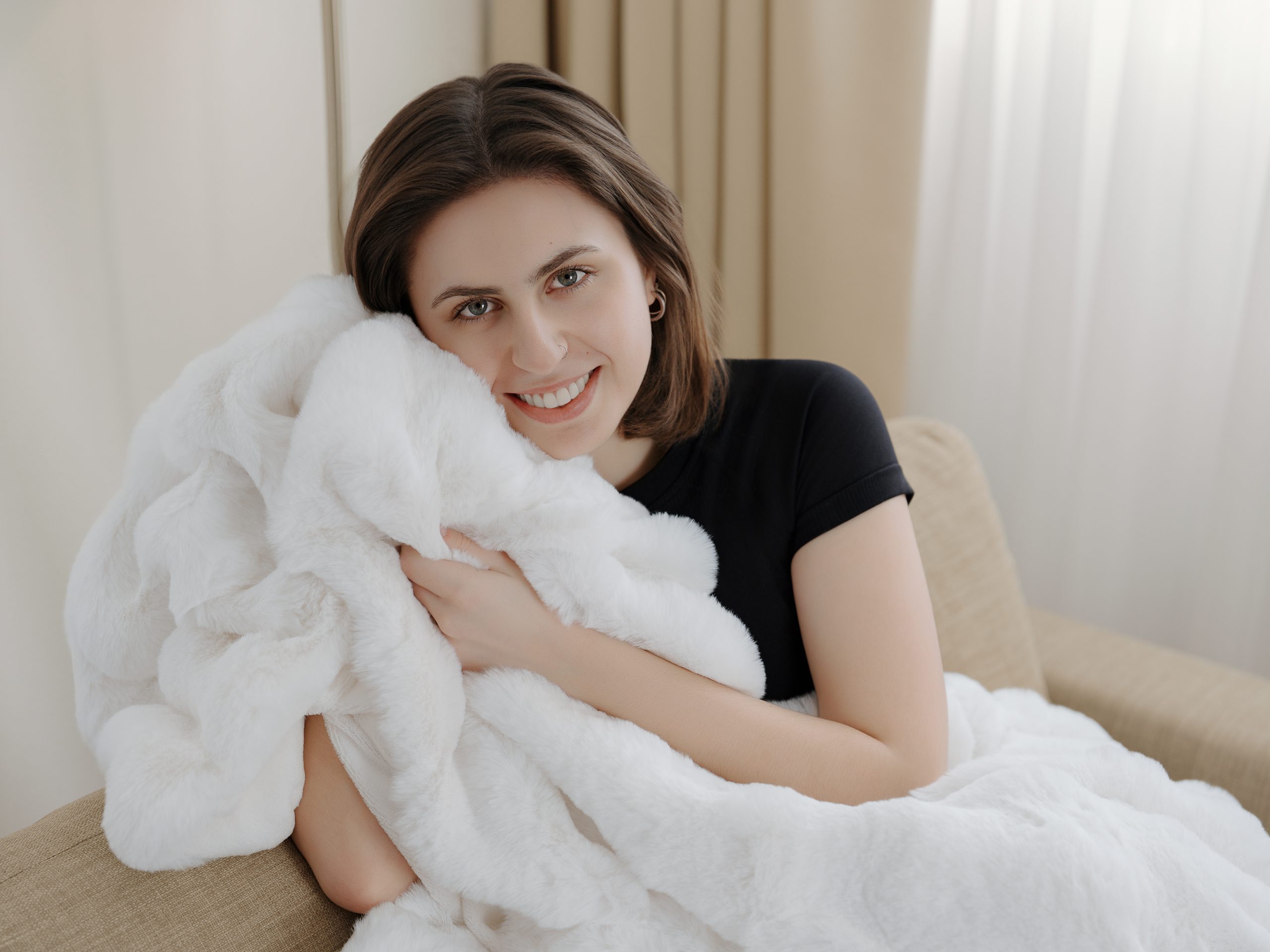 Díky hustému vlasu a kvalitnímu zpracování se deka nežmolkuje, nebledne a dlouhodobě si zachovává svůj tvar i vzhled i po opakovaném praní. Plastický vzor bublin v kombinaci s hebkou imitací srsti působí luxusně a zároveň přirozeně útulně. Deka se snadno sladí s ostatními bytovými textiliemi a dodá vašemu interiéru stylový a harmonický vzhled.