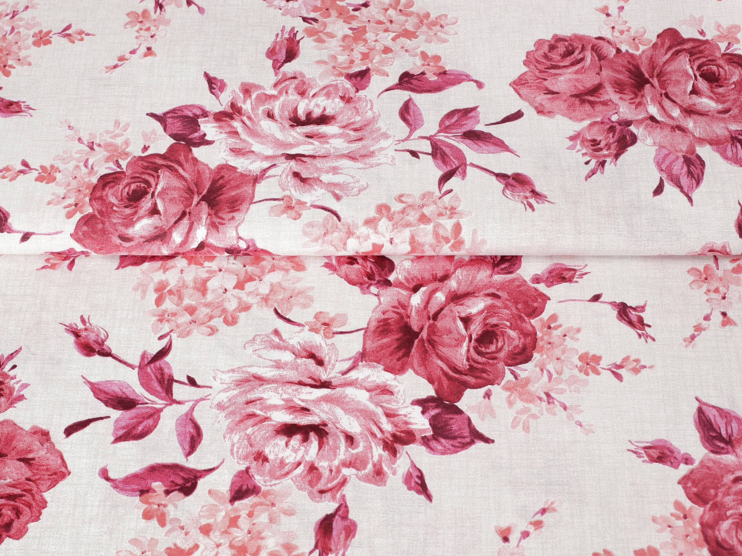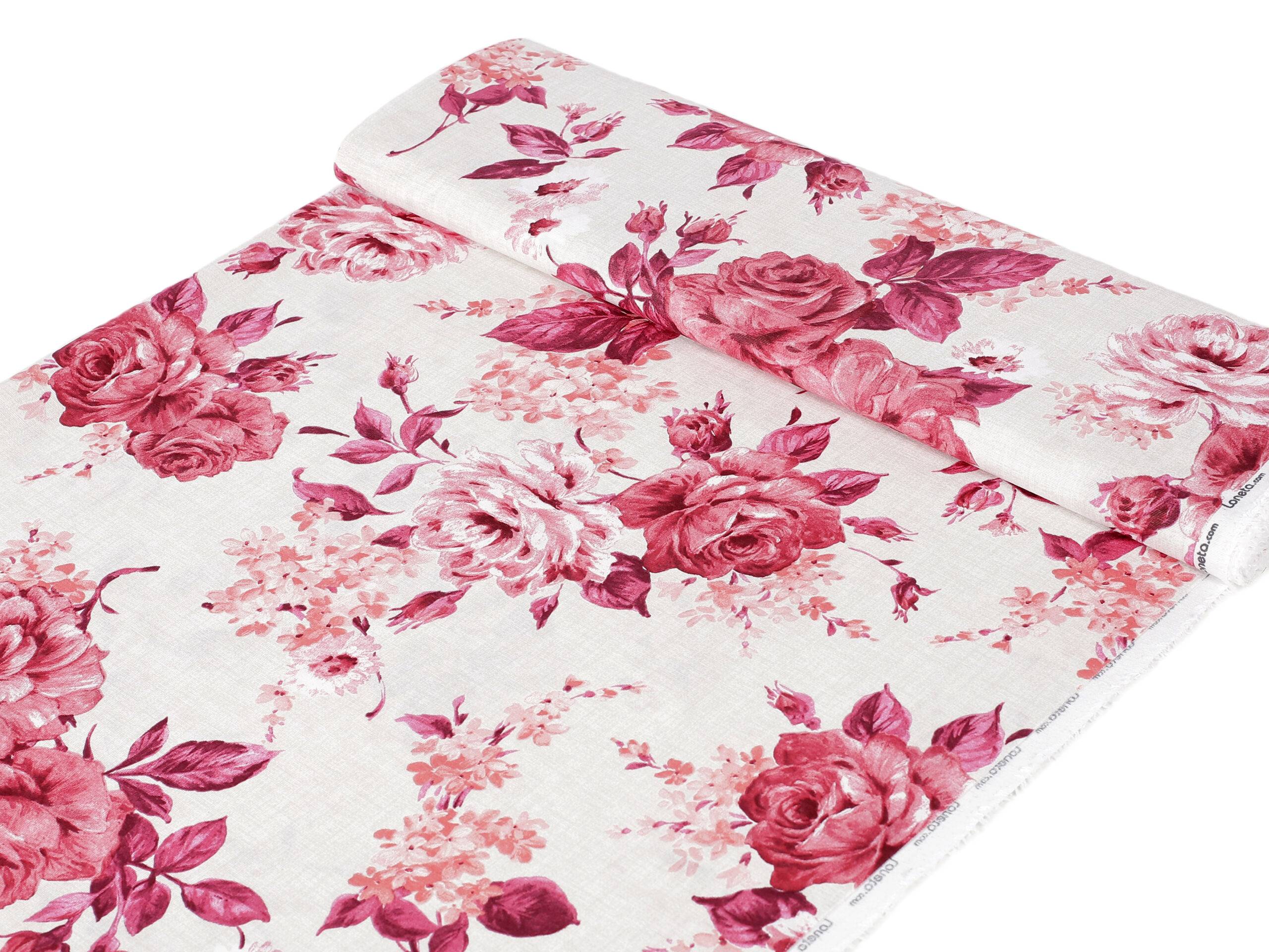Dekorační látka LONETA s růžemi je vhodná pro různé účely.