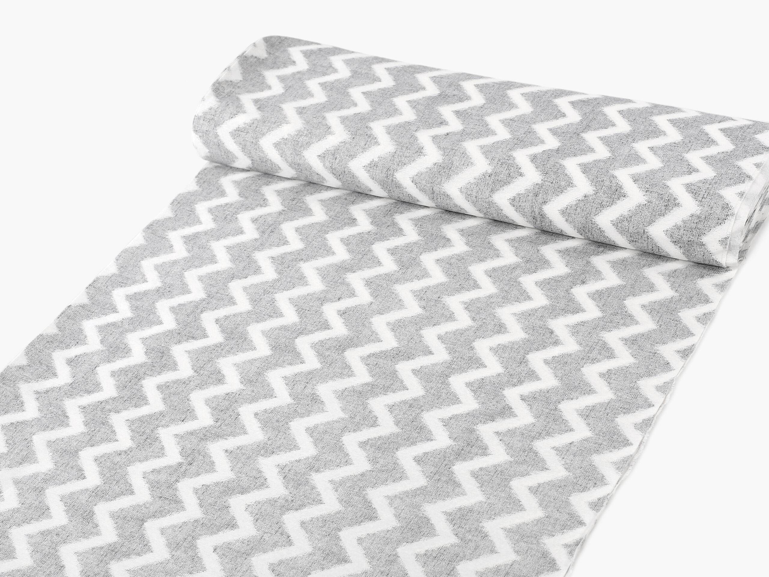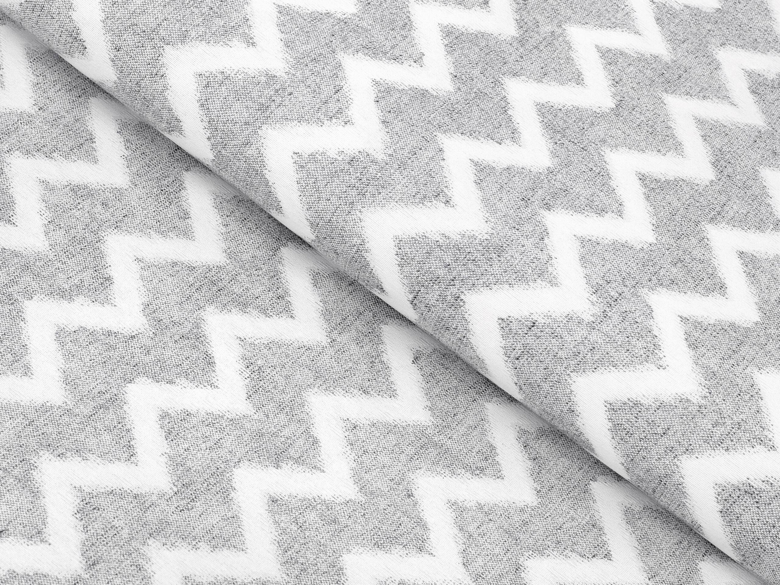Nabízíme ji v šíři 140 cm a je k dispozici v zajímavém vzoru cikcak a podkladové šedé barvě.