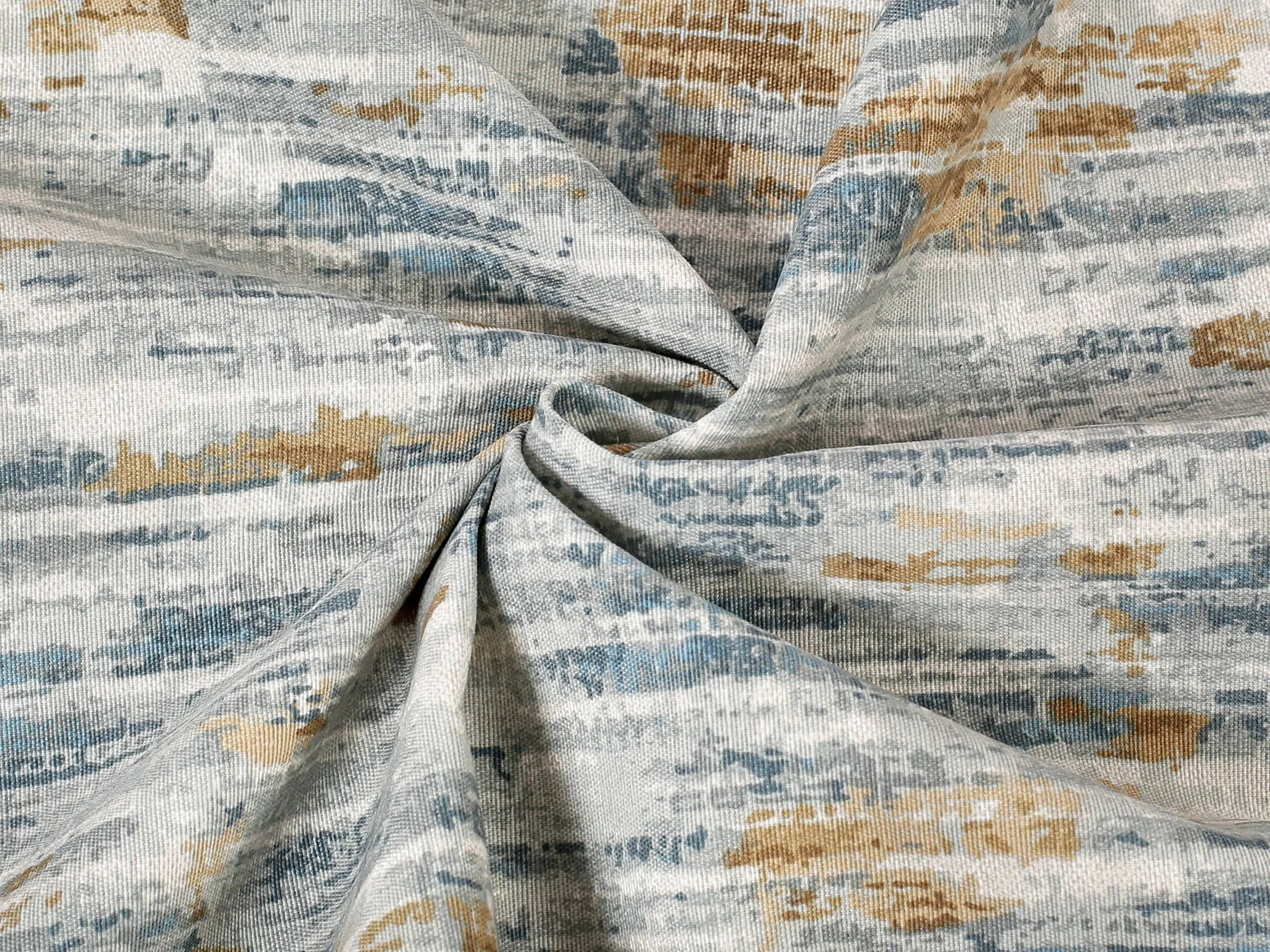 Nabízíme ji v šíři 140 cm a je k dispozici v zajímavém vzoru petrolejové žíhání a podkladové šedé barvě.