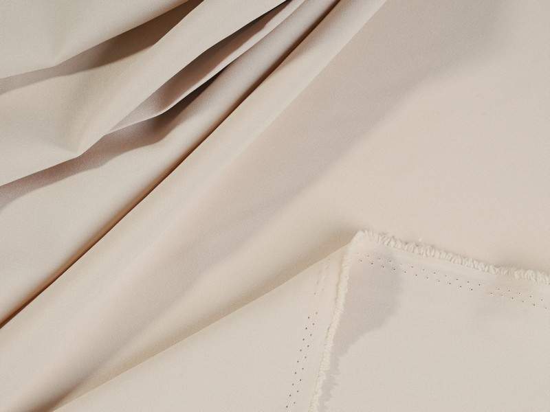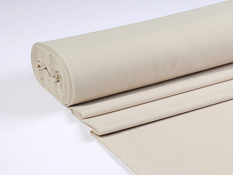 Béžová látka rongo má plátnovou vazbu. Díky jejímu složení je hladká, nemačkavá a barevně stálá.