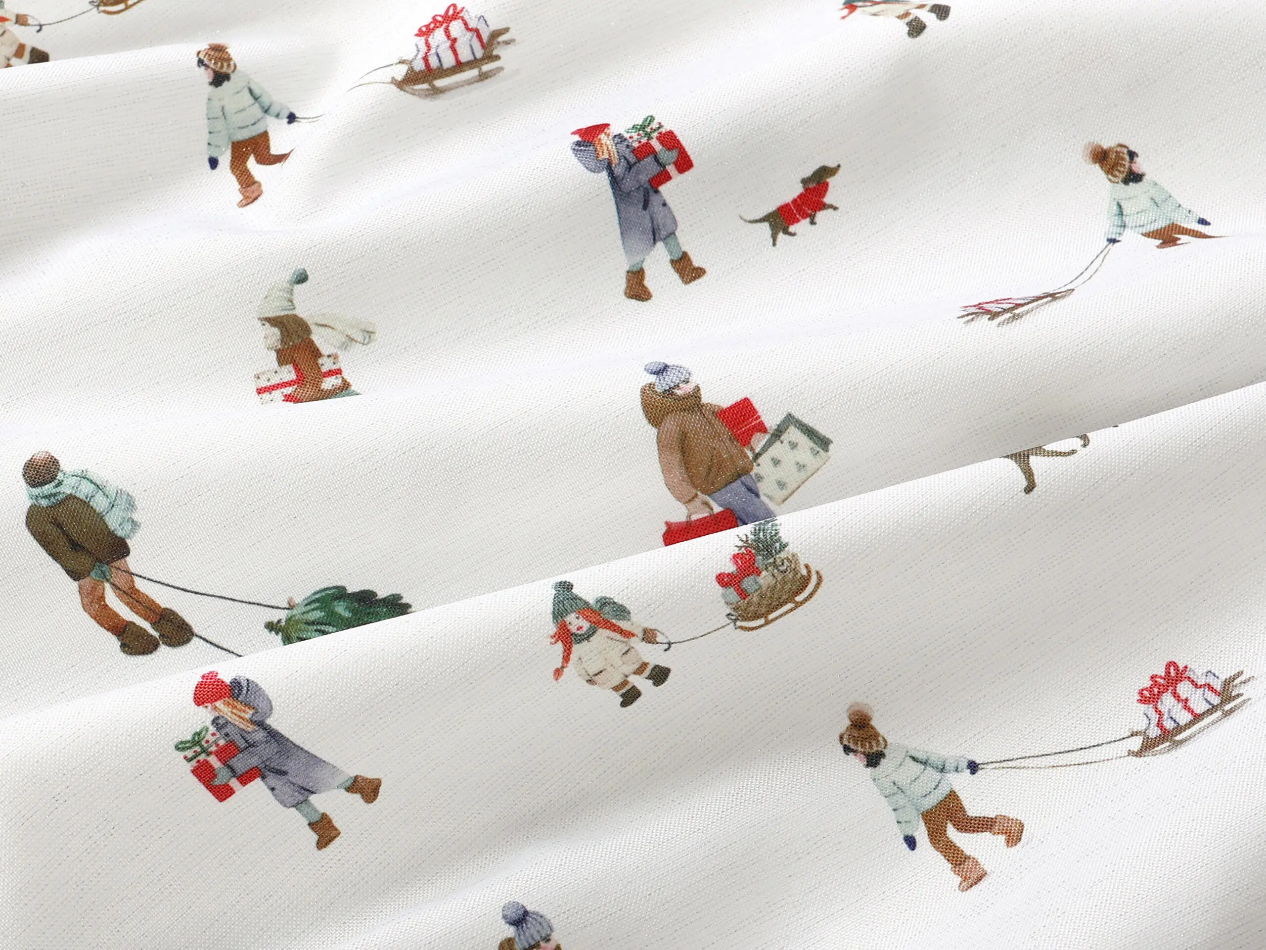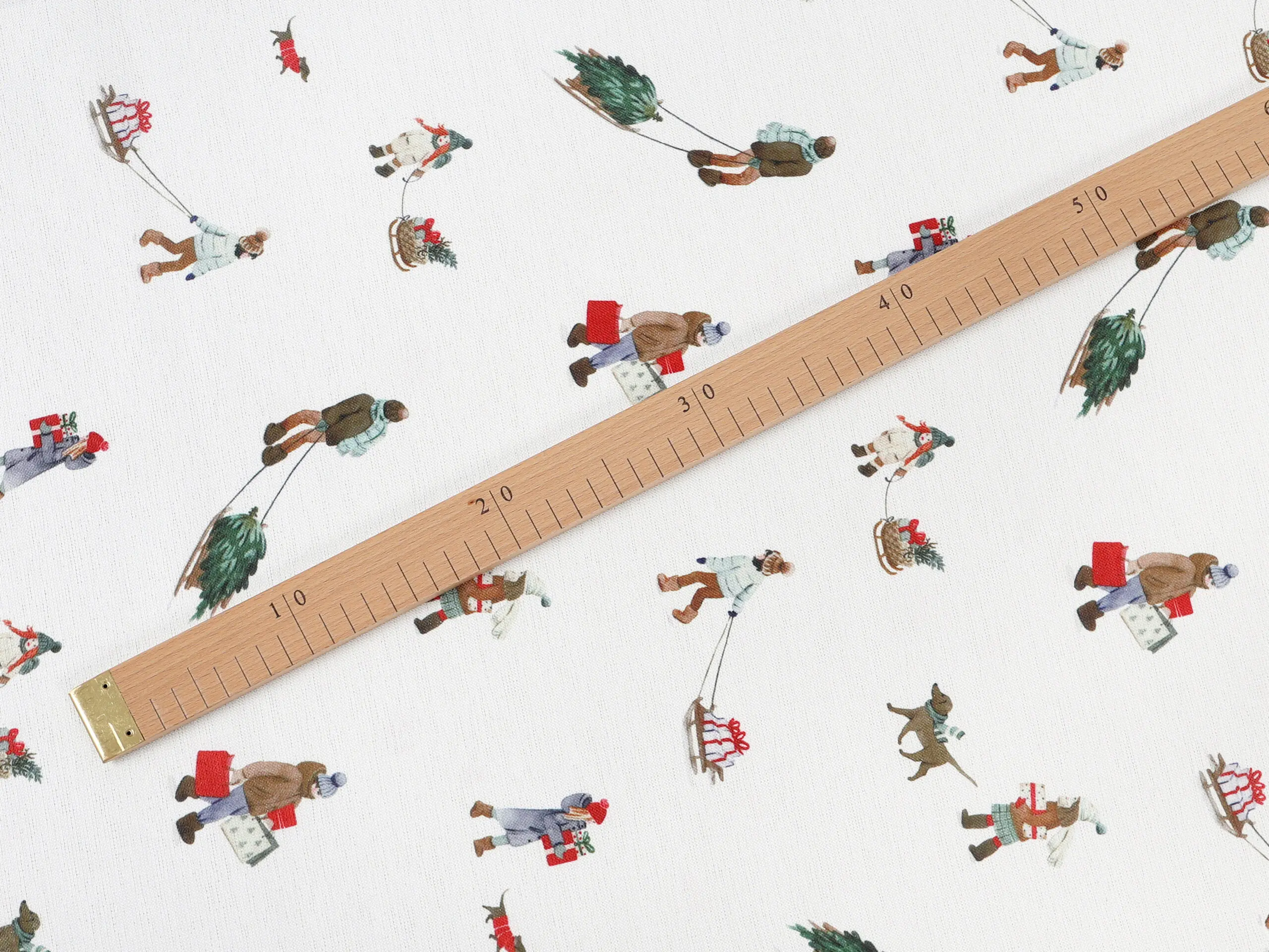 Látku nabízíme v metráži. Objednáte si přesně tolik, kolik potřebujete, bez zbytečného plýtvání. Kromě samotné látky u nás najdete i hotové výrobky ze stejného vzoru, takže si snadno vytvoříte sladěný sváteční interiér.