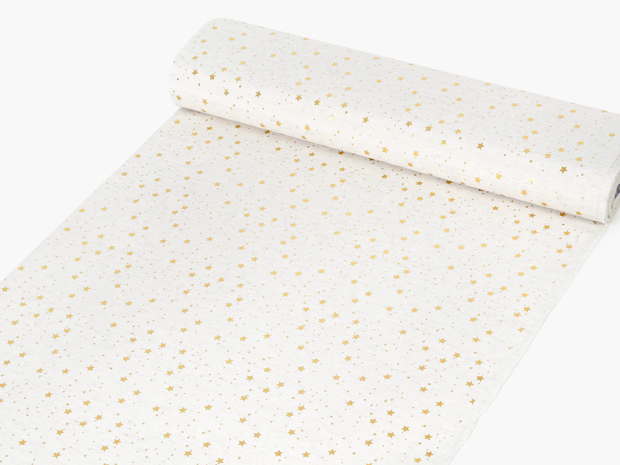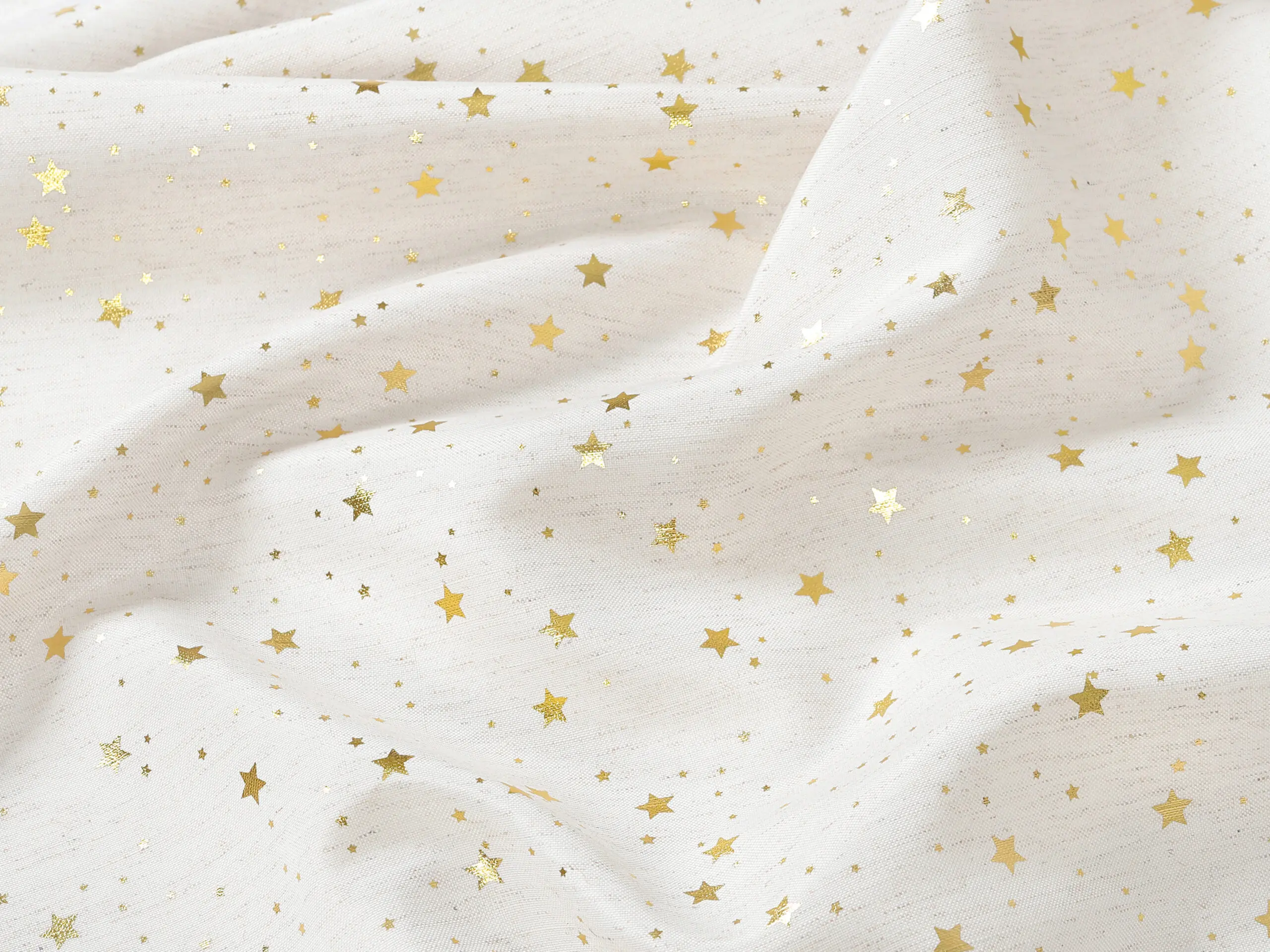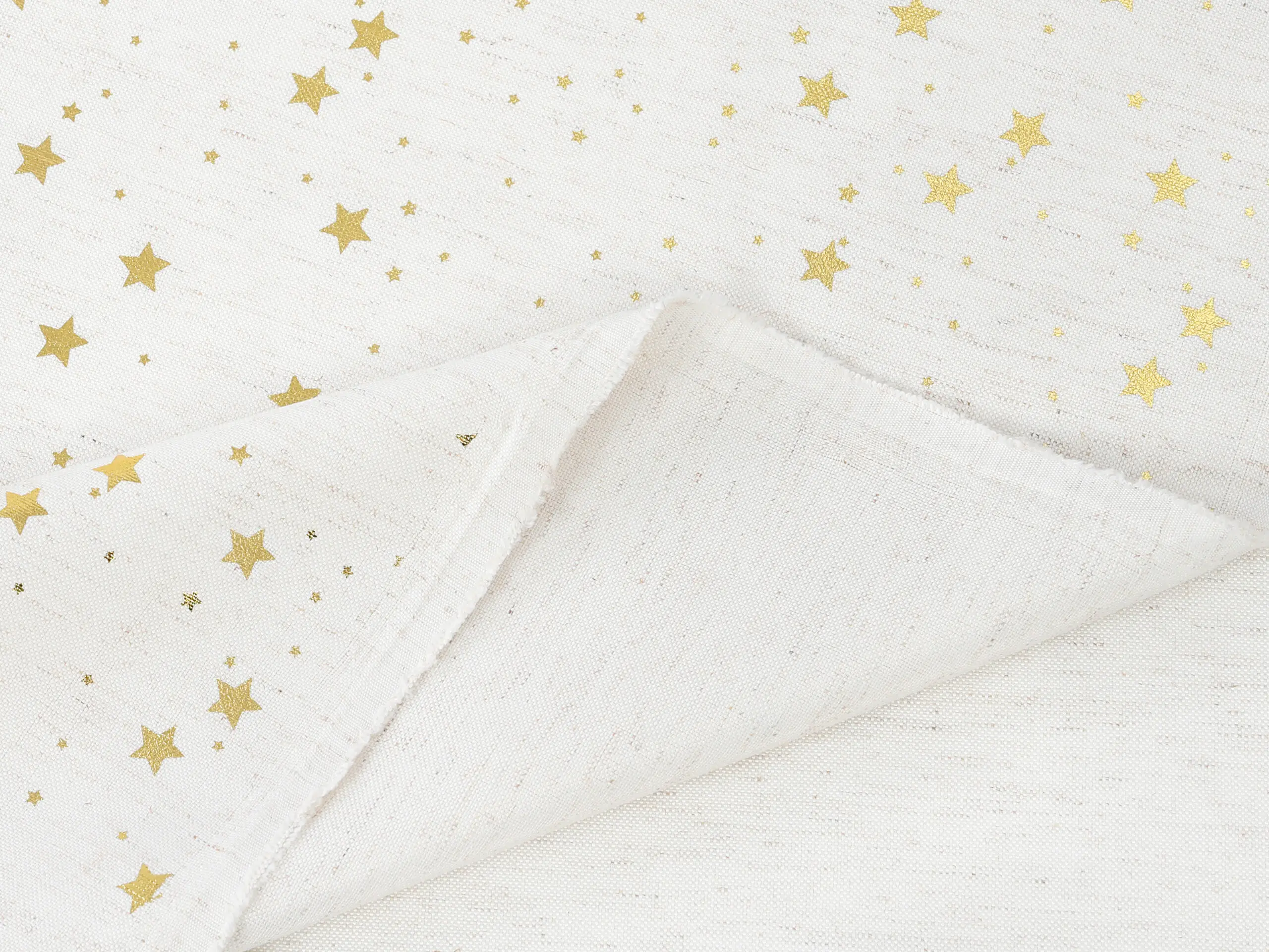 Dekorační látka zlaté hvězdy na režné vnese do vašeho domova kouzelnou vánoční atmosféru. Je vyrobena ze 100% polyesteru. Praktická, odolná a zároveň dekorativní. Přesně taková je tato látka české výroby.