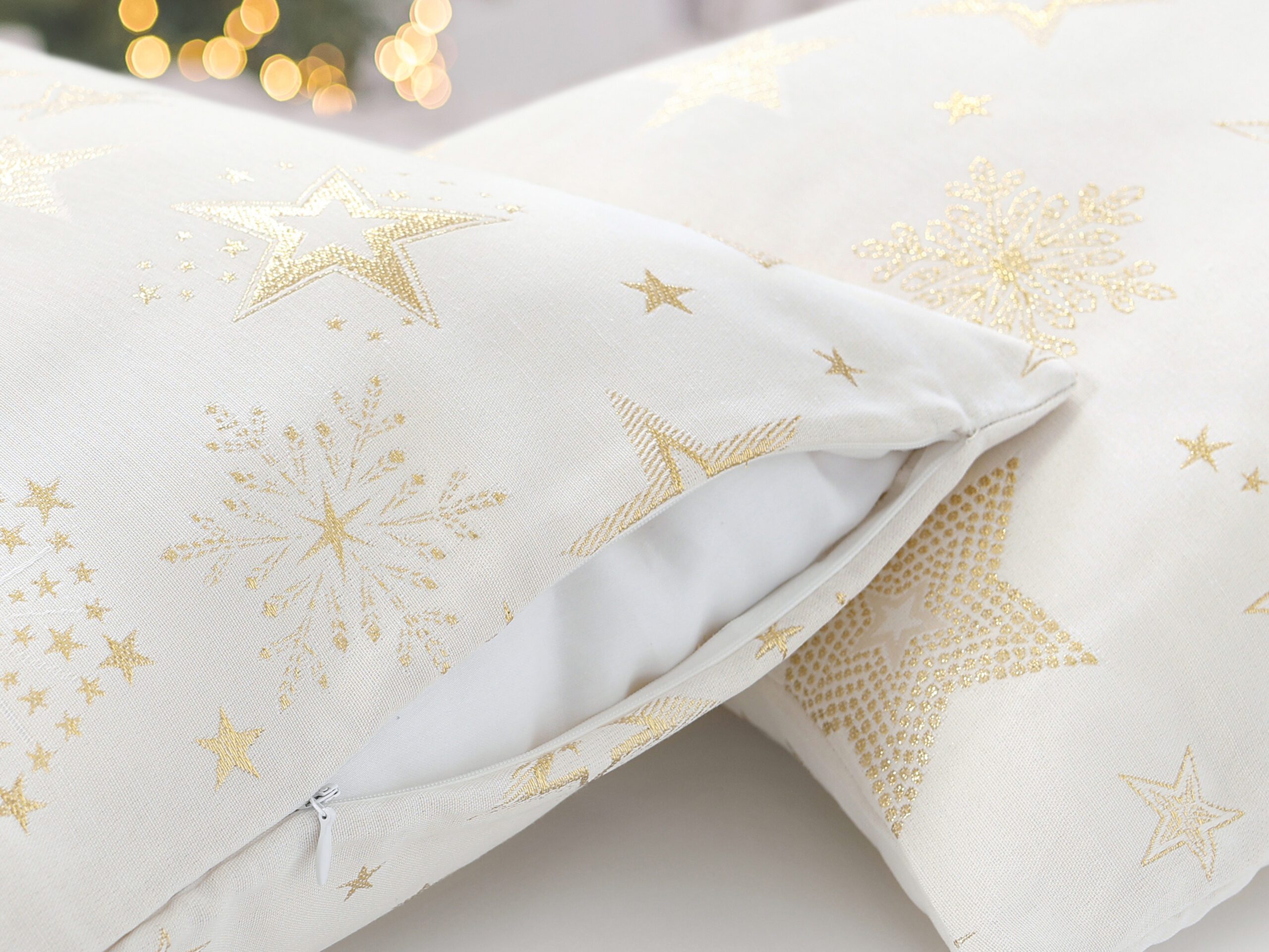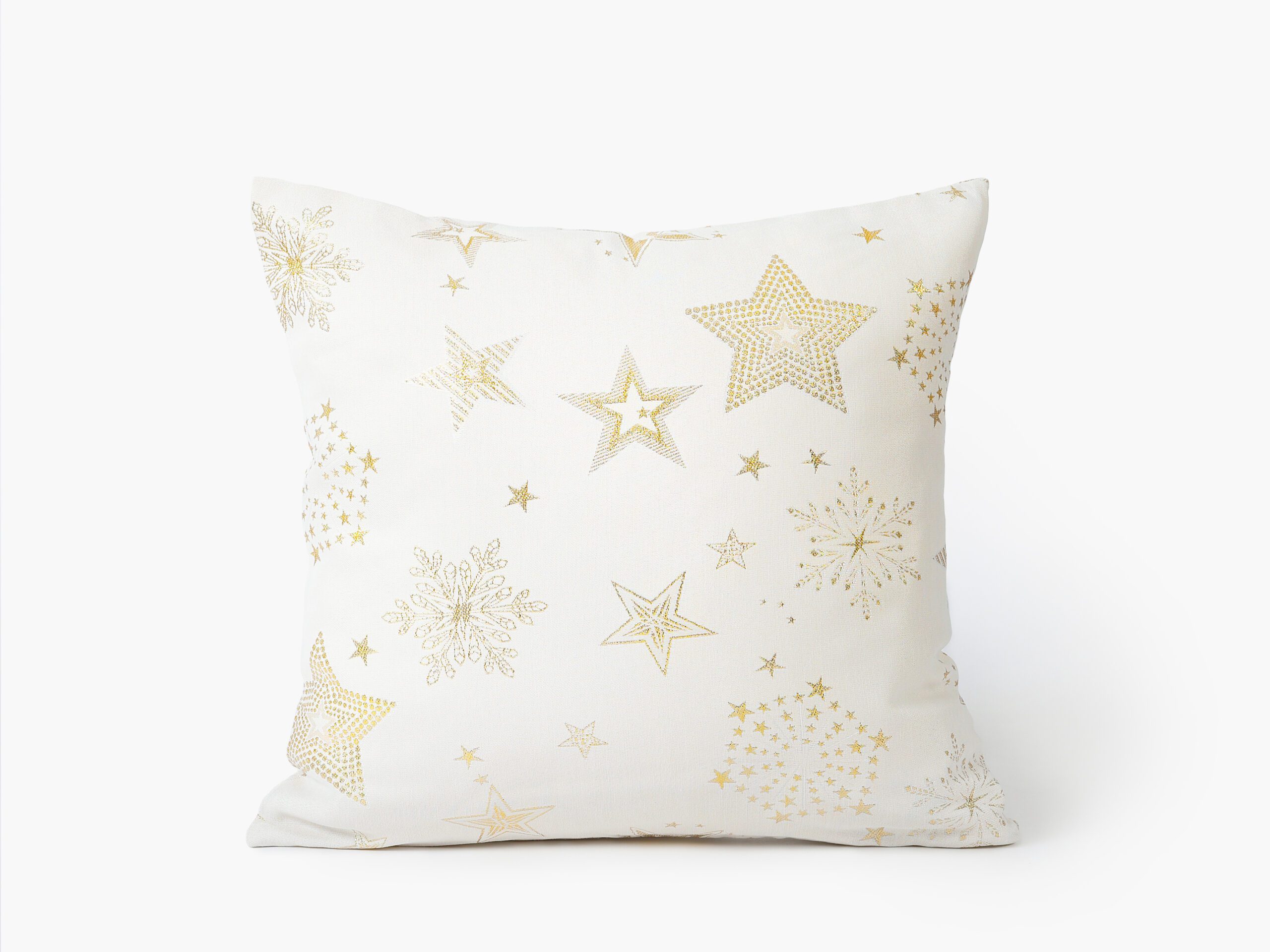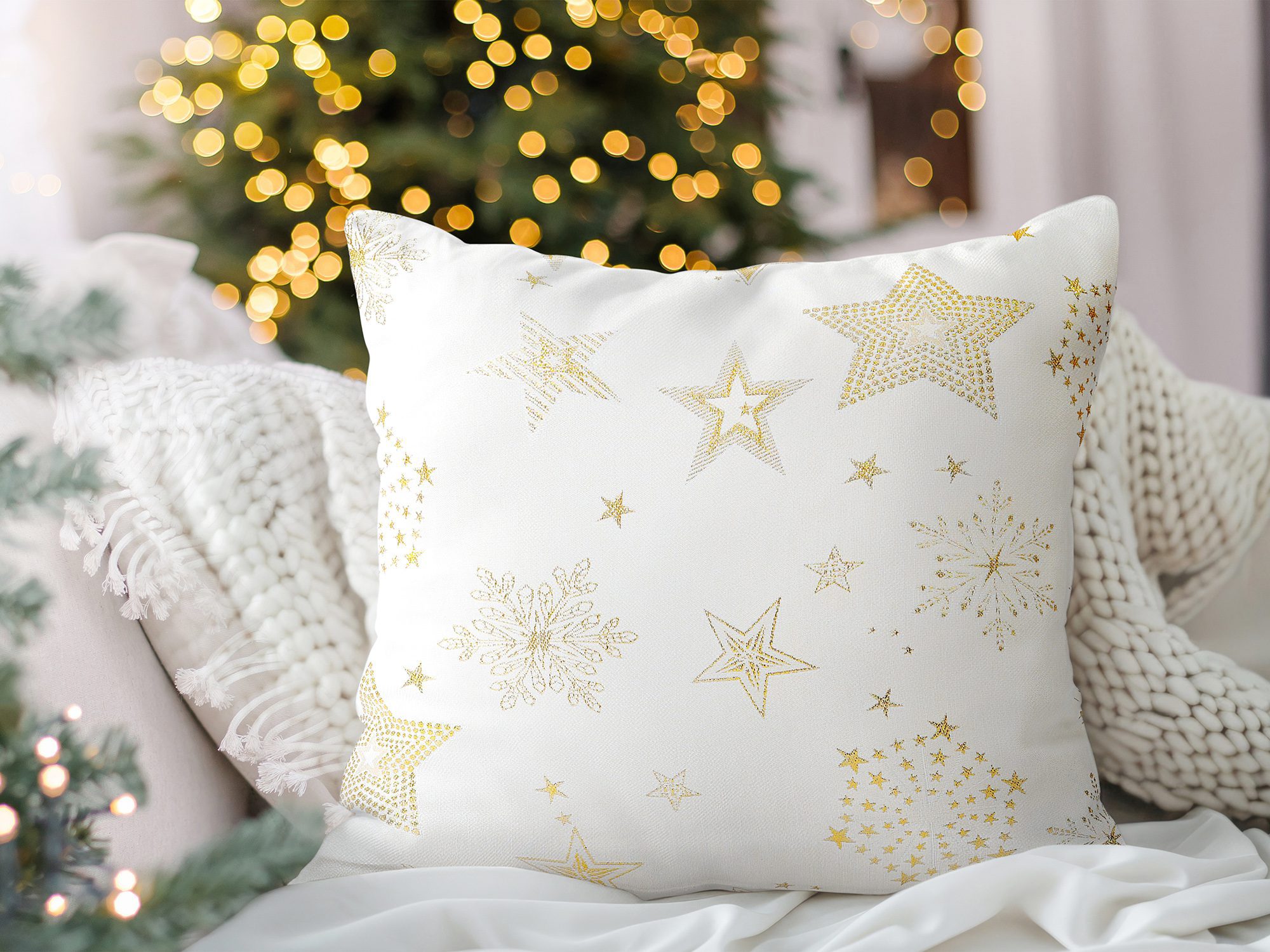 Objevte náš vánoční dekorační povlak na polštář zlaté hvězdy na krémové se kterým budou letošní Vánoce nezapomenutelným zážitkem. Je vyroben z kvalitního 100% polyesteru.