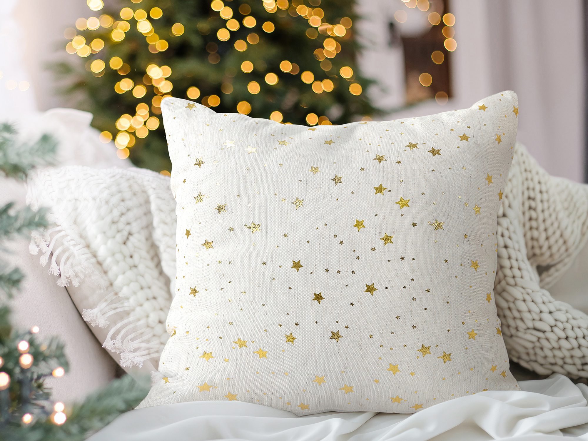 Objevte náš vánoční dekorační povlak na polštář zlaté hvězdy na režné se kterým budou letošní Vánoce nezapomenutelným zážitkem. Je vyroben z kvalitního 100% polyesteru.
