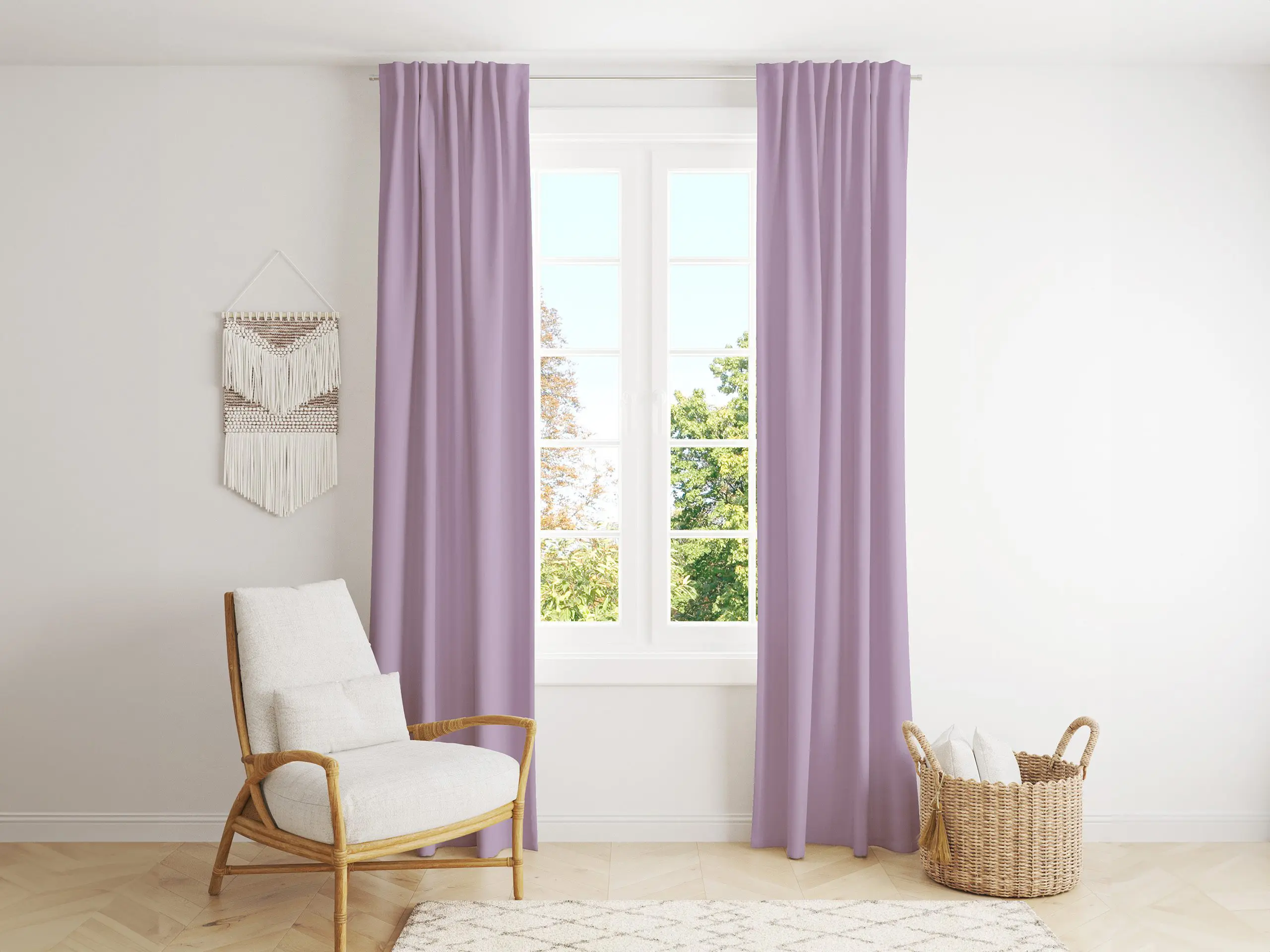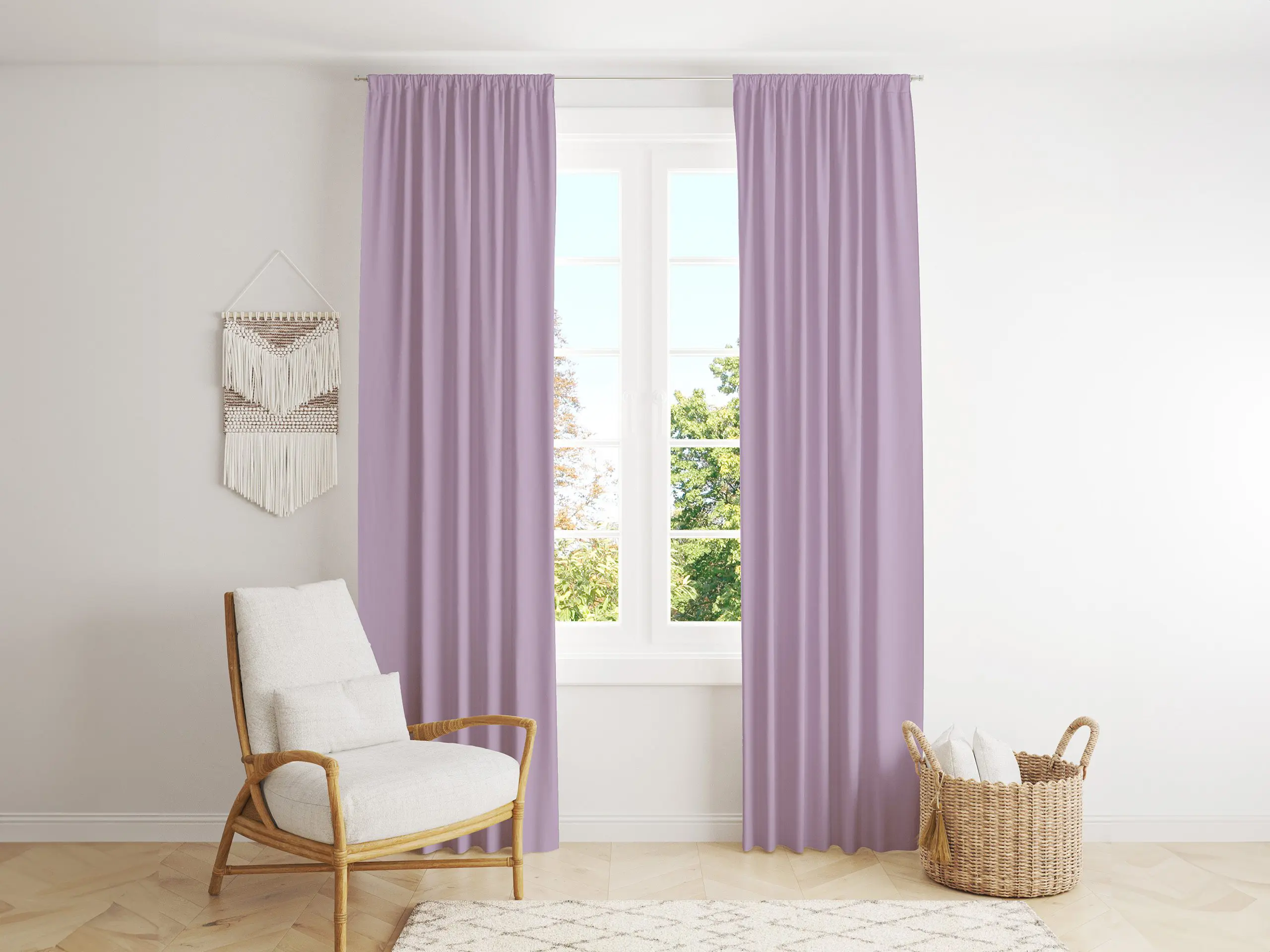 - Propustnost světla: Díky vysoké gramáži závěsy poskytují dobrou regulaci světla. Nabízejí ochranu před slunečním zářením a zvýšení soukromí. Závěs vaši místnost zastíní, ale nezatemní tak, jak naše zatemňovací závěsy.