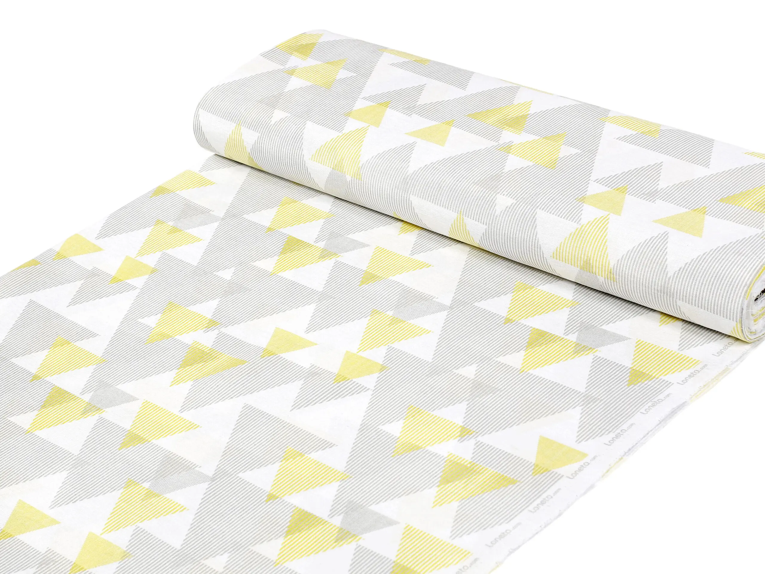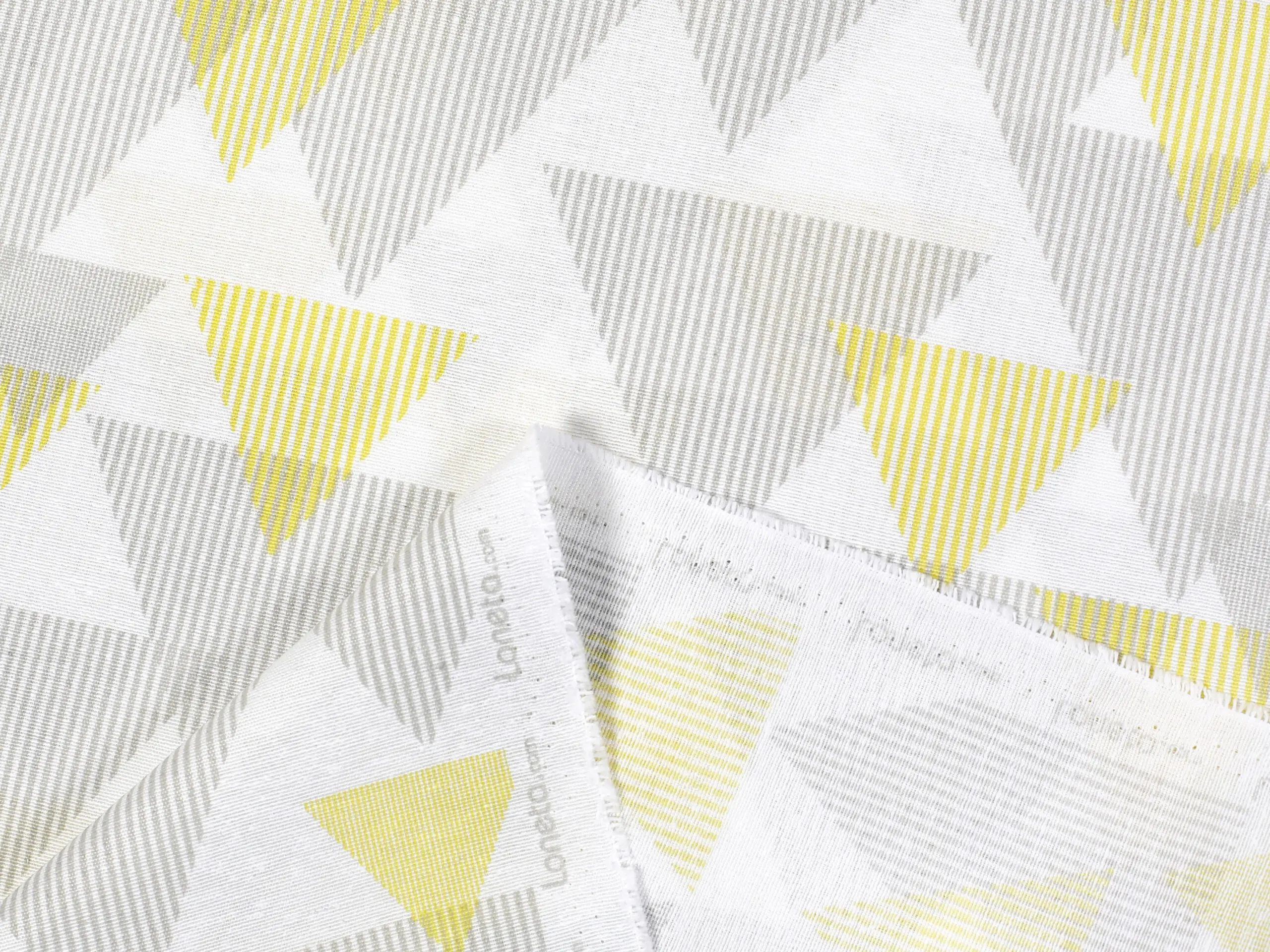 Dekorační závěs Loneta – šedé a žluté trojúhelníky – 140×160 cm