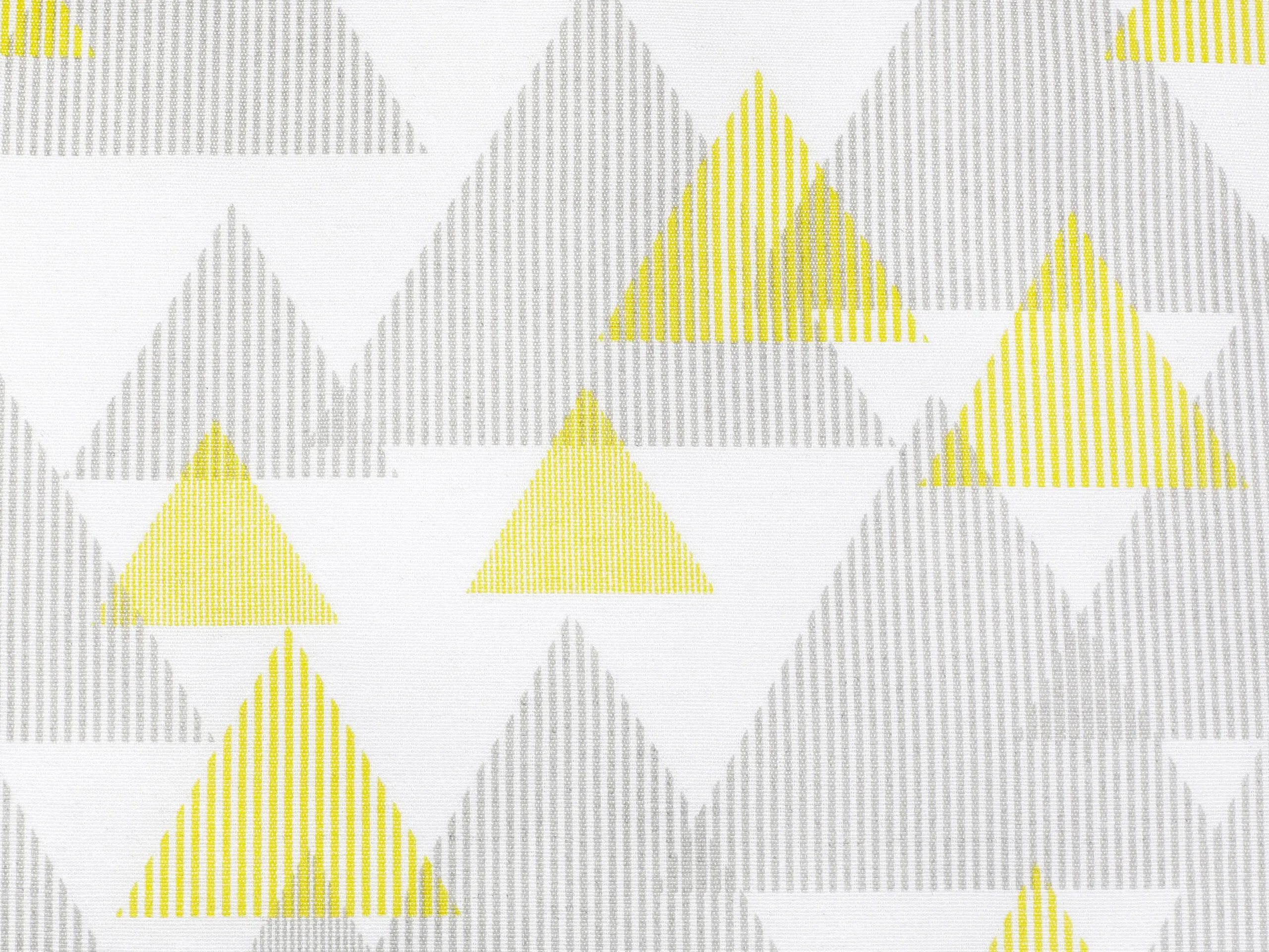 Závěs šedé a žluté trojúhelníky o rozměru 140×160 cm