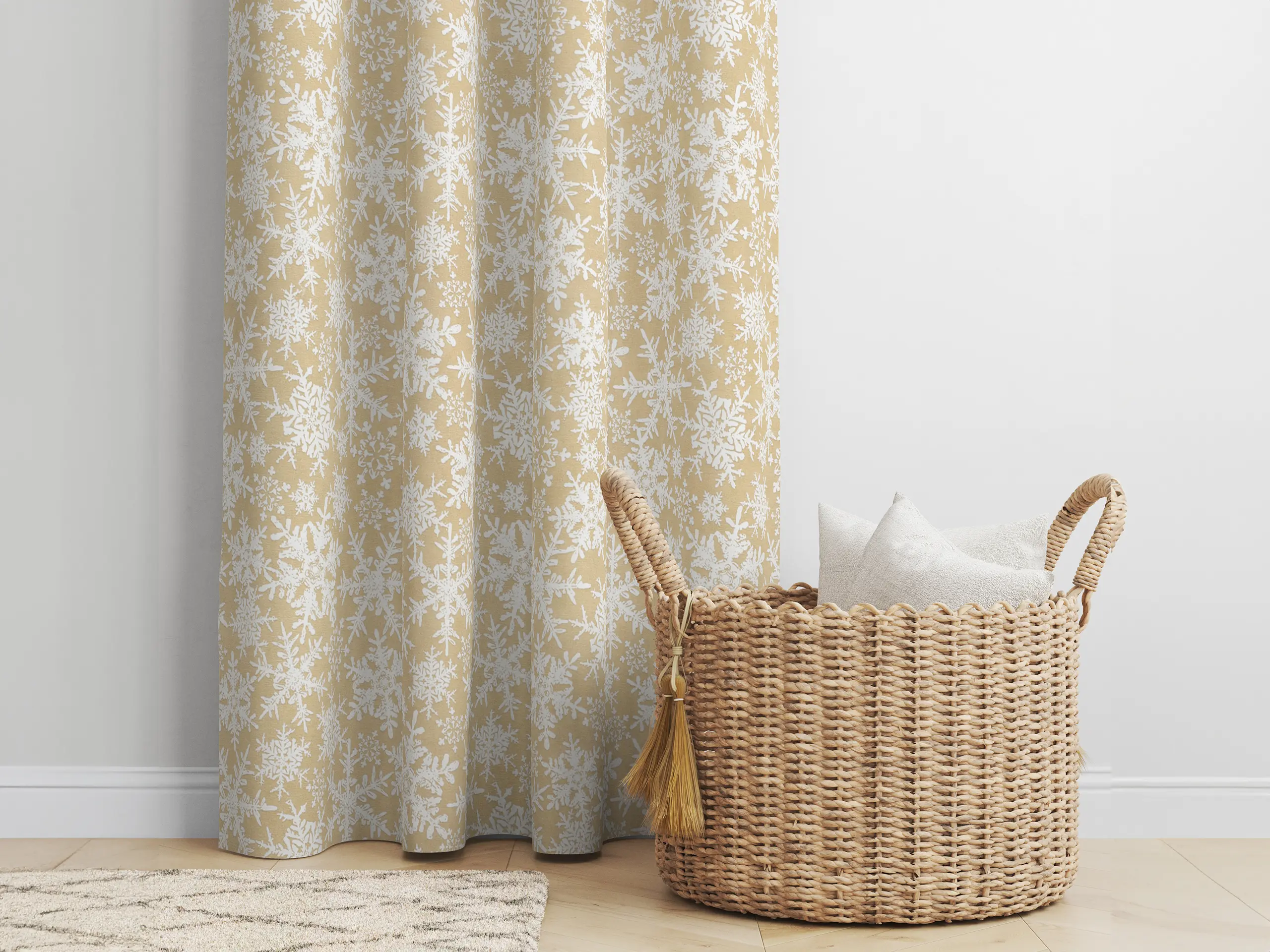 Dekorační závěs Terra – vločky na béžové – 140×160 cm