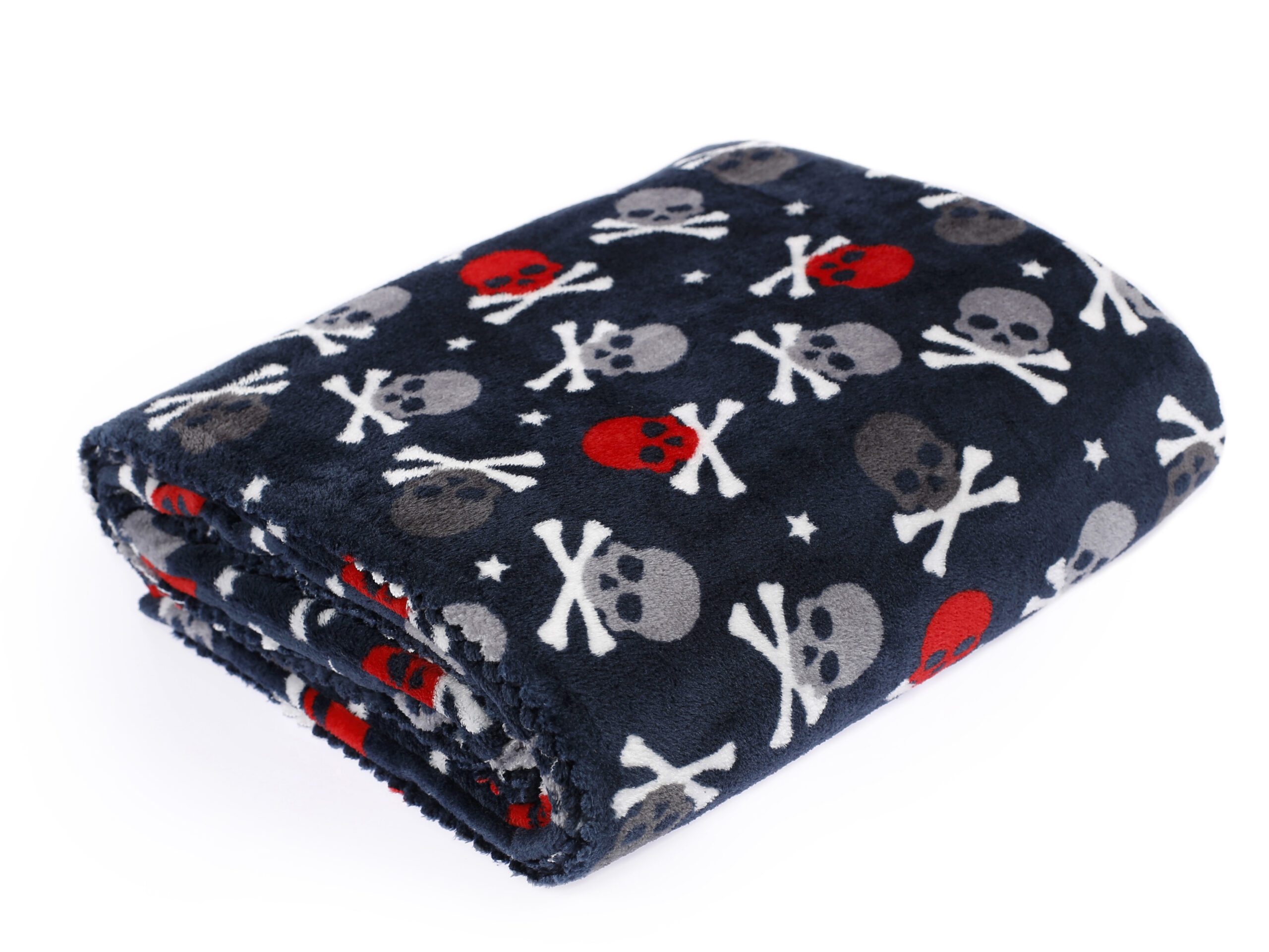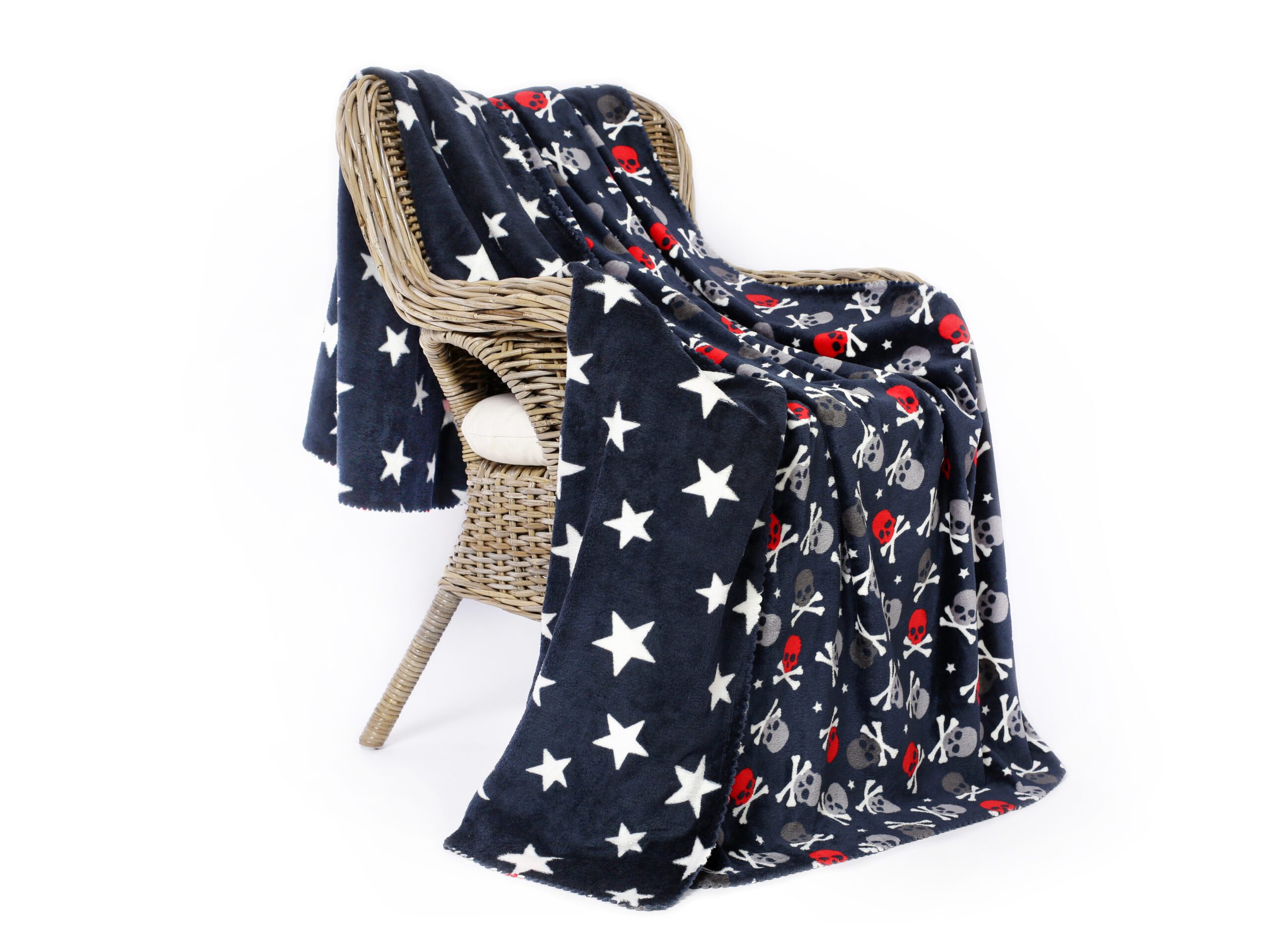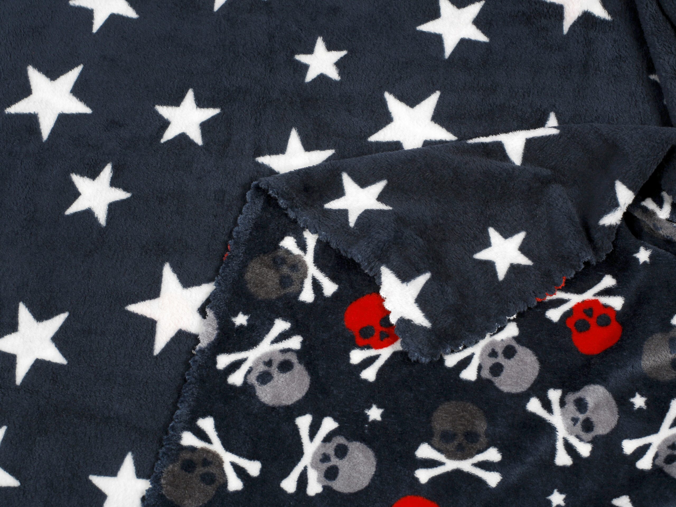 Svou vysokou hřejivostí se tato deka stane oblíbeným společníkem, zejména v chladných zimních měsících. Deka má oboustranné provedení, vrchní strana má vzor s lebkami, spodní strana vzor hvězd na tmavě modré barvě.