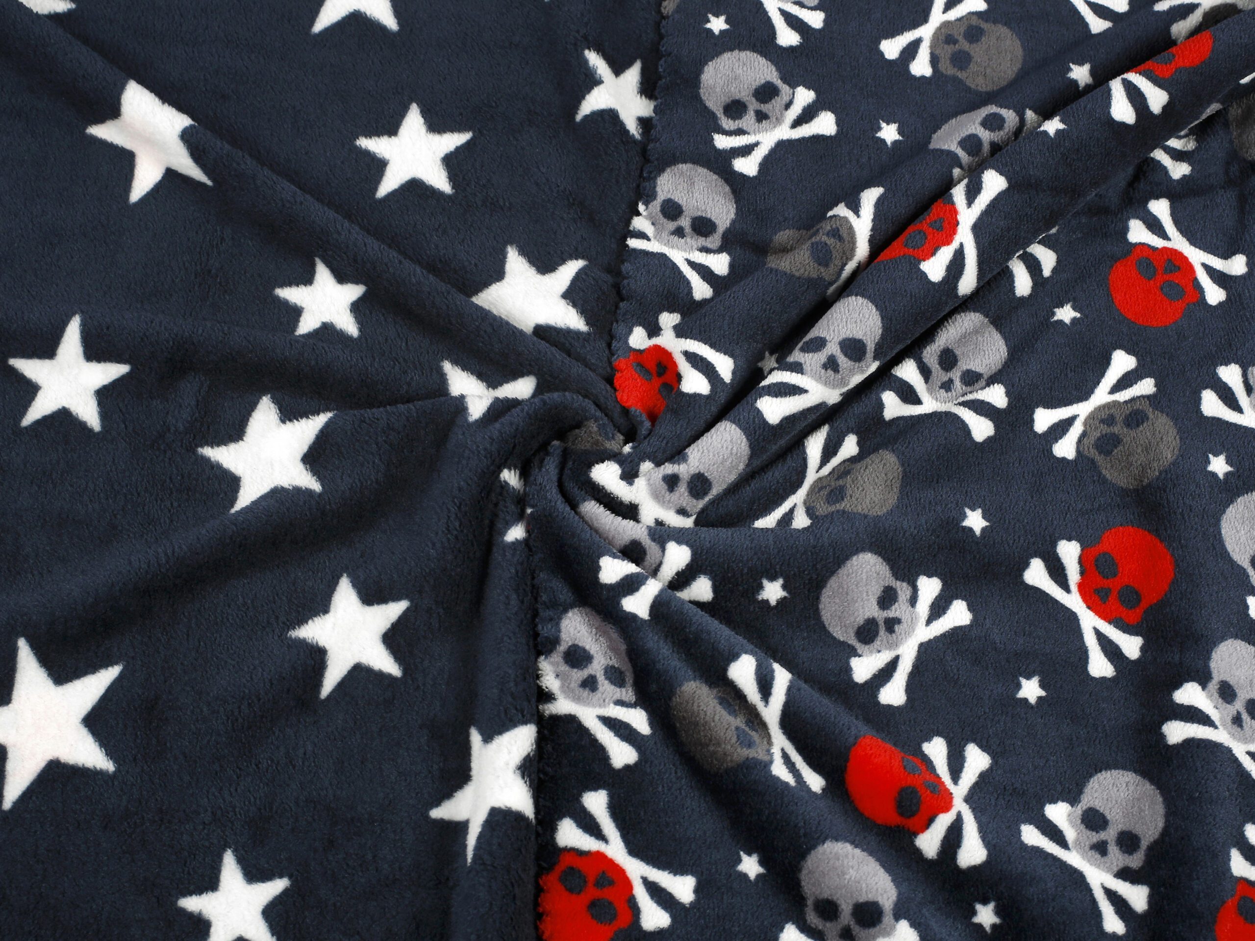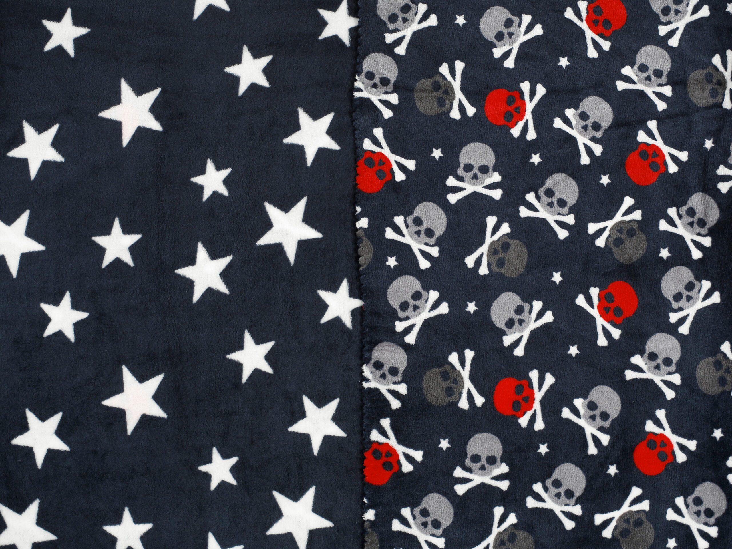 Naše hřejivá dětská deka Mikrovlákno lebky a hvězdy s gramáží 350 g/m2 je vyrobena z vysoce kvalitního mikrovlákna ze 100% polyesteru.