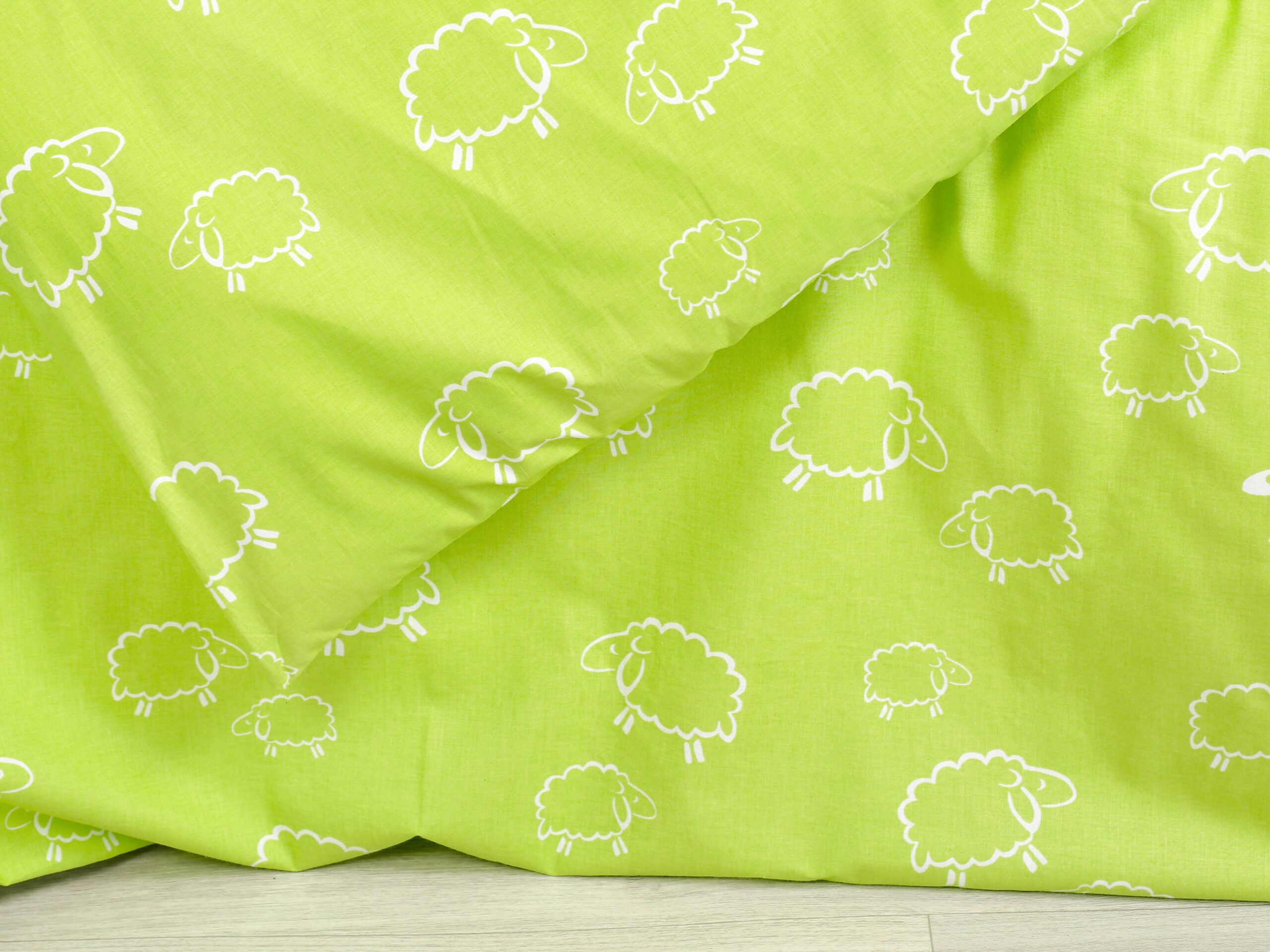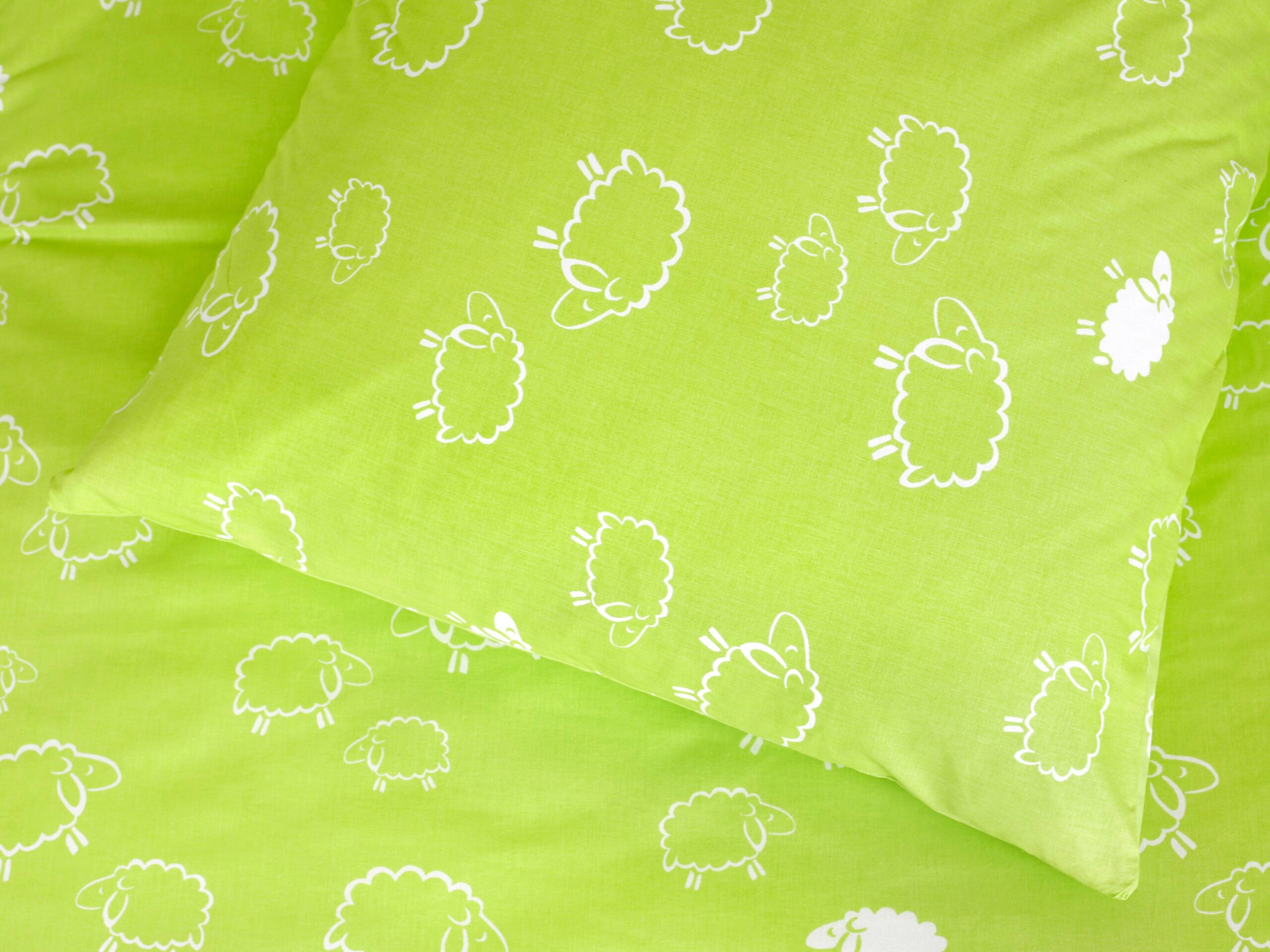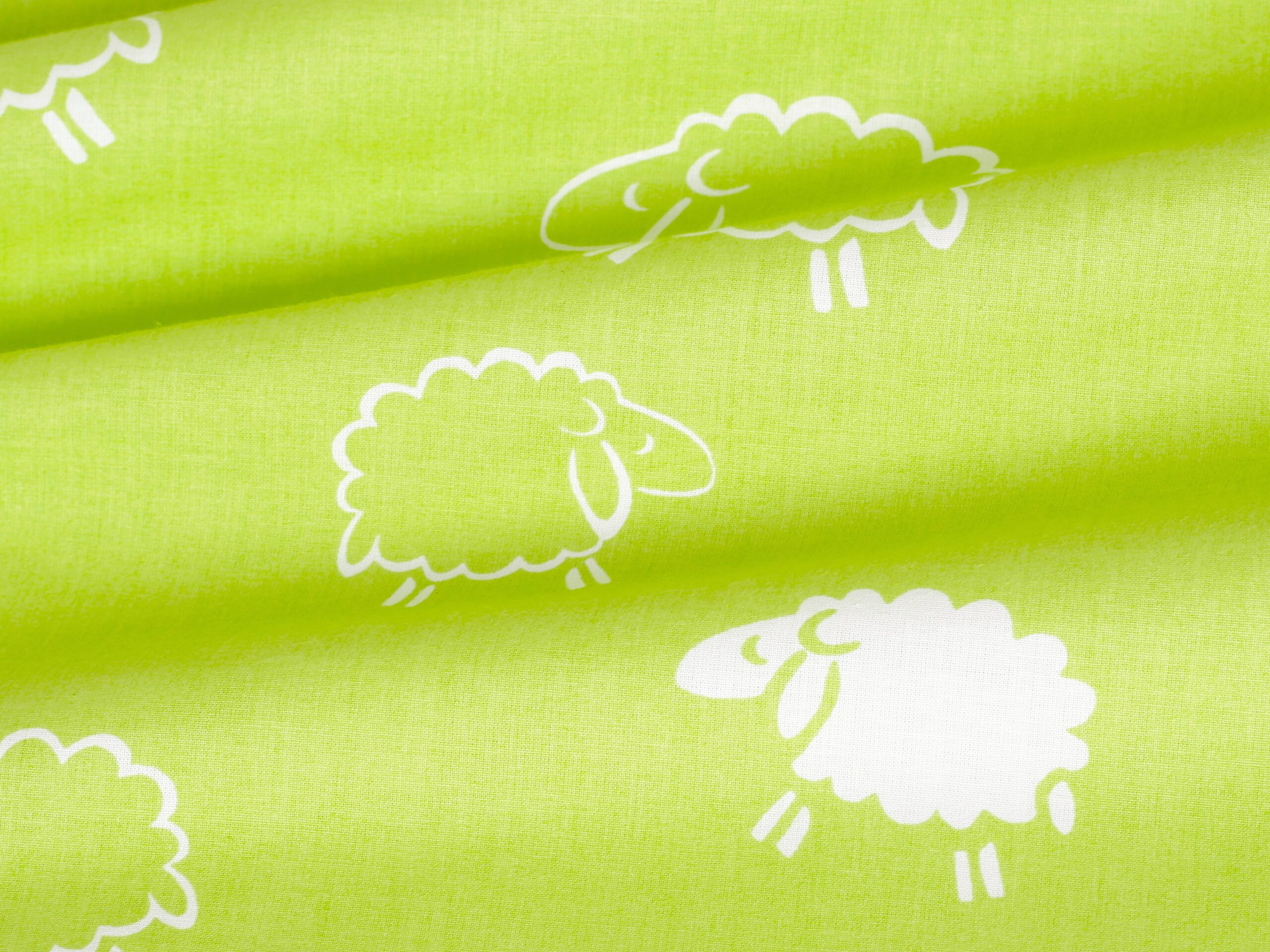 Motiv bílé ovečky na pistáciovém pozadí přidává dětskému povlečení skvělý šarm.
