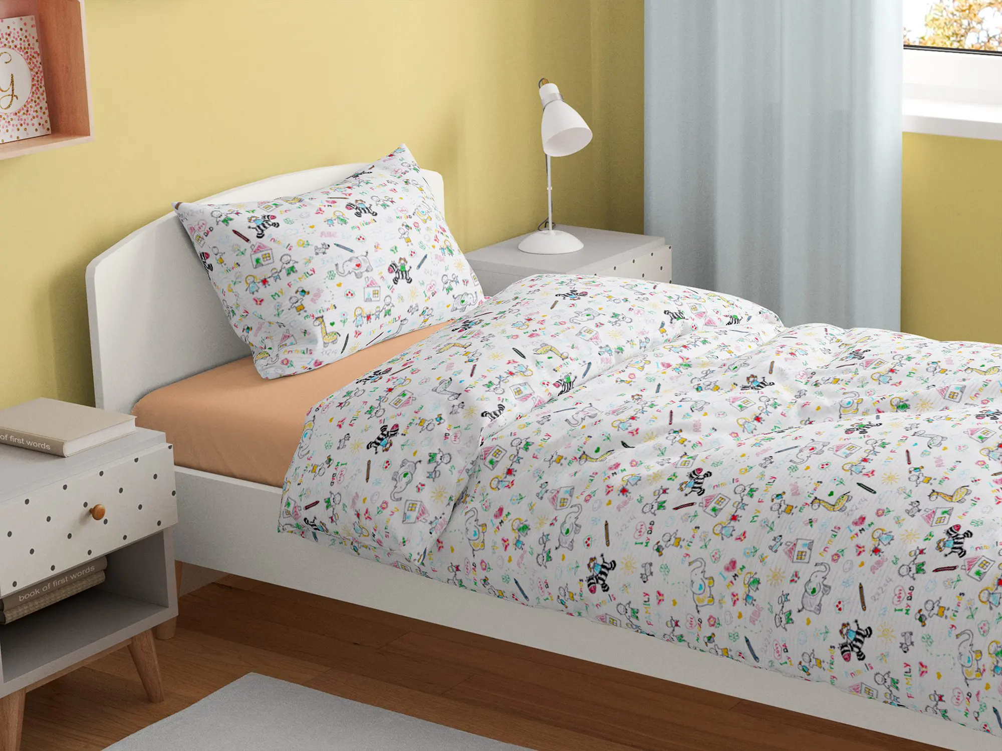 Motiv s omalovánkami přidává dětskému povlečení skvělý šarm.