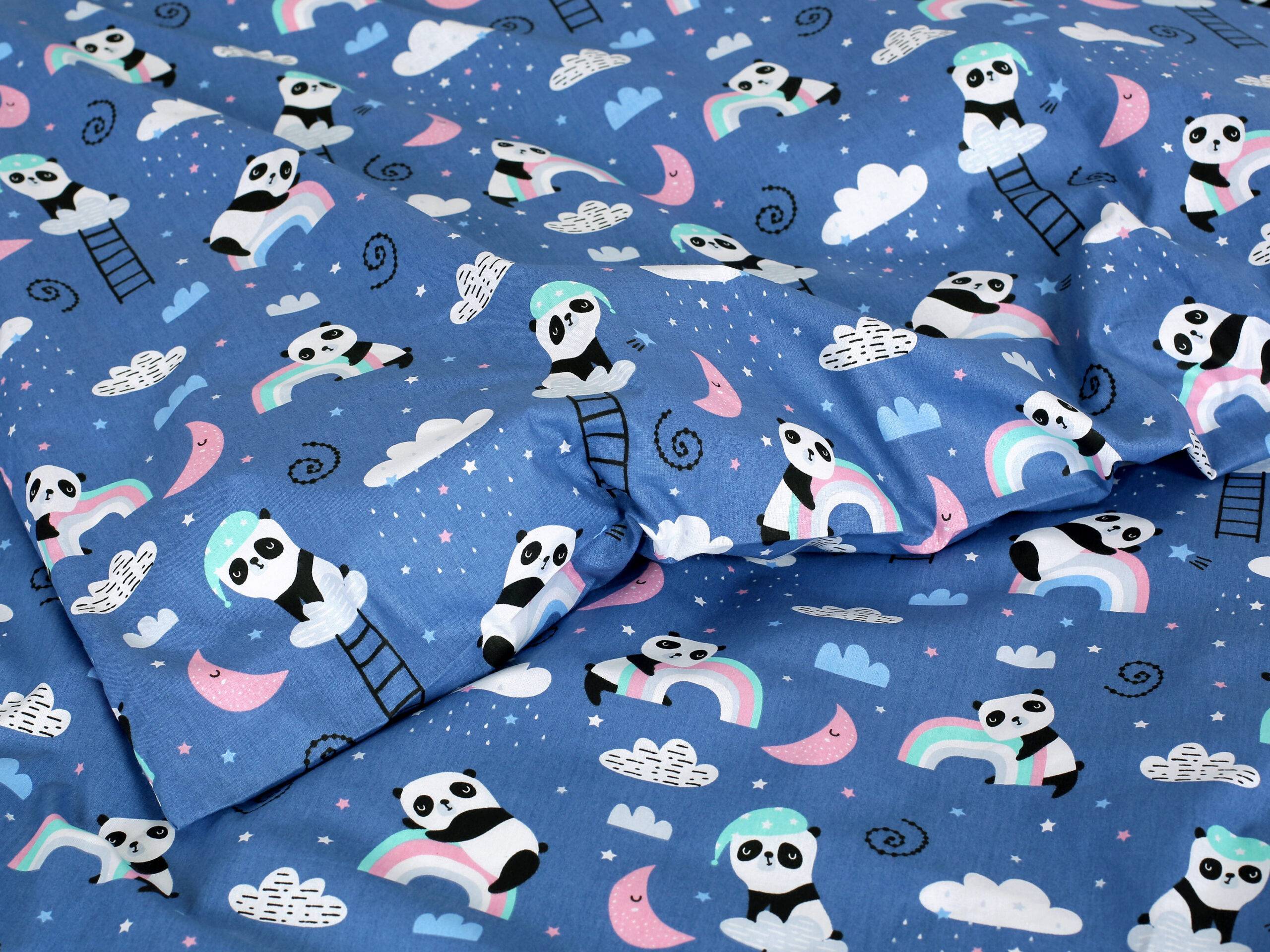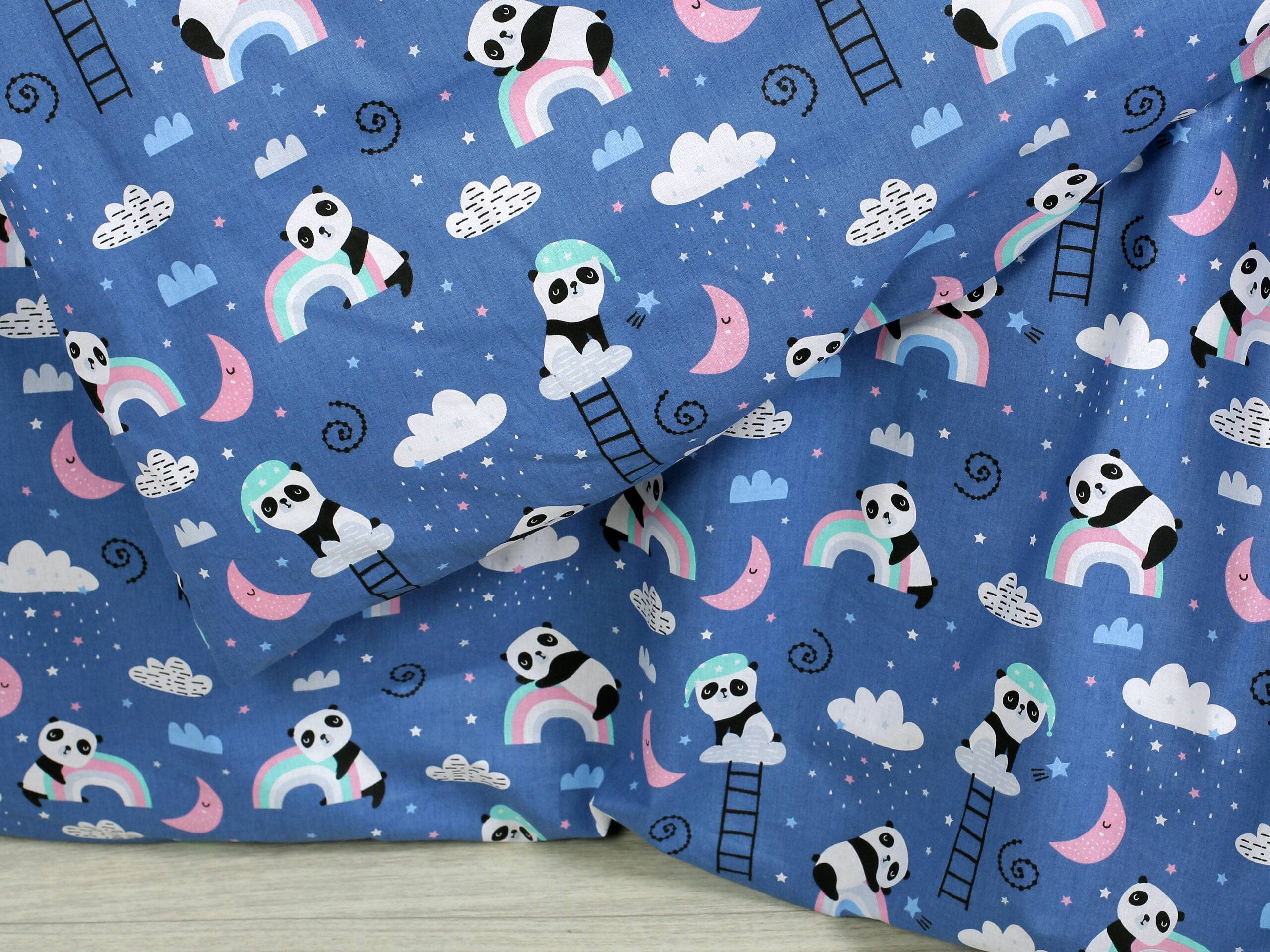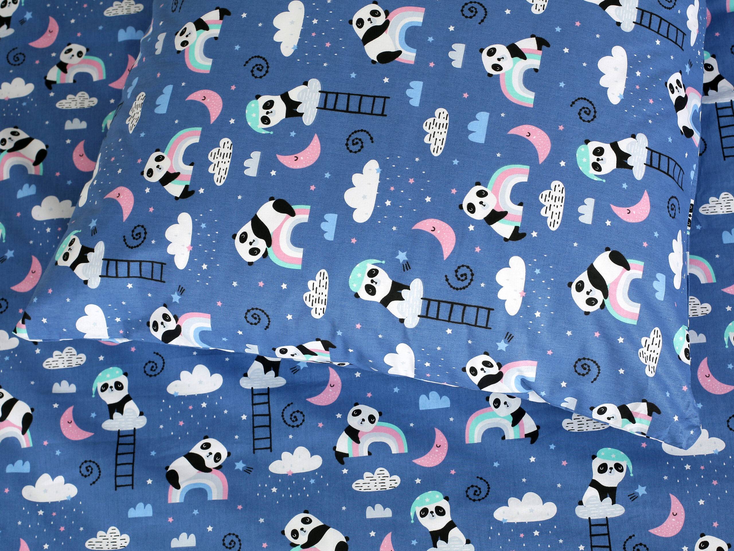 Motiv roztomilých pand na modrém pozadí přidává dětskému povlečení skvělý šarm.