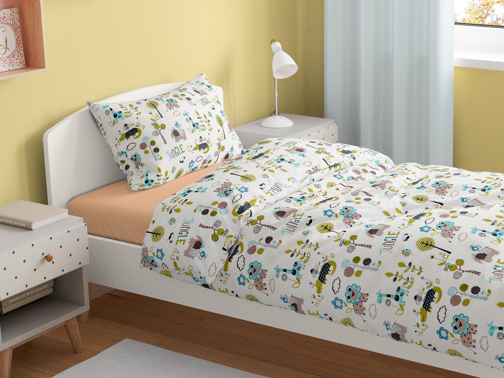 Motiv barevných zvířátek na smetanovém pozadí přidává dětskému povlečení skvělý šarm.