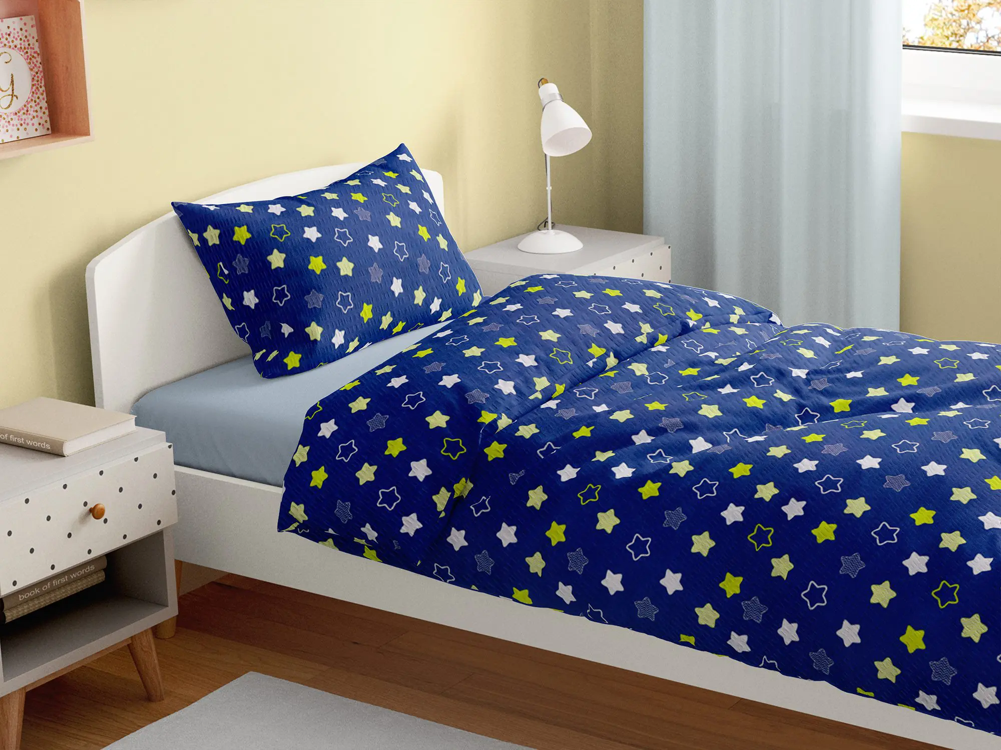 Motiv hvězd na modrém pozadí přidává dětskému povlečení skvělý šarm.
