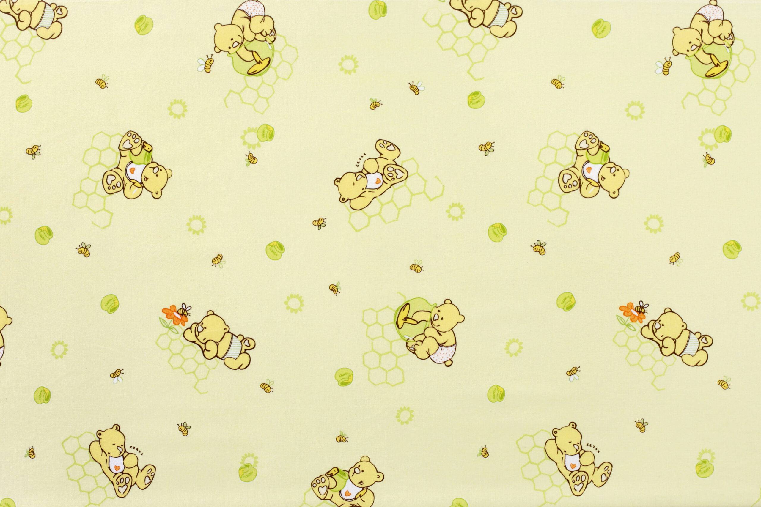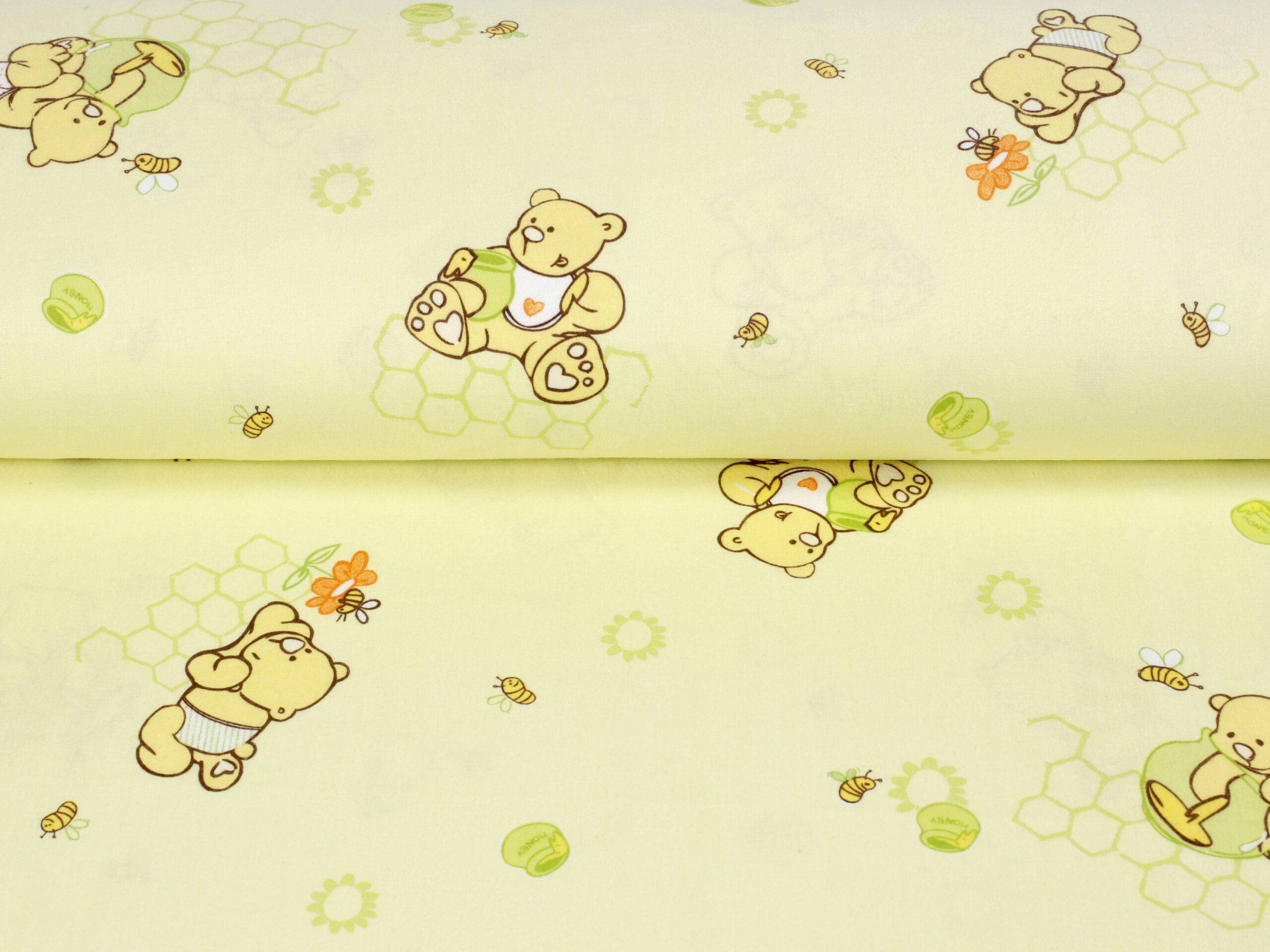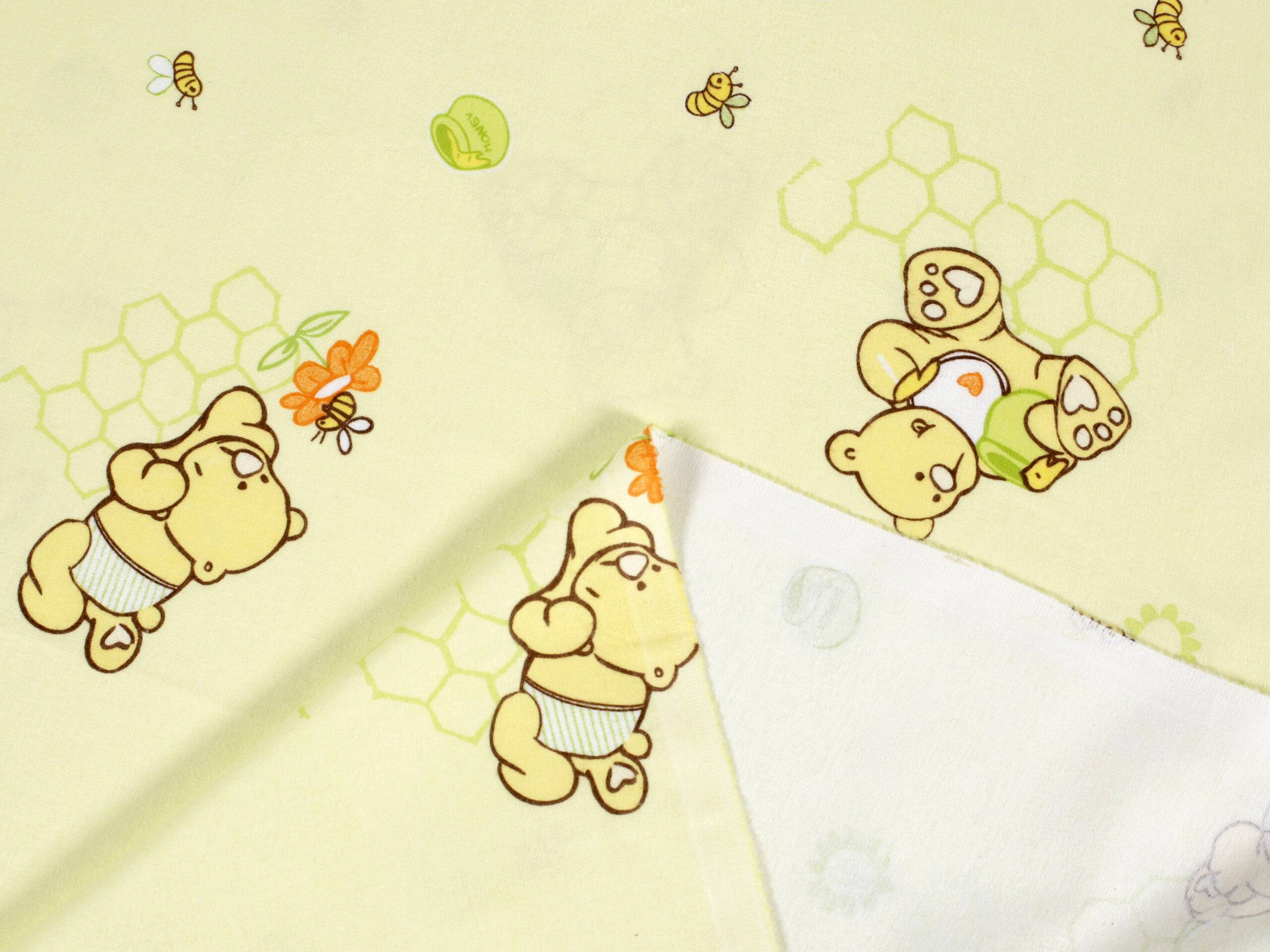 Flanelová látka – medvídci na zeleném – metráž šířka 145 cm