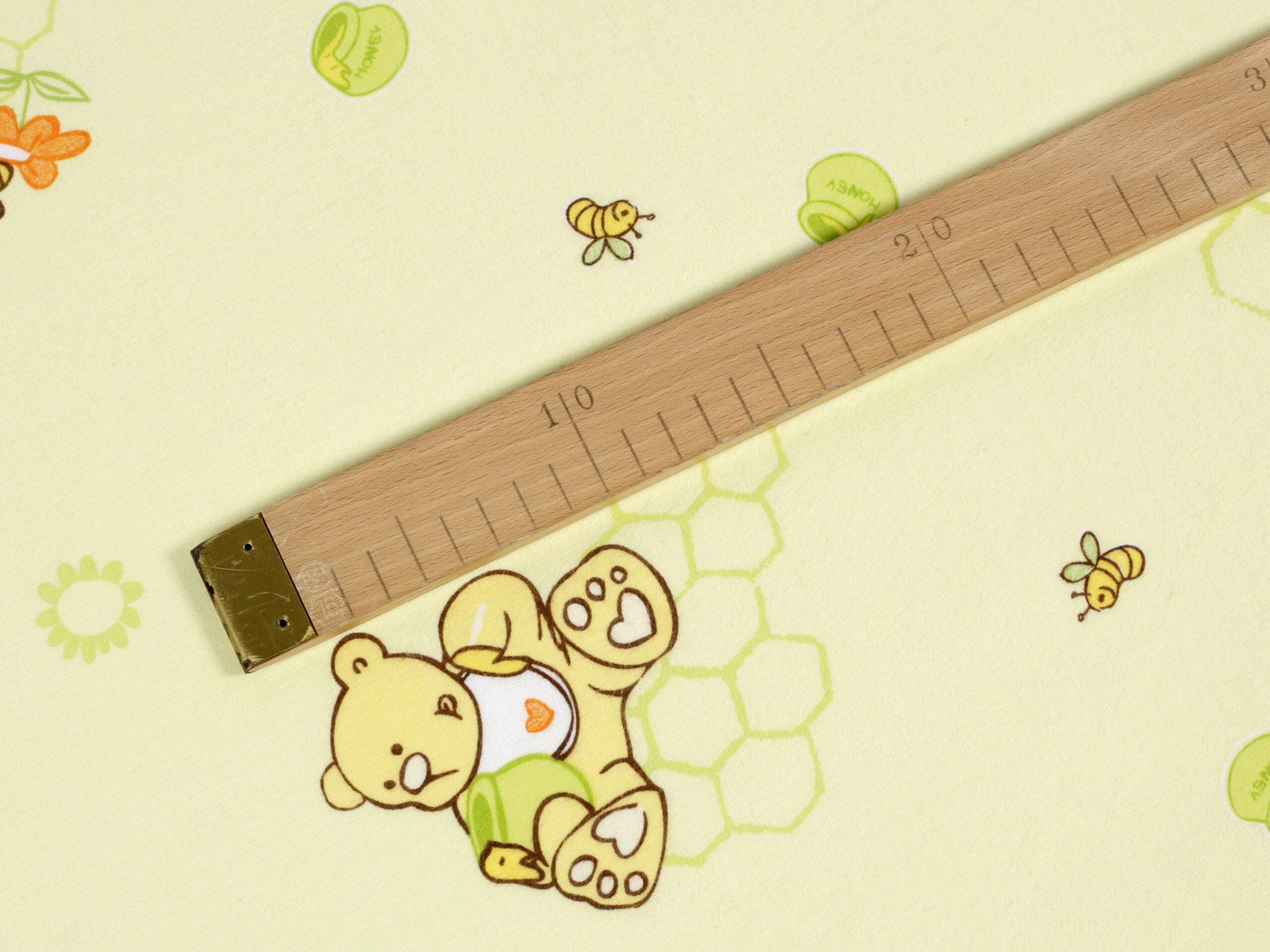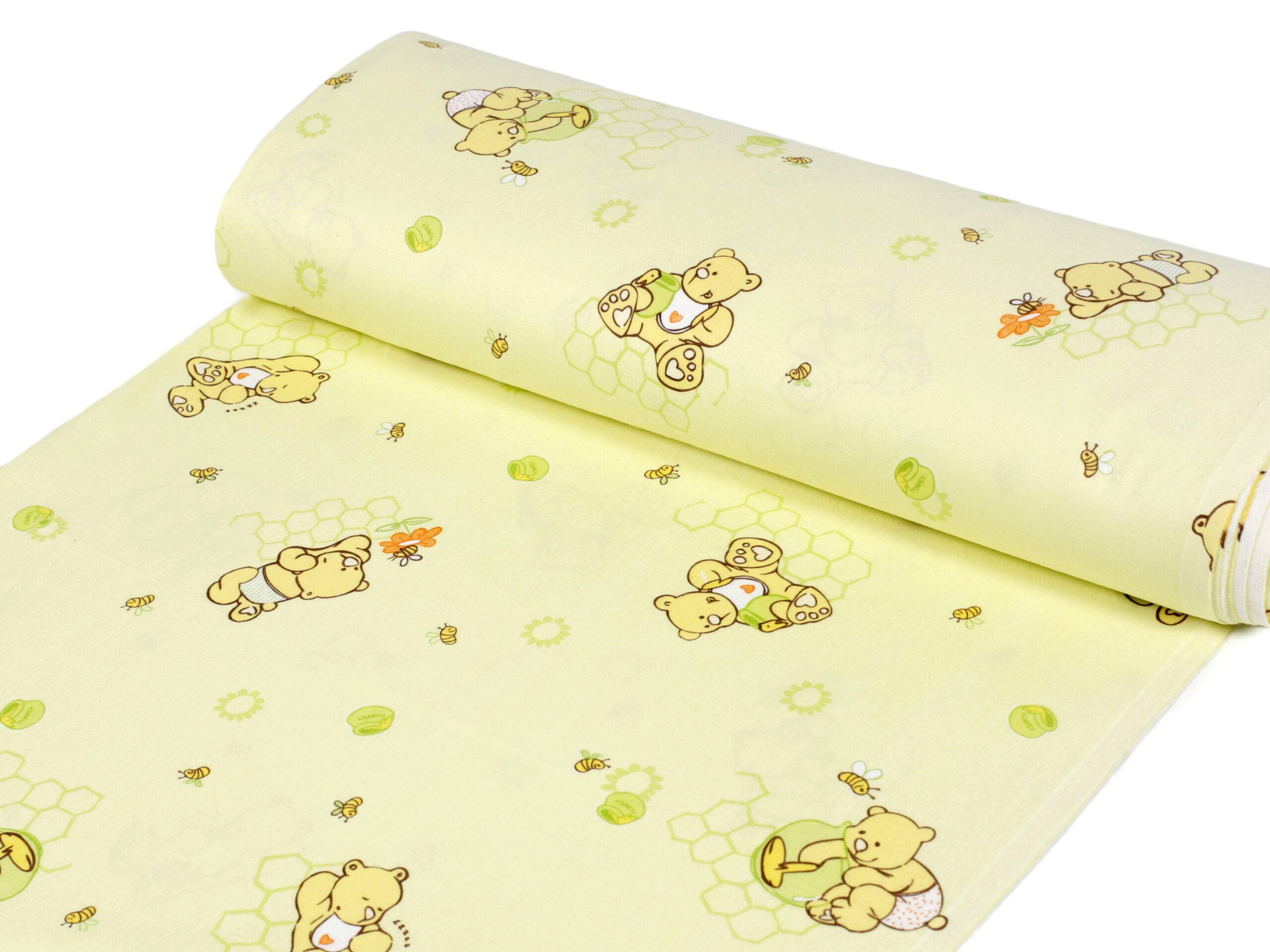 Flanelová látka medvídci na zeleném značky Škodák je vyrobená z kvalitní hustě tkané, dvakrát česané 100% bavlny o gramáži 195 g/m².