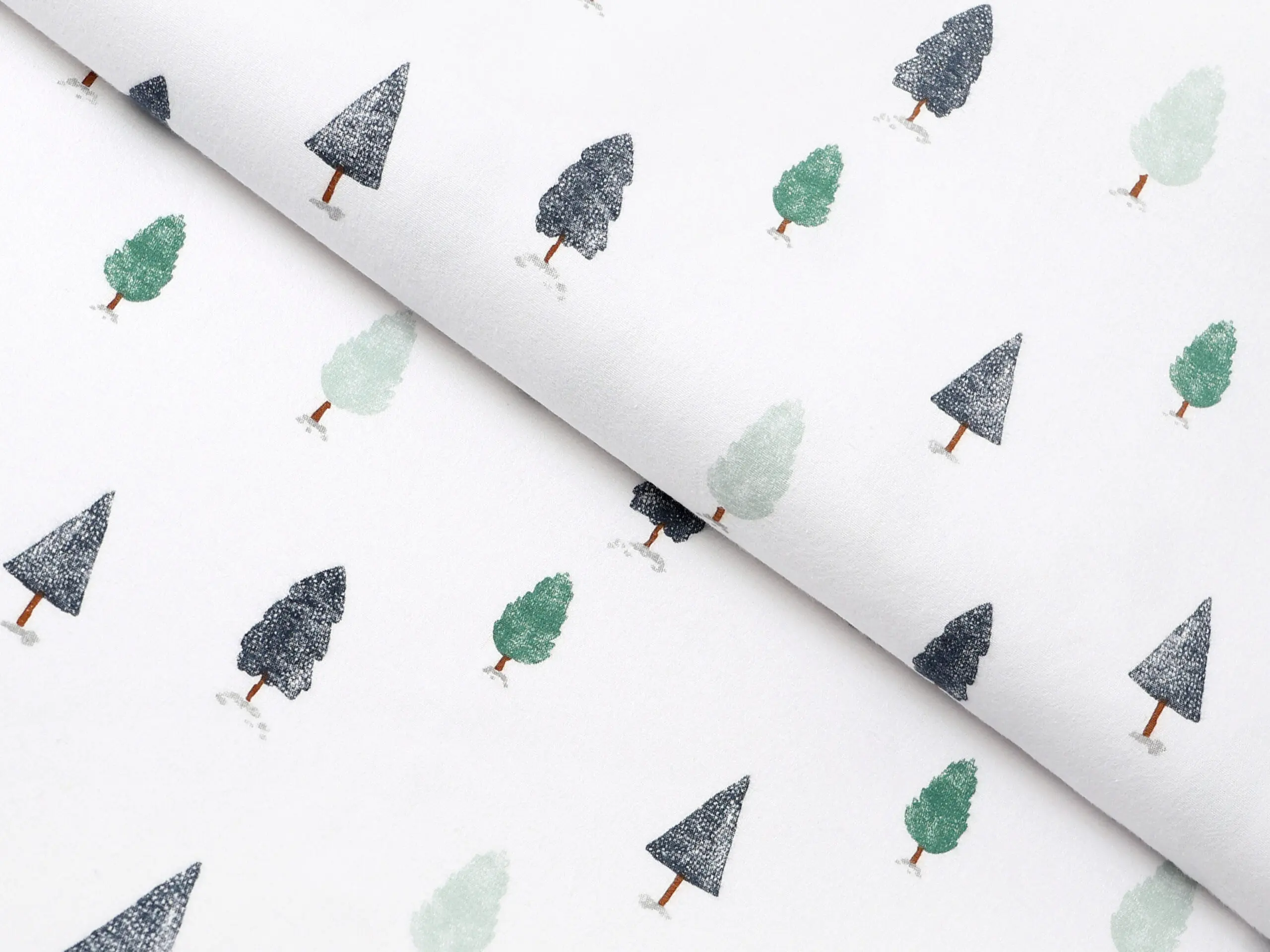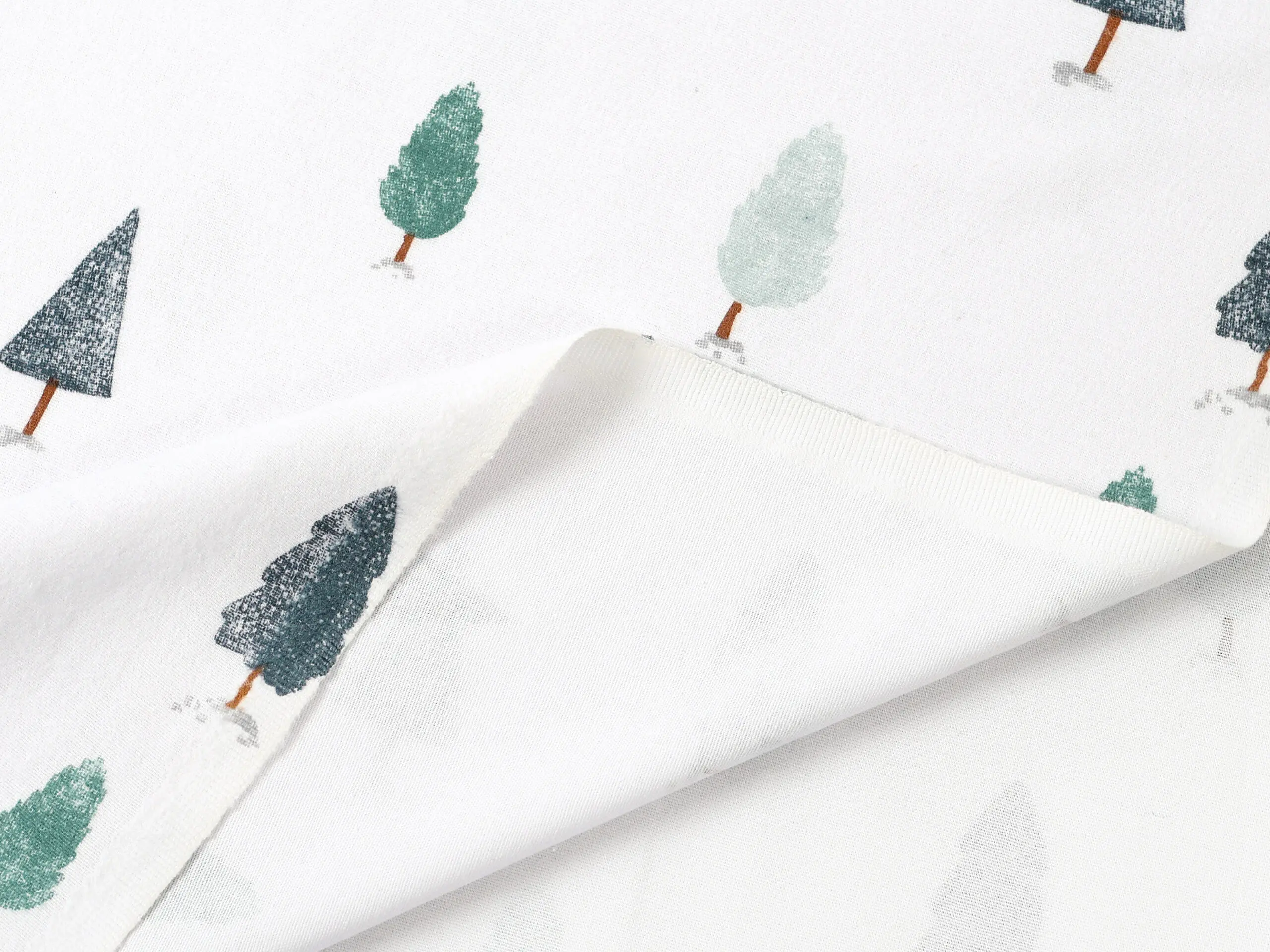 Flanelová látka zimní les značky Škodák je vyrobená z kvalitní hustě tkané, dvakrát česané 100% bavlny o gramáži 195 g/m².