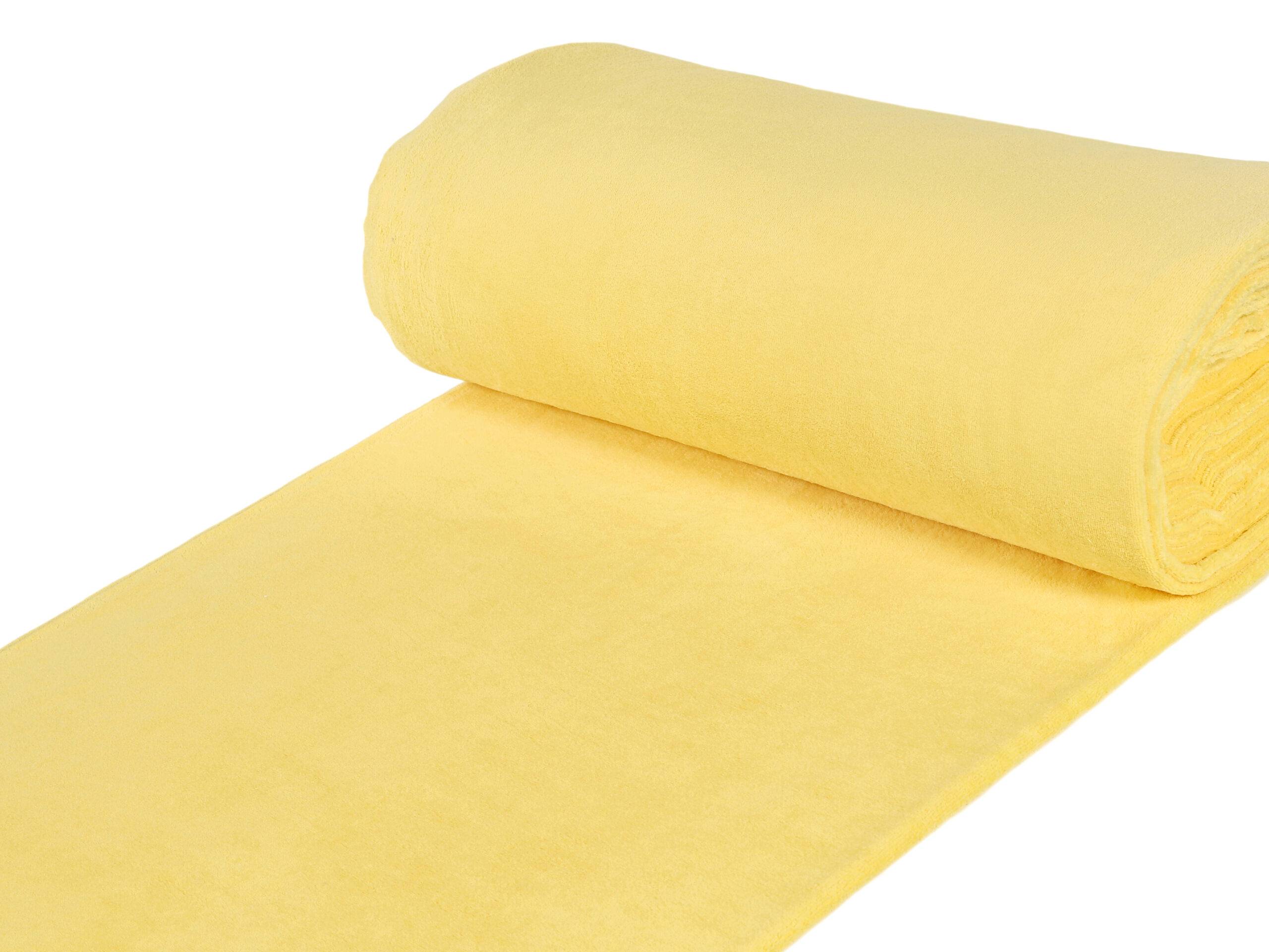 Naše Froté Velur žlutá metráž značky Škodák je látka vyrobená z 50 % bavlny a 50 % polyesteru. Tato látka má vysokou gramáž 420 g/m2 a šířku.