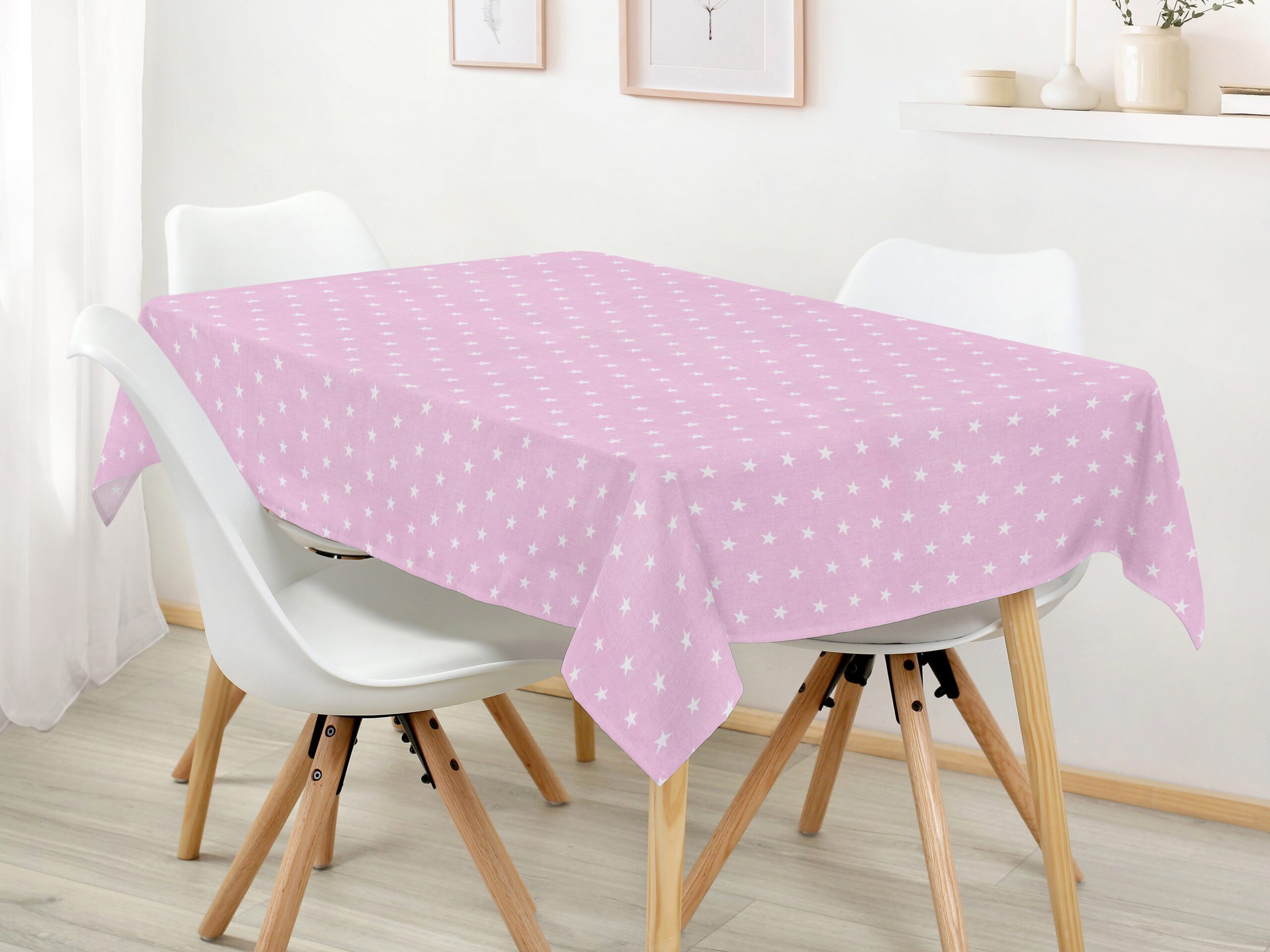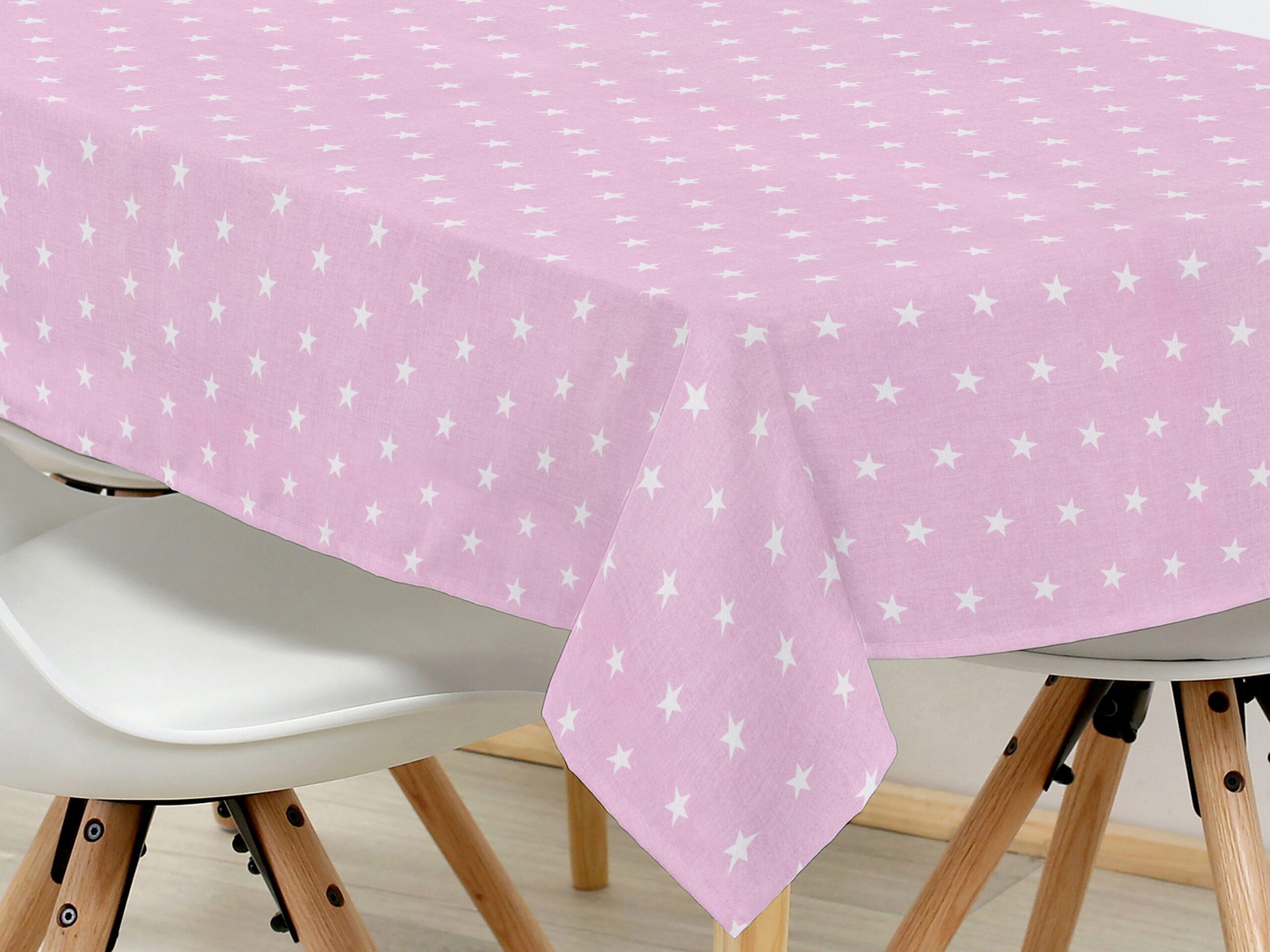 Hranatý bavlněný ubrus – bílé hvězdy na růžové