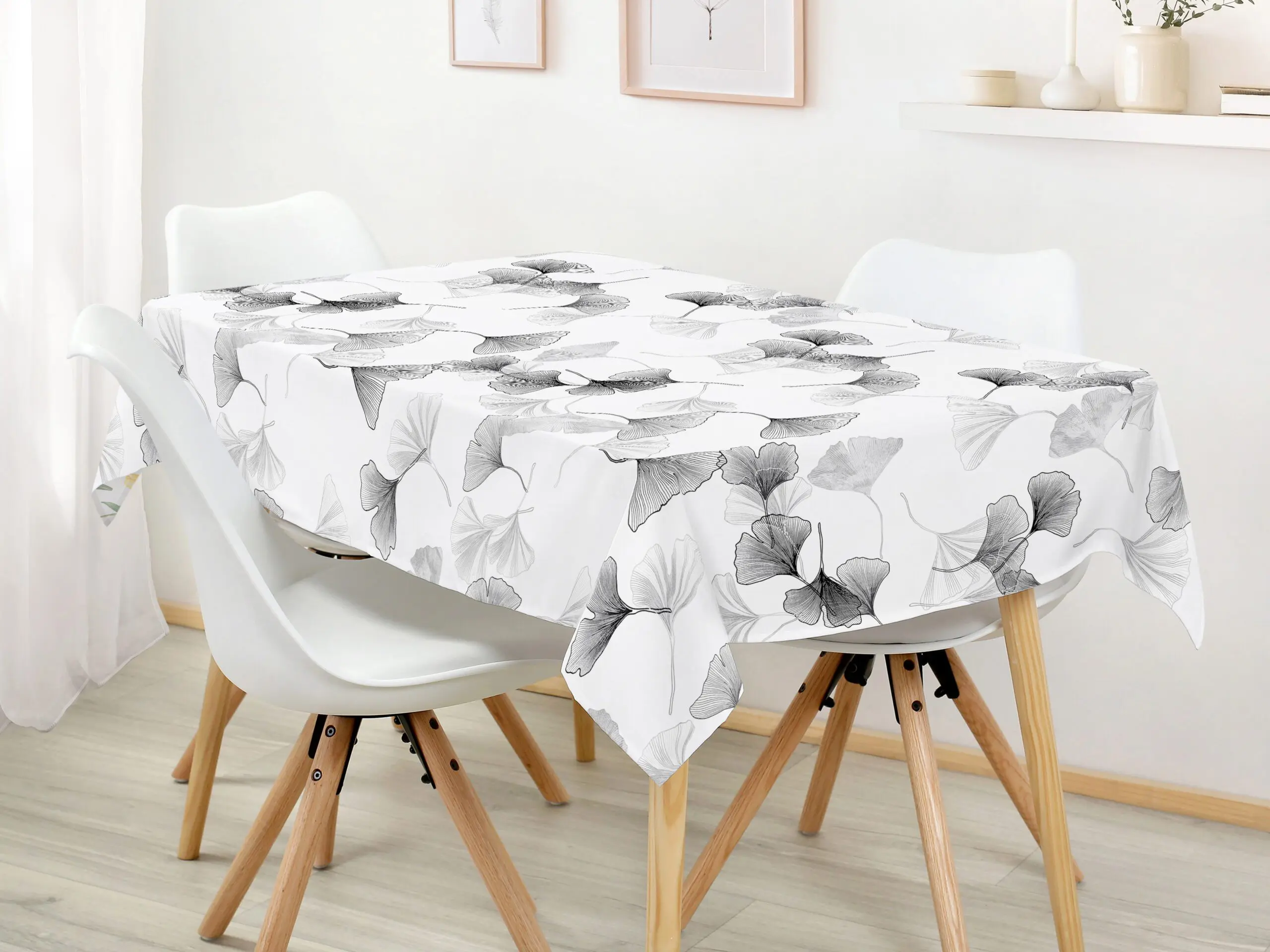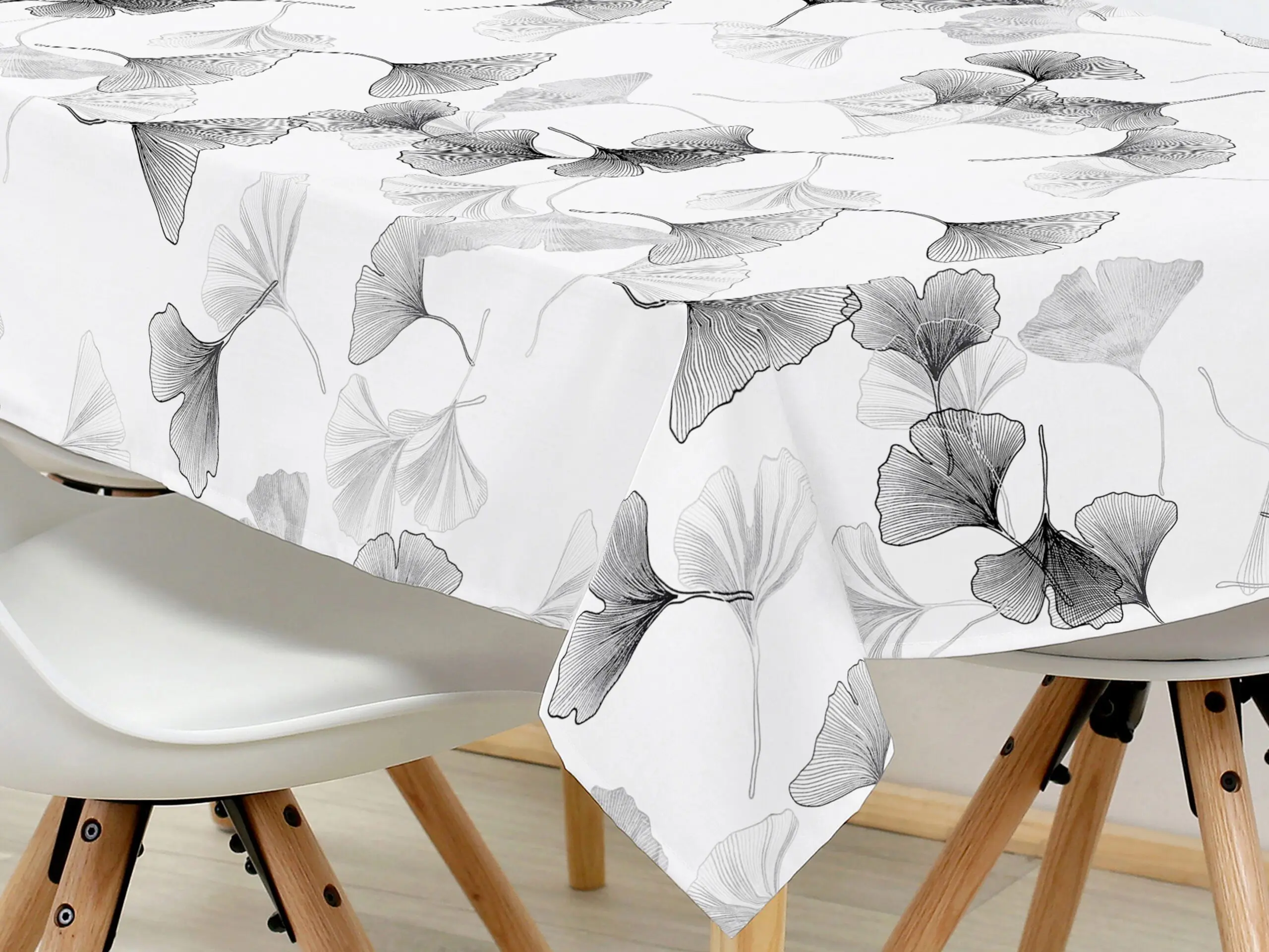 Hranatý bavlněný ubrus se vzorem lístků ginkga na bílé je ideální volbou pro ty, kteří hledají kombinaci elegance a funkčnosti. Dejte svému stolu šmrnc s tímto nádherným ubrusem, který je skvělým doplňkem pro každou příležitost. Skvělá investice pro váš jídelní stůl. Ubrus se skvěle hodí pro každodenní použití.