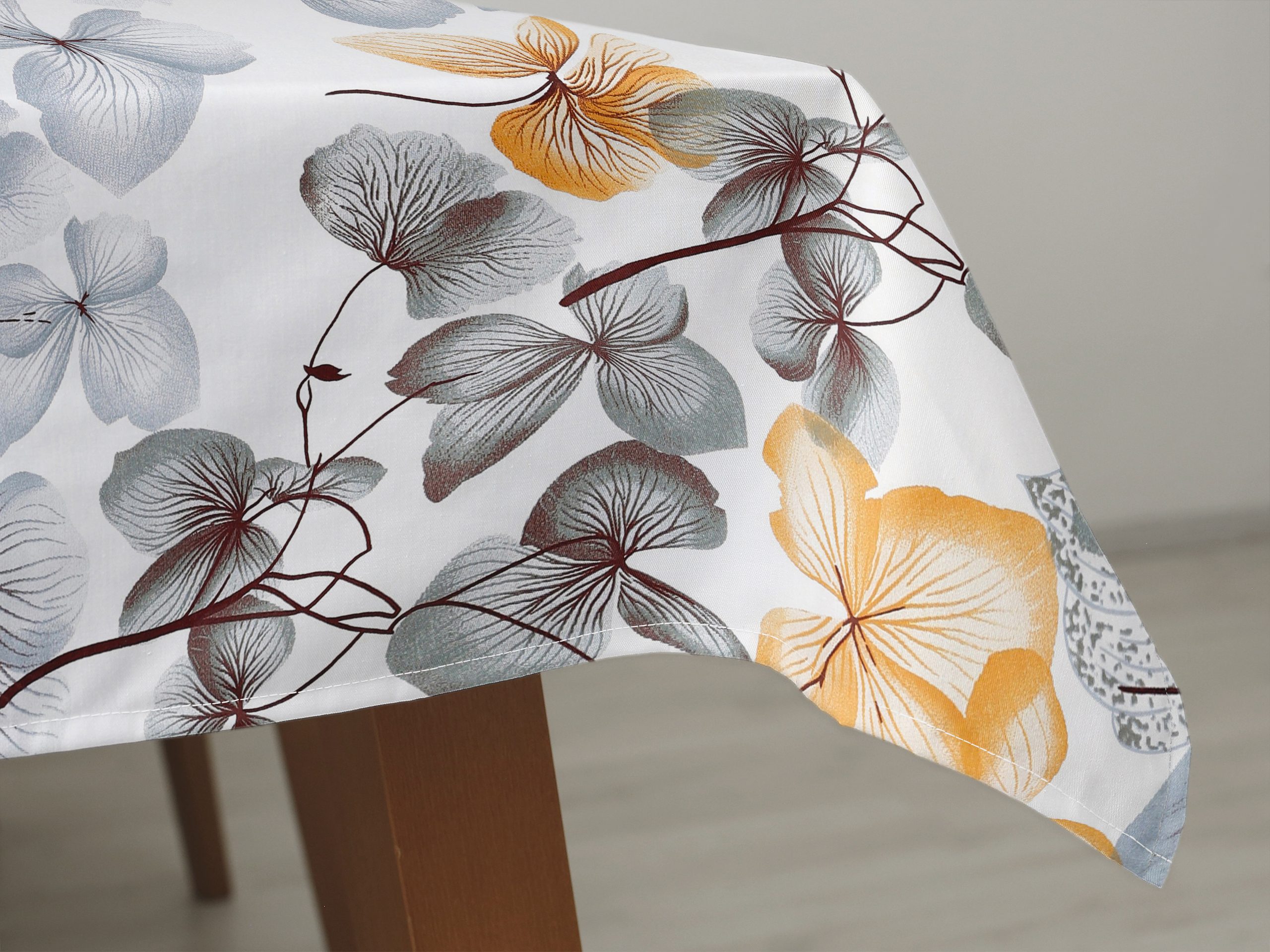 Hranatý bavlněný ubrus šedo-hnědý květ na bílé je ideální volbou pro ty, kteří hledají kombinaci elegance a funkčnosti. Dejte svému stolu šmrnc s tímto nádherným květinovým ubrusem, který je skvělým doplňkem pro každou příležitost. Skvělá investice pro váš jídelní stůl. Ubrus se skvěle hodí pro každodenní použití.